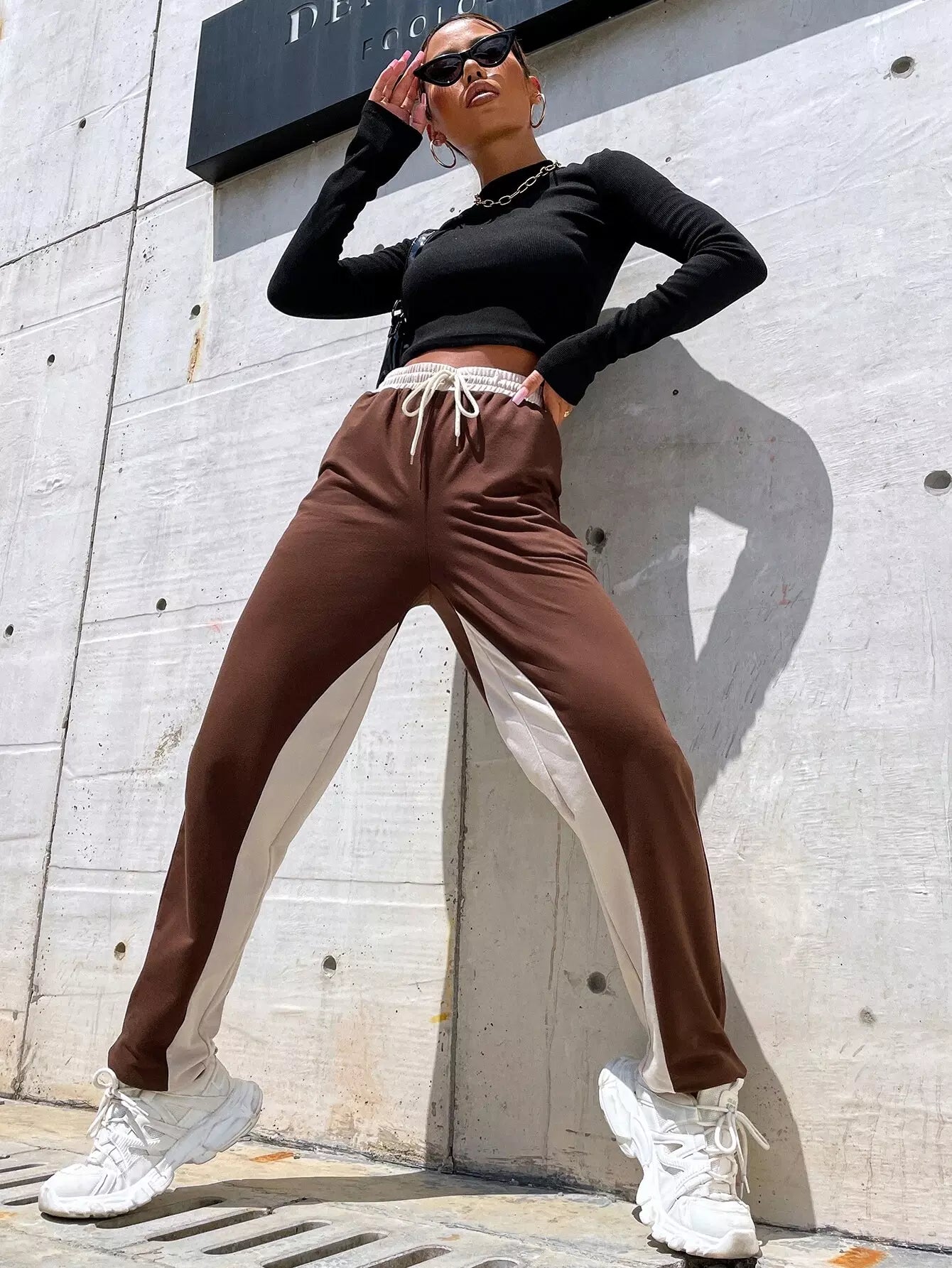 بنطال رياضي برباط خصر برباطين بلونين