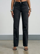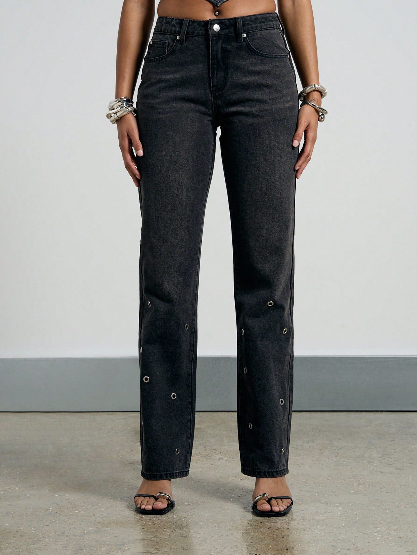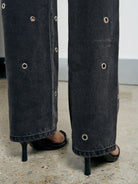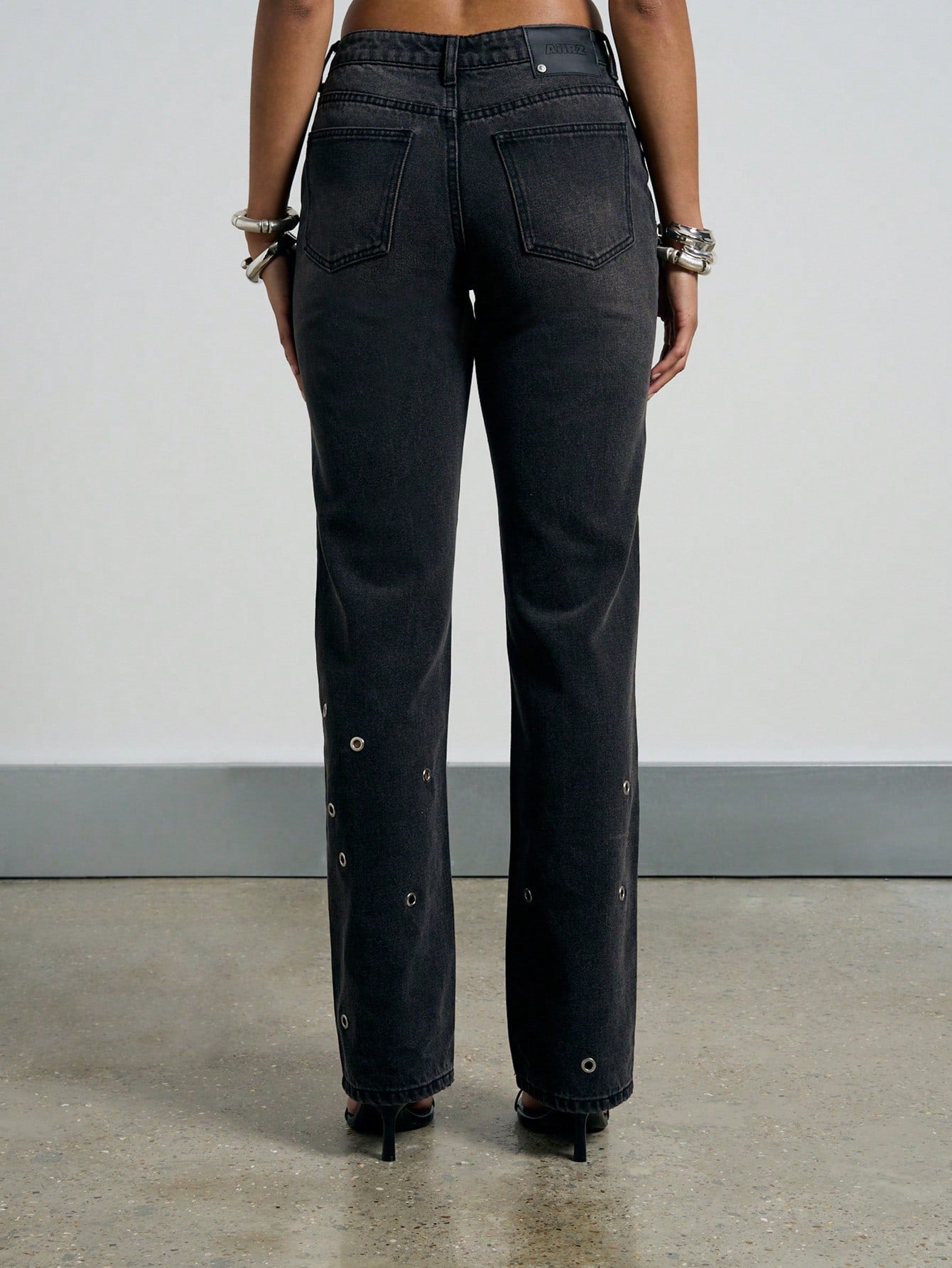 AiiRZ Mid-Rise Eyelet Detail Straight Leg Jeans