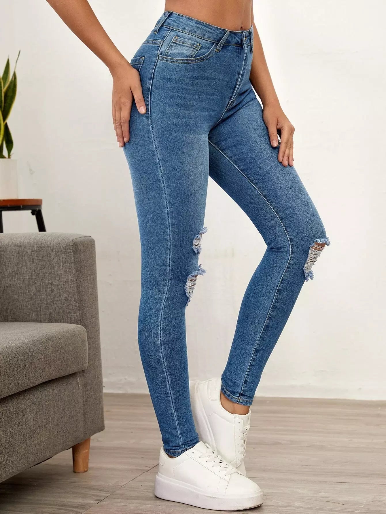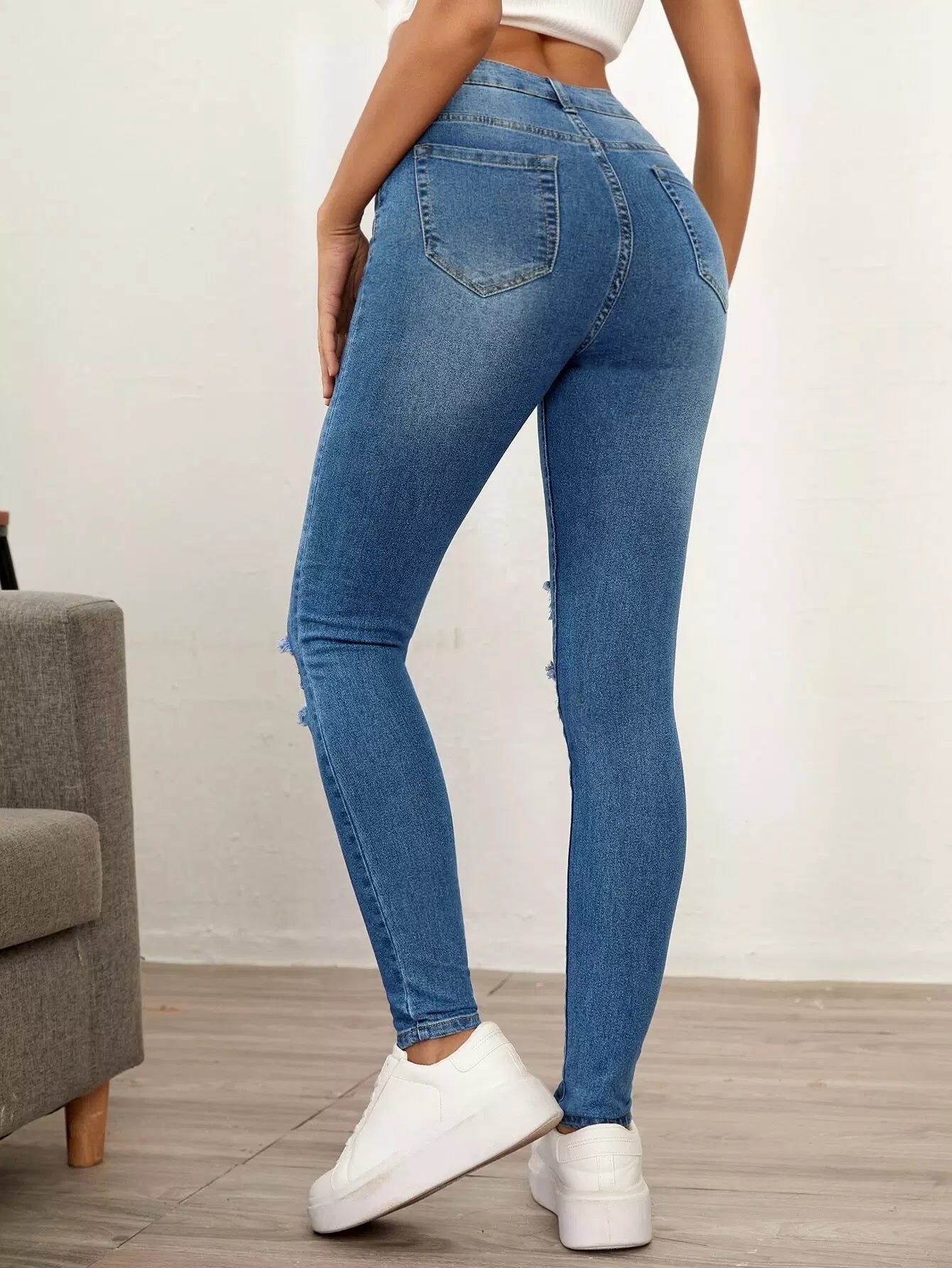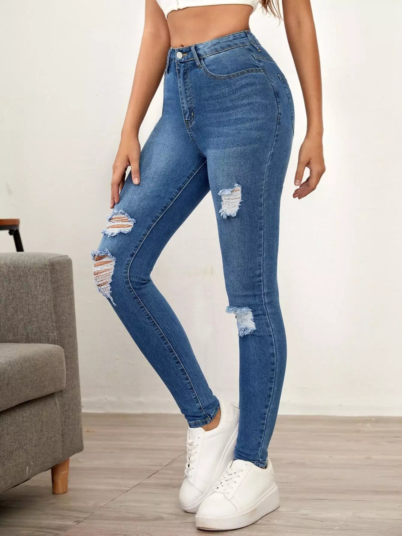 بنطال جينز جينز سكيني ممزق ومغسول باللون الأبيض
