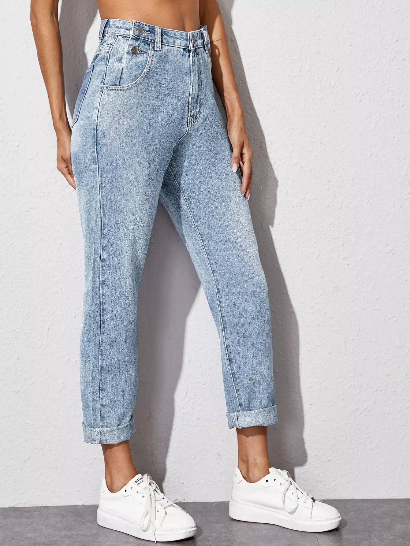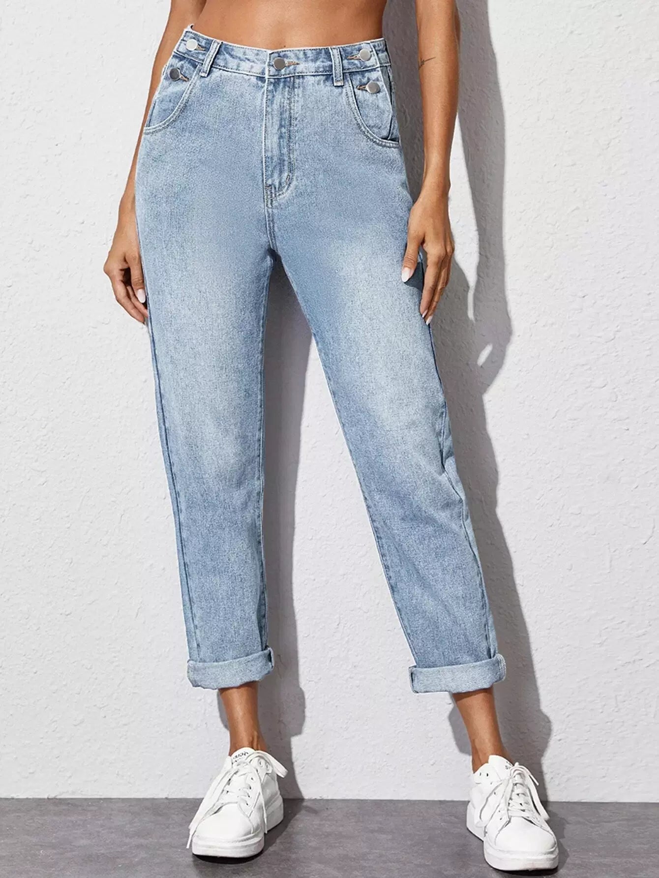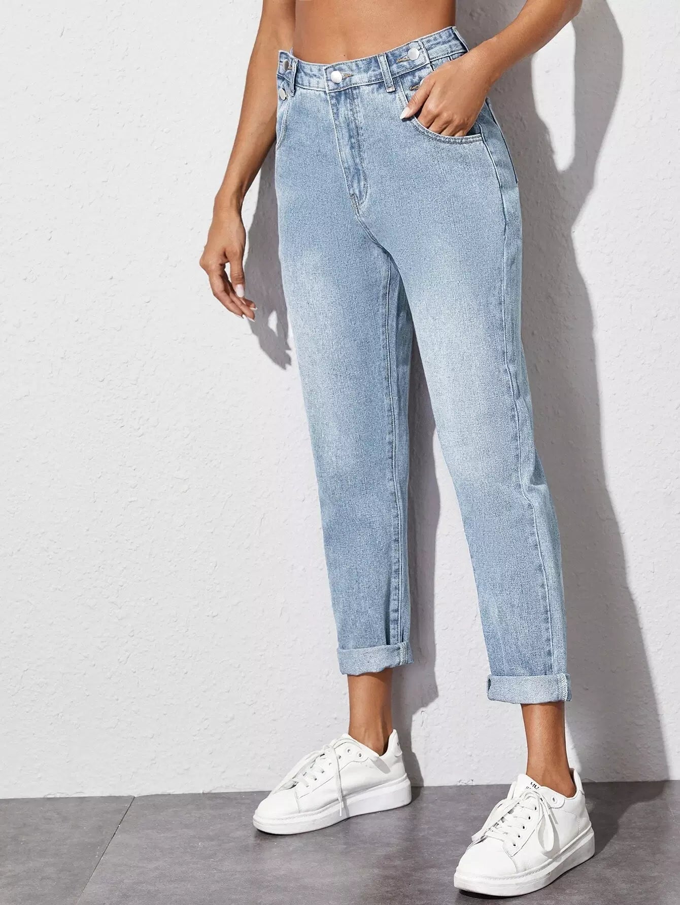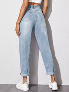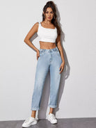 بنطلون جينز بأرجل مستقيمة مغسول باللون الأبيض