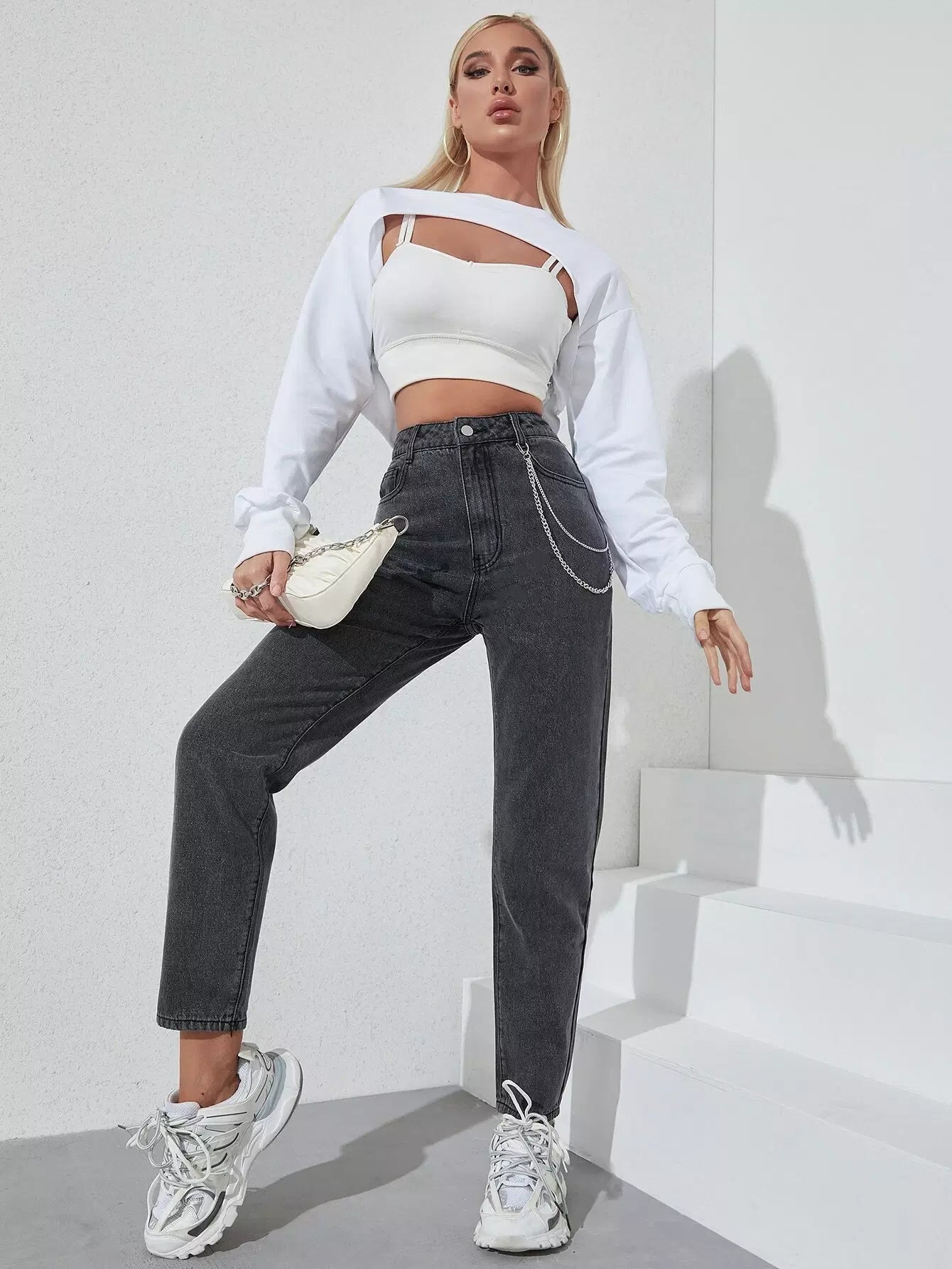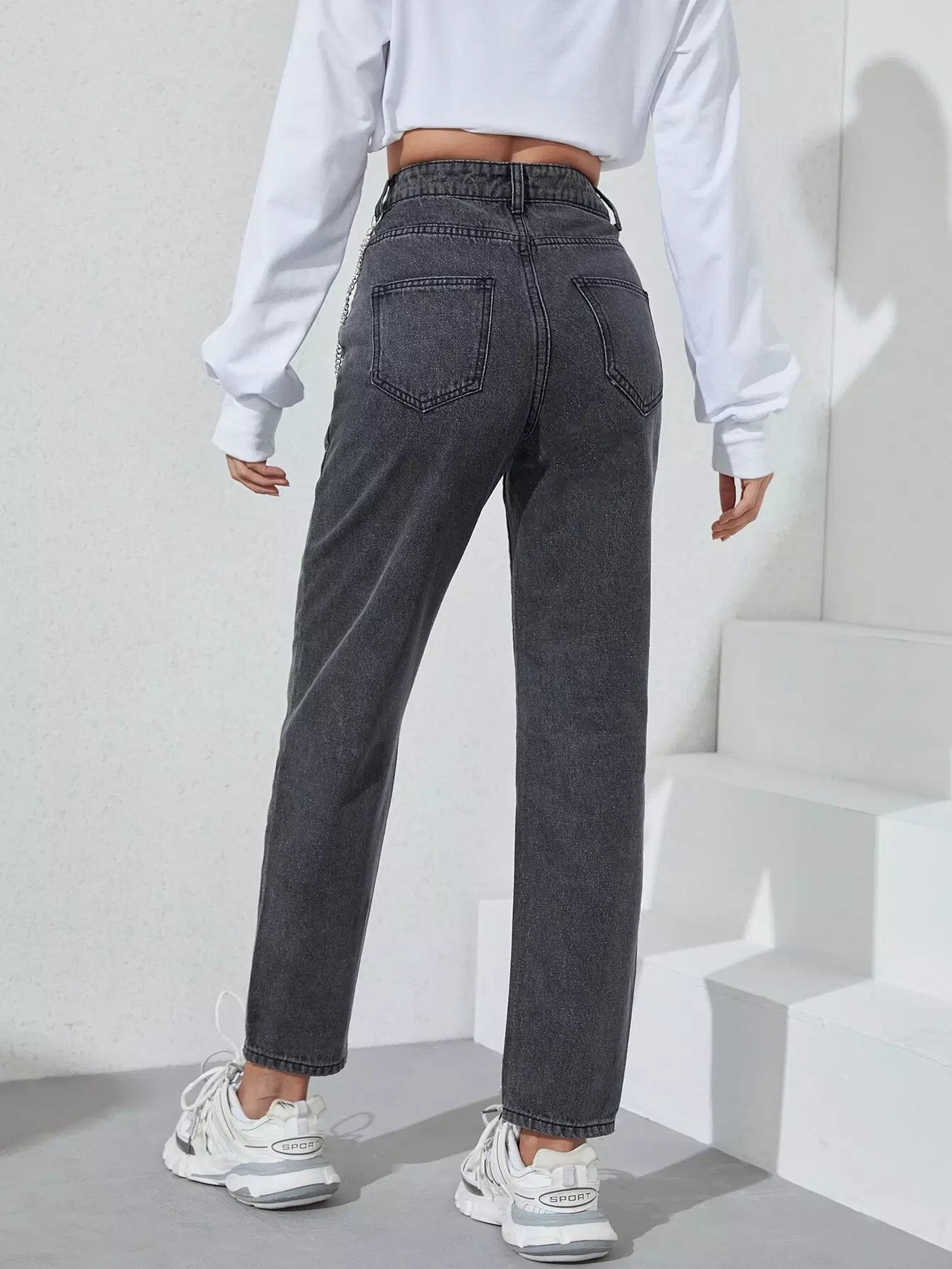 بنطلون جينز جينز جينز بتفاصيل السلسلة للأمهات