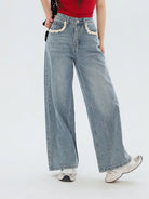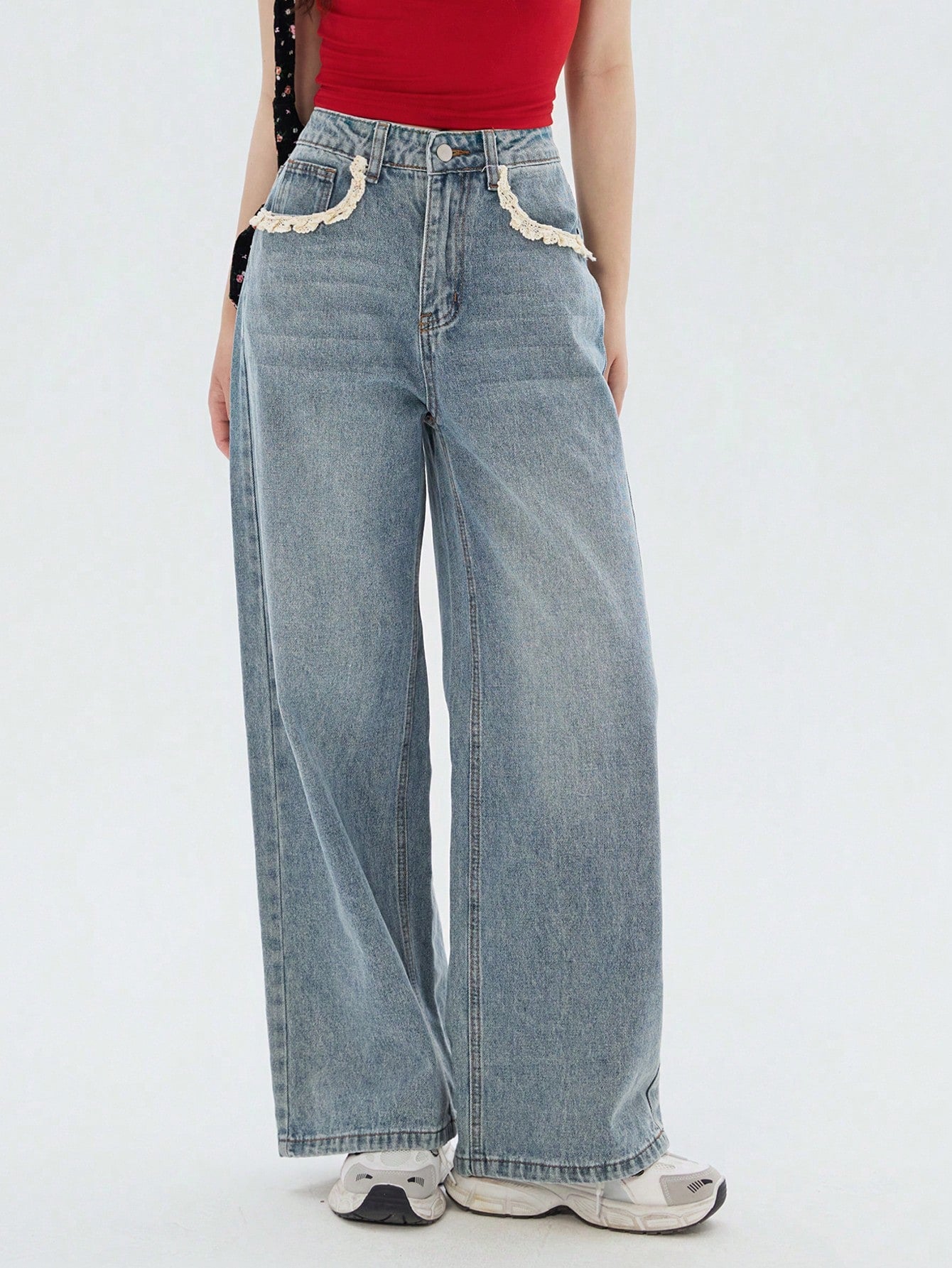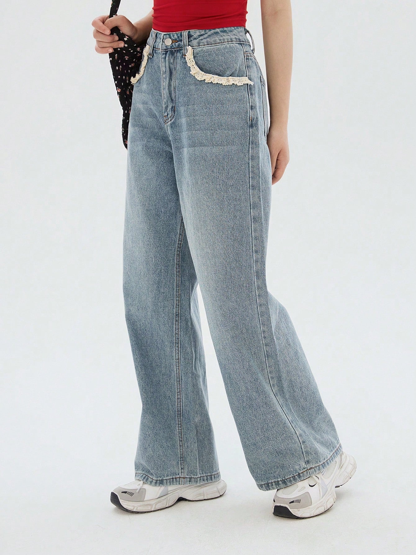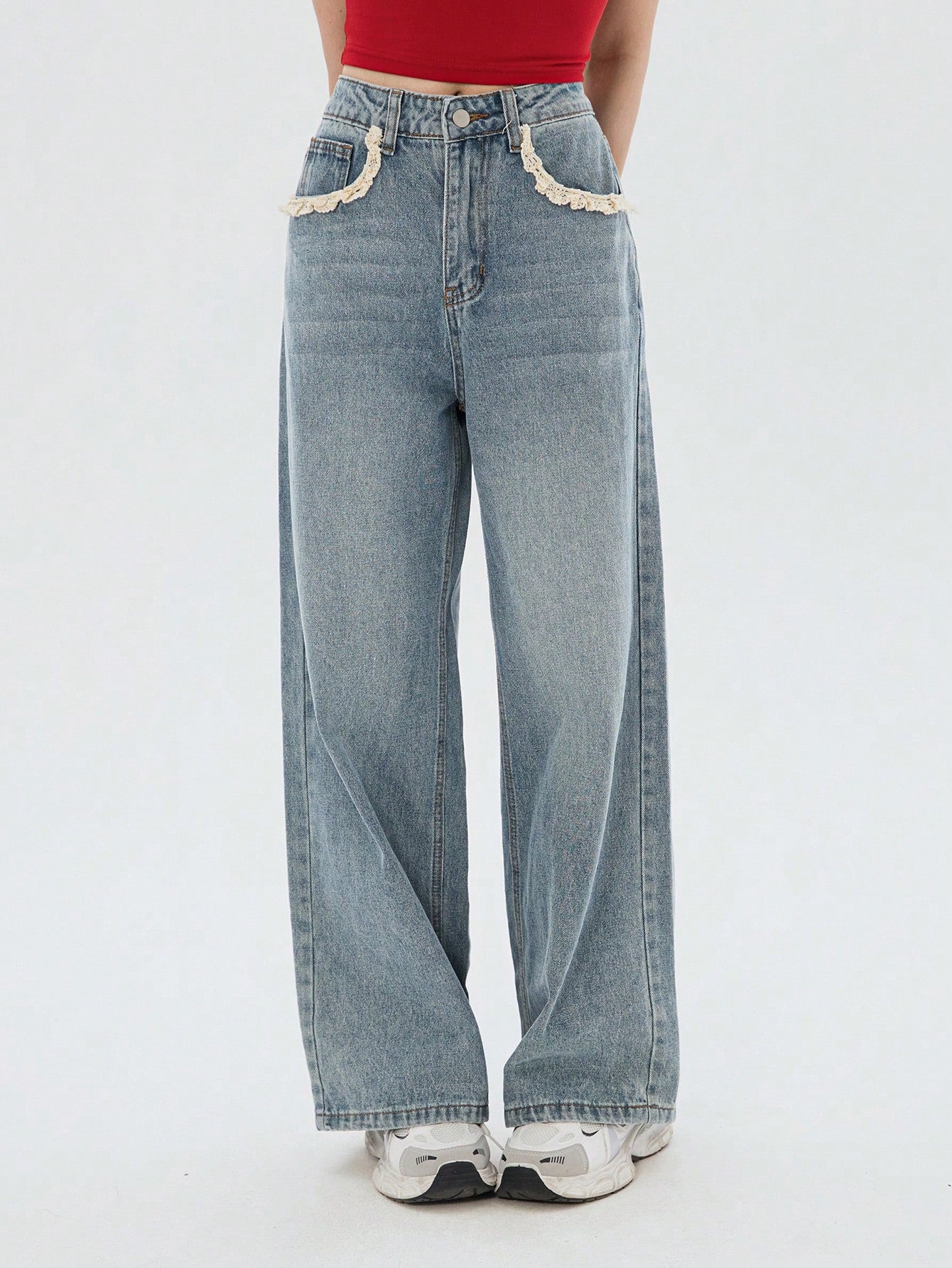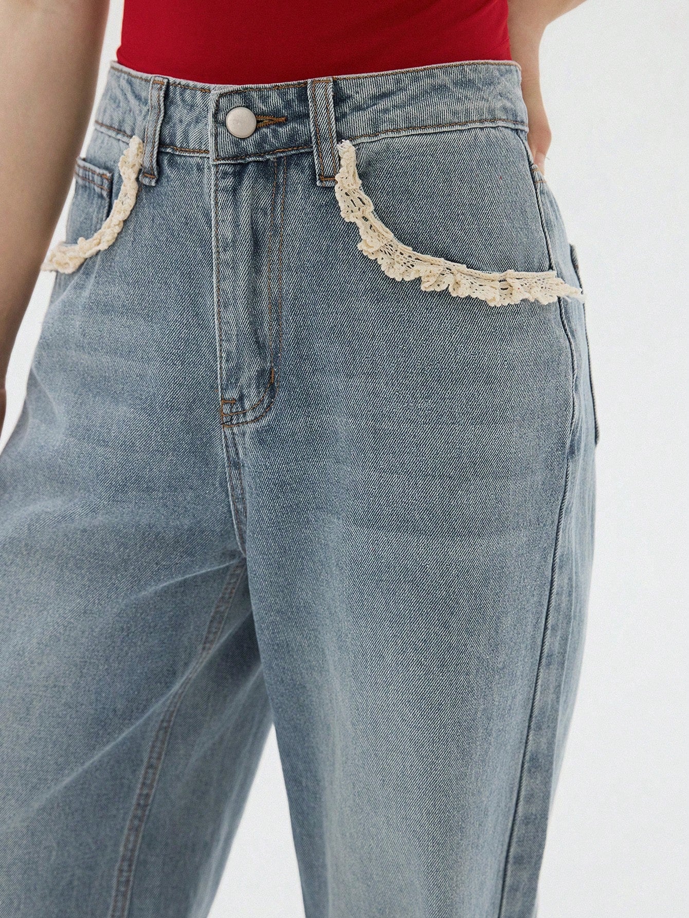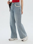 DAZY Women's Pocket Lace Patchwork Casual Straight Leg Jeans