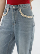 بنطلون جينز نسائي من DAZY بتصميم جيوب من الدانتيل وبقصّة ساق مستقيمة