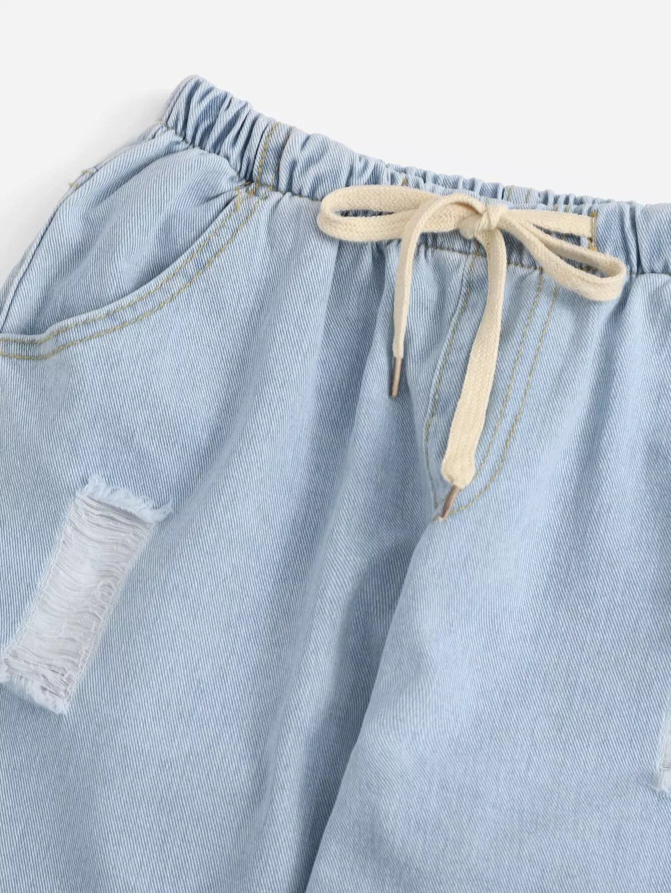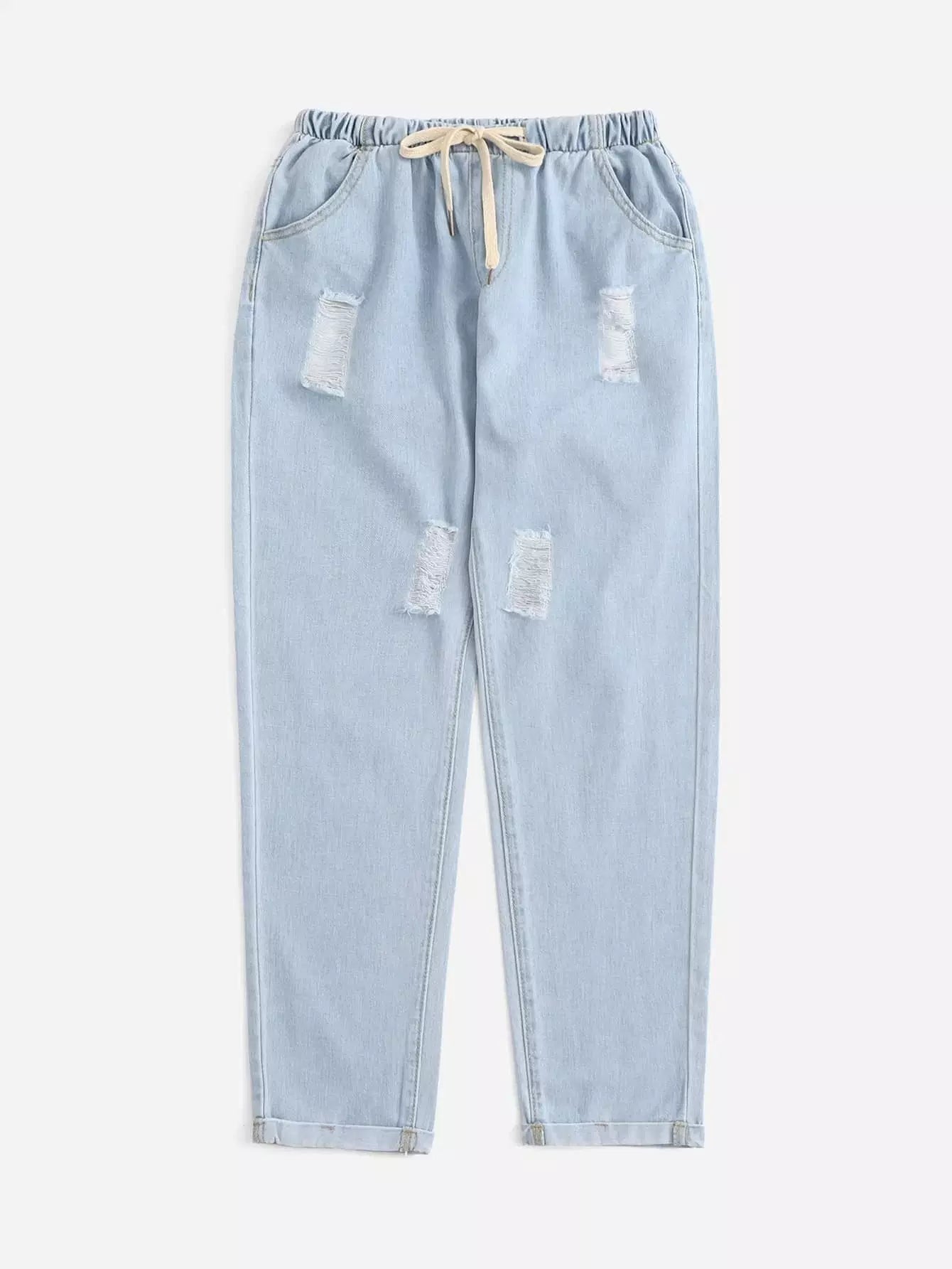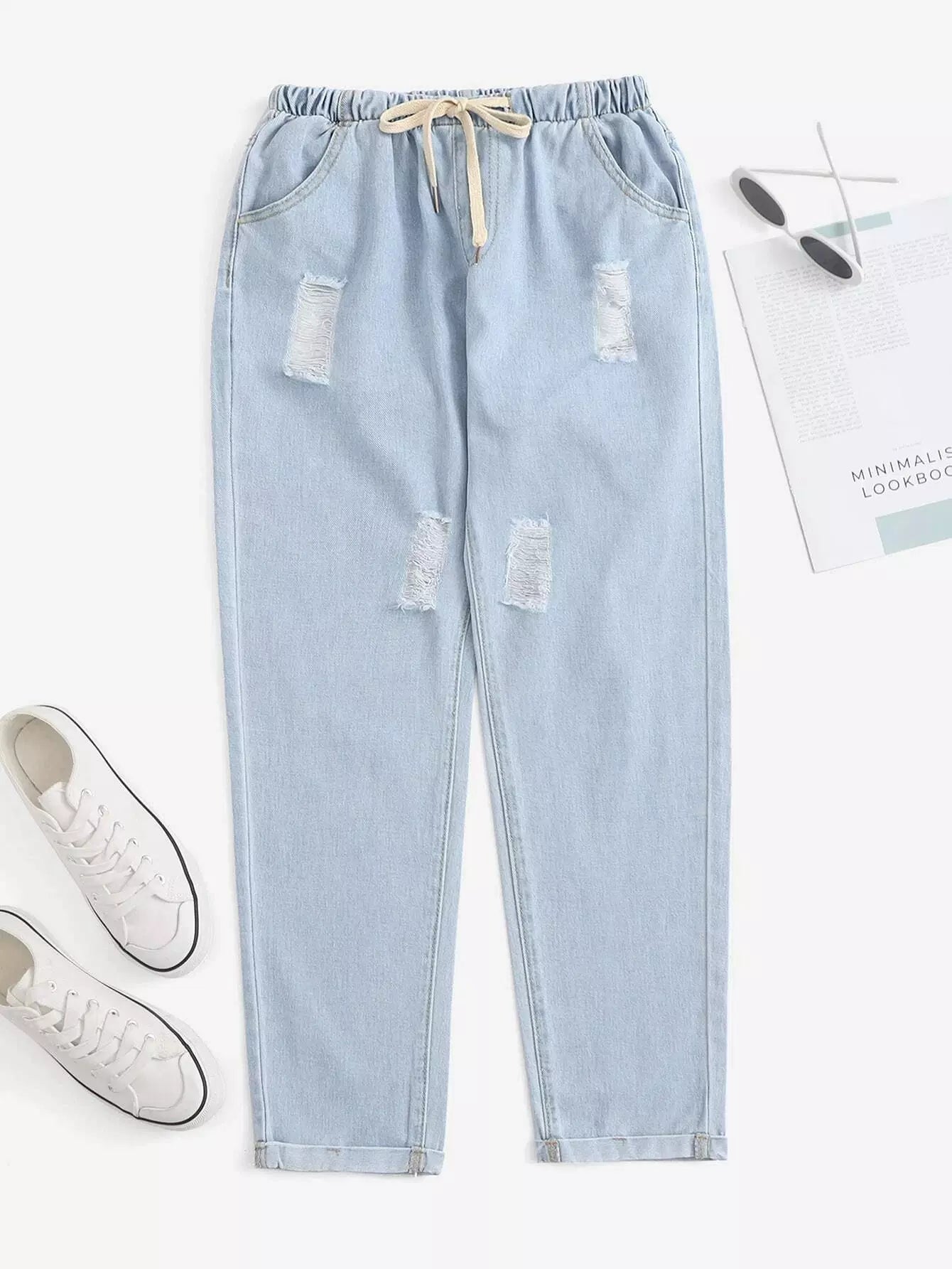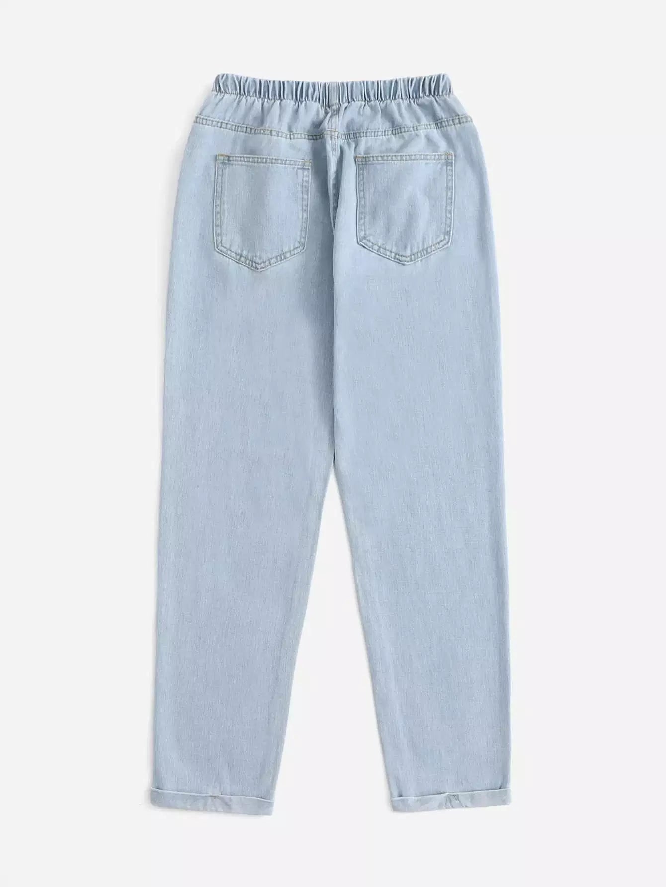 بنطلون جينز برباط خصر برباط مزعج للأمهات