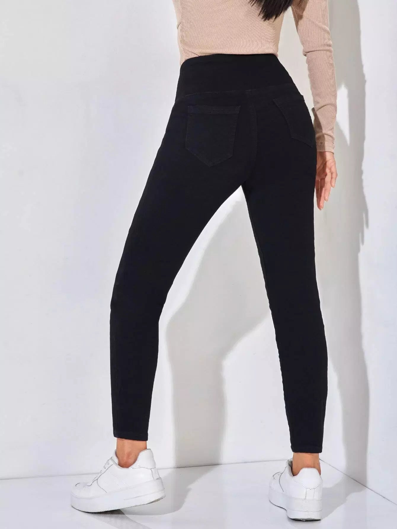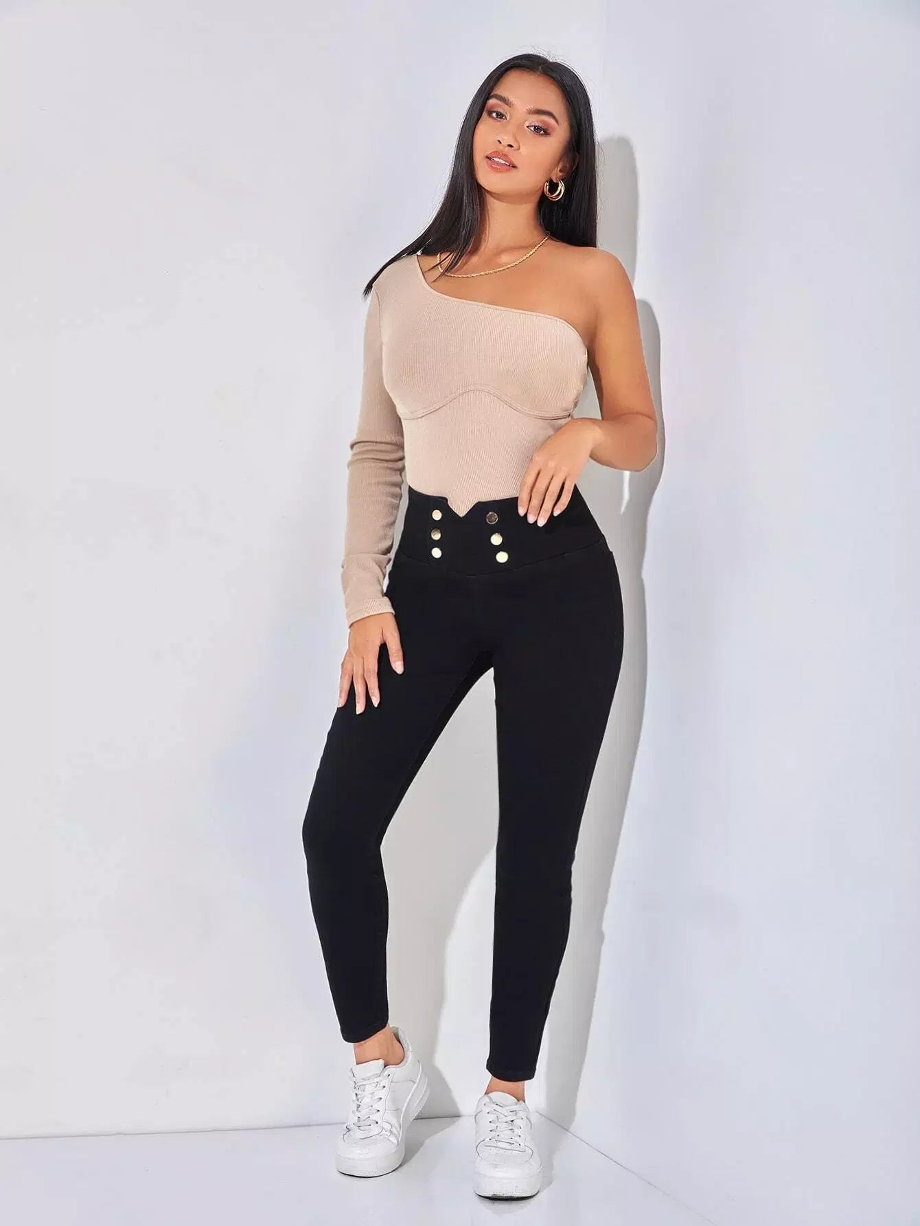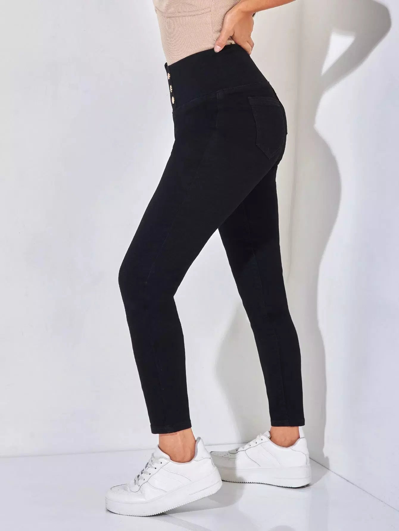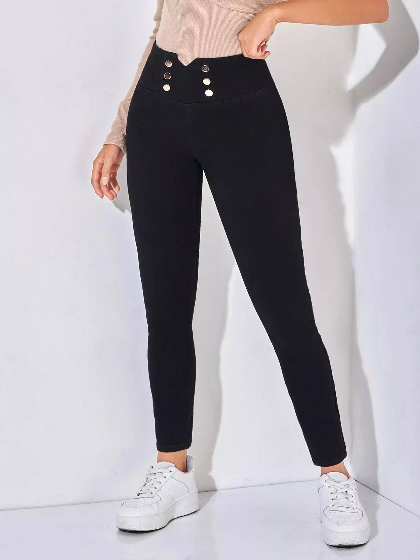 بنطال جينز ضيق بأزرار مزدوجة على الخصر