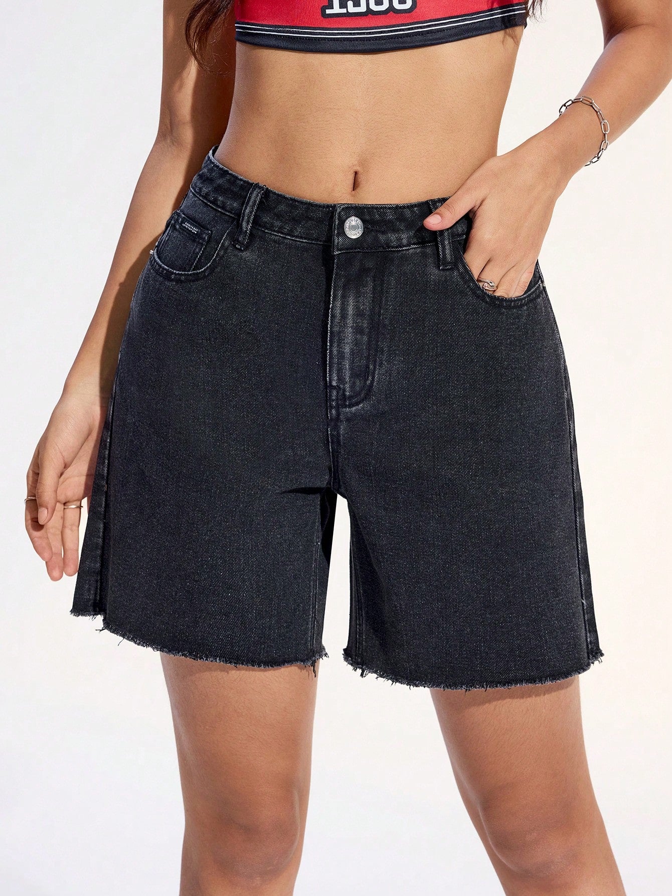 شورت جينز نسائي فضفاض بساق مستقيمة من EZwear مع جيوب، بتصميم كاجوال