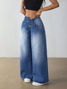 EZwear Women's Asymmetrical Waist Design Denim Pants, Suitable Buisness,Casual,Fashionable Elegant,2025