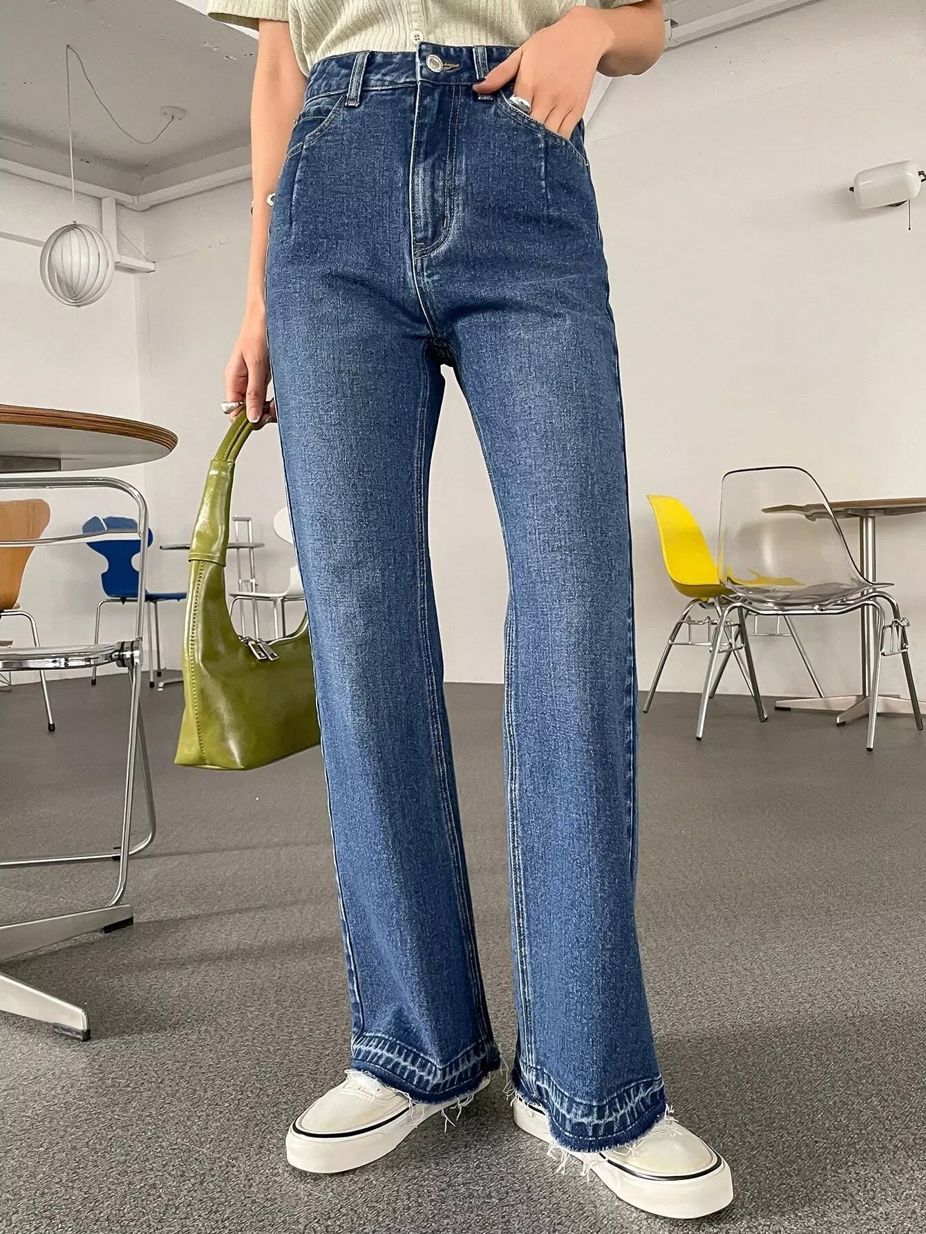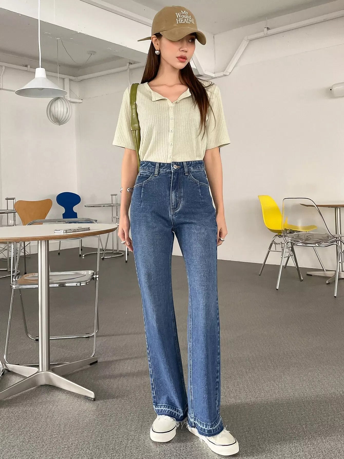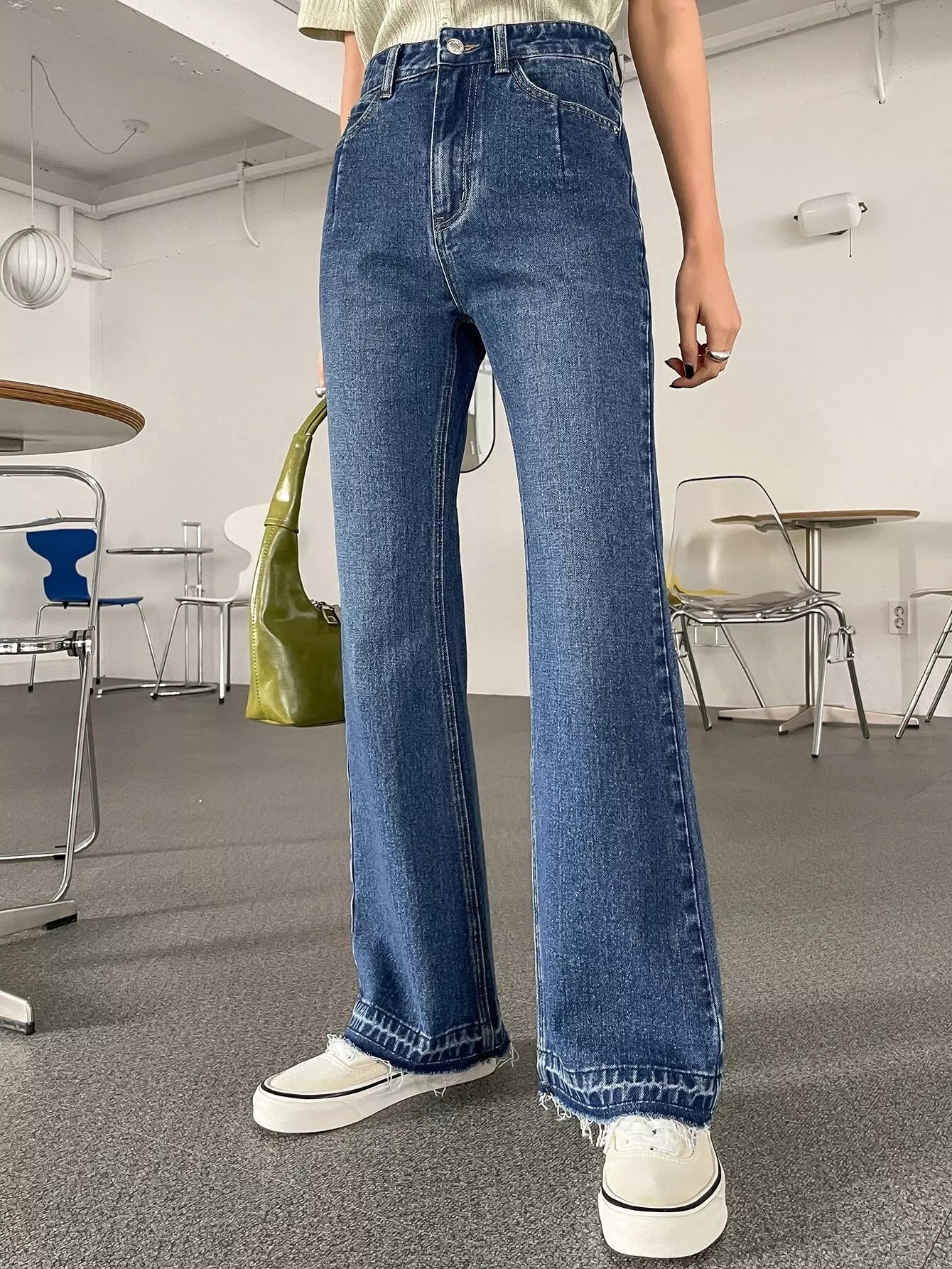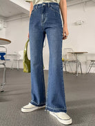 بنطال جينز واسع الساقين عالي الارتفاع