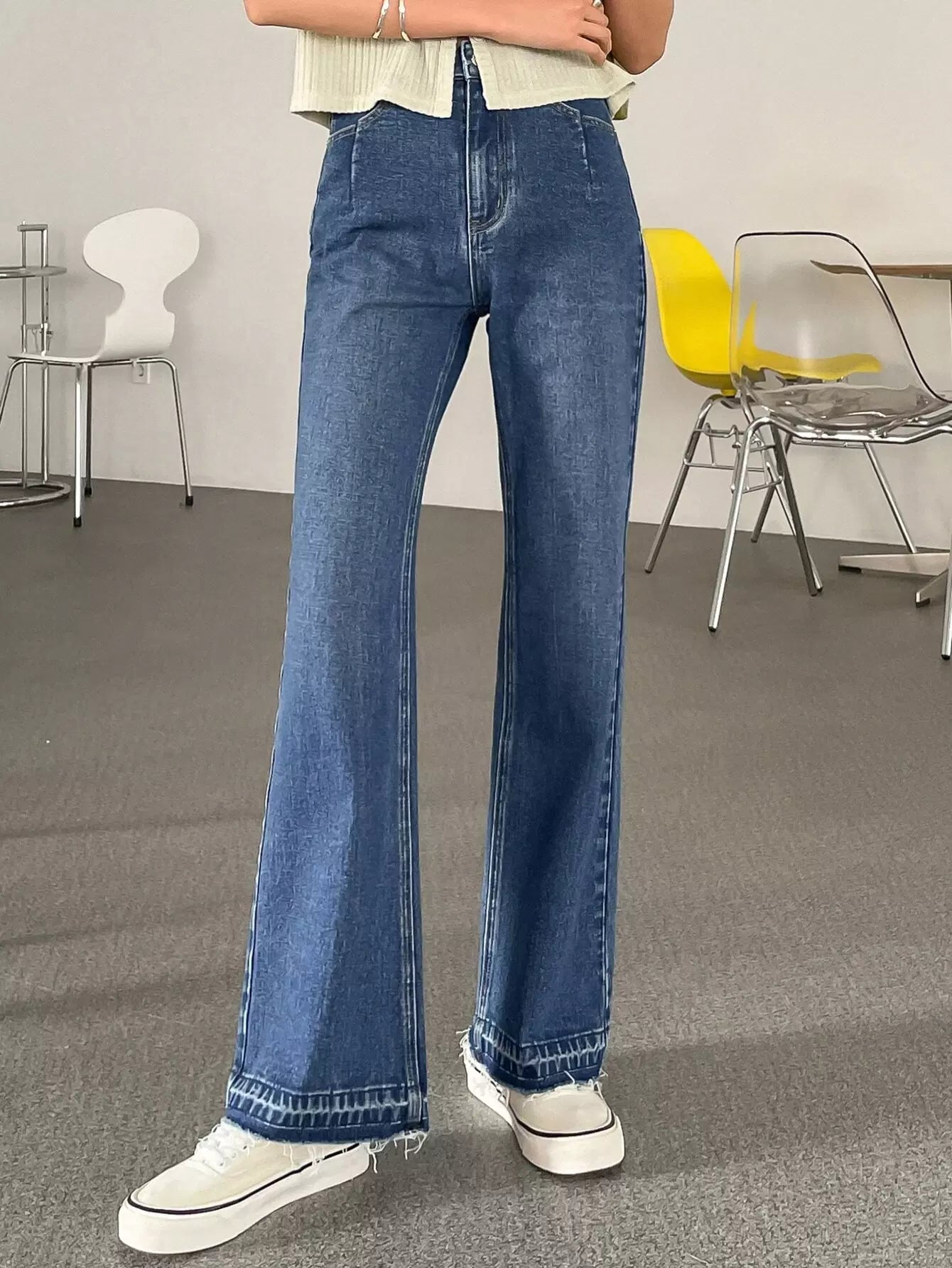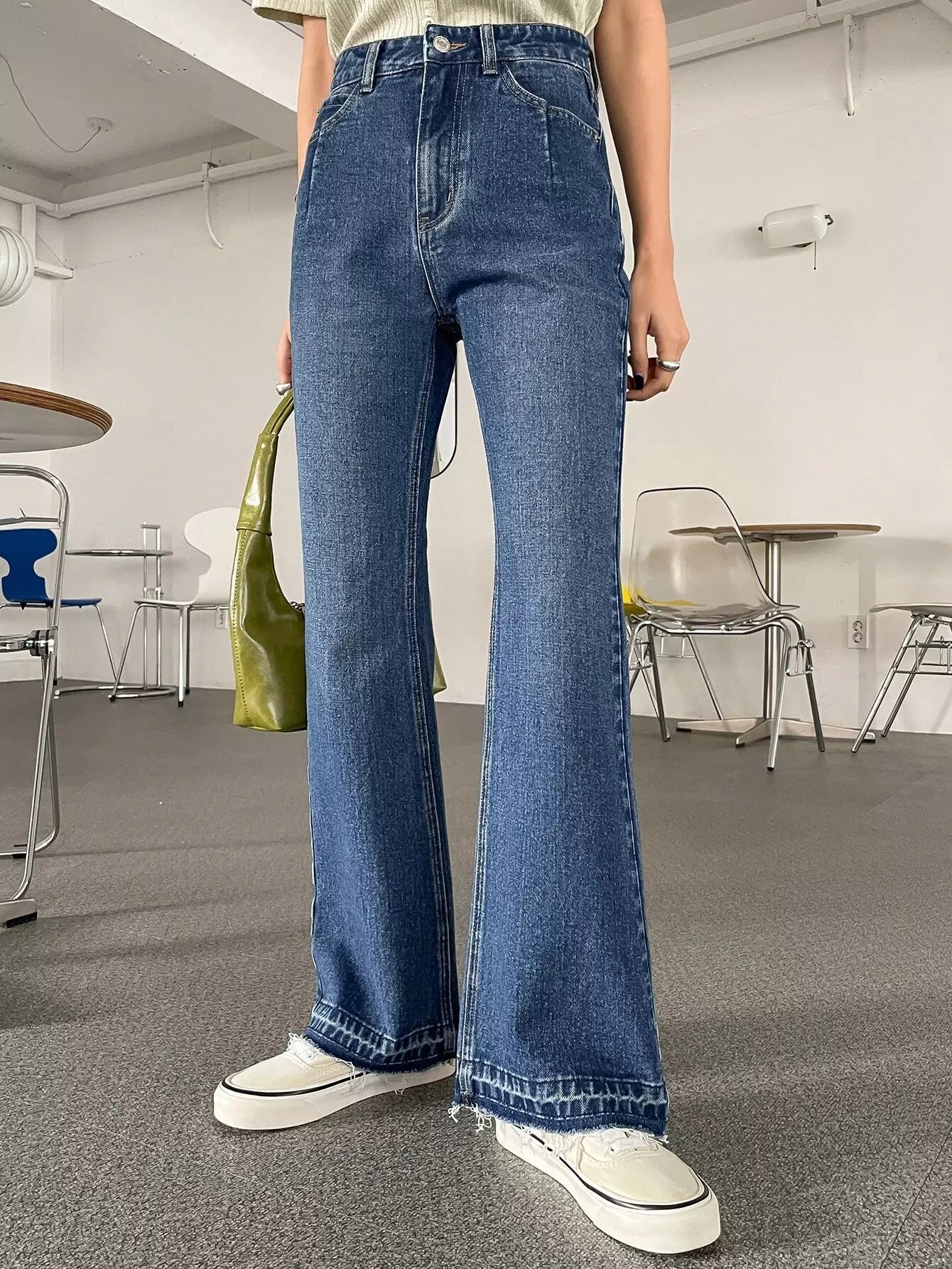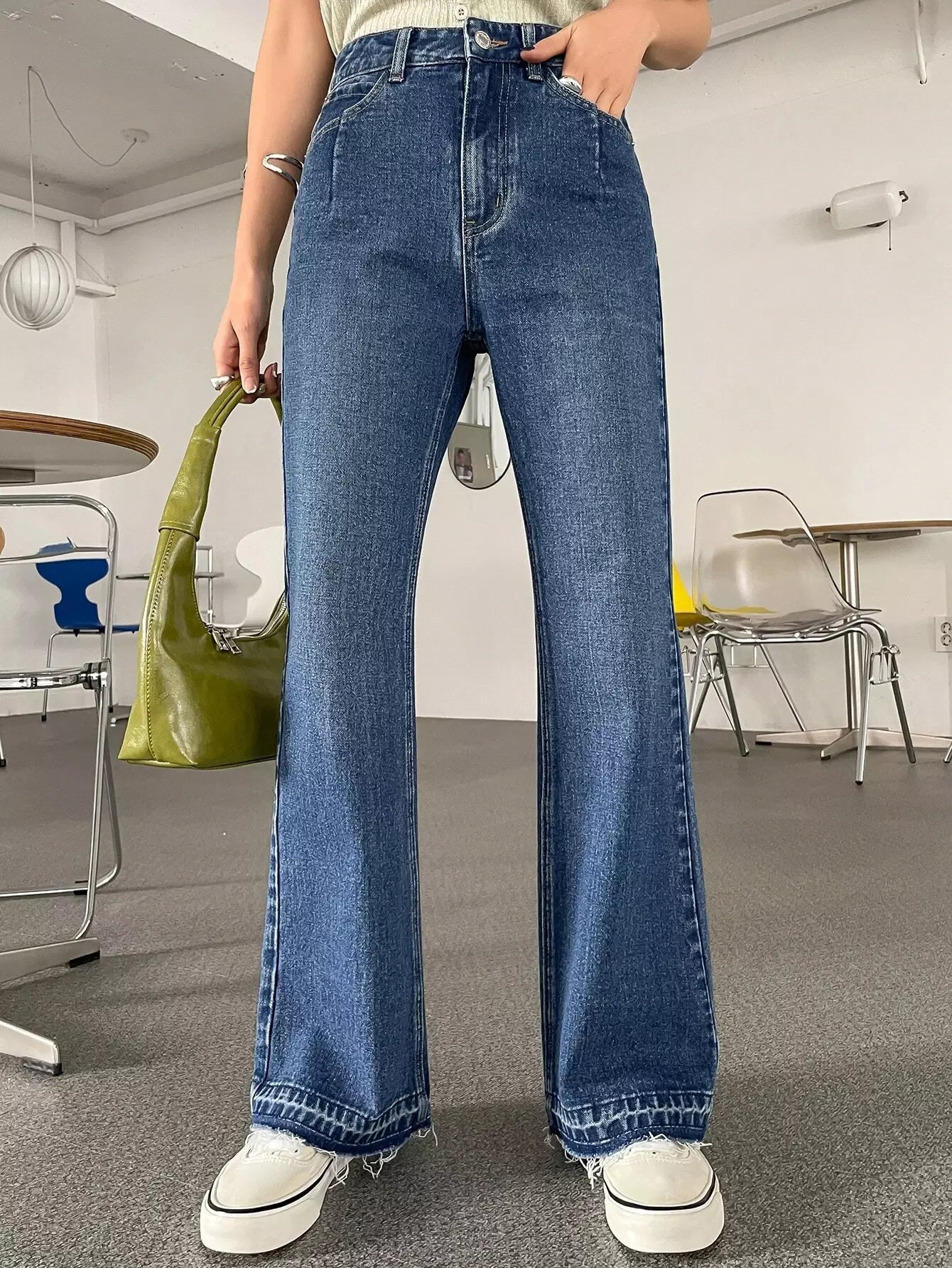 بنطال جينز واسع الساقين عالي الارتفاع