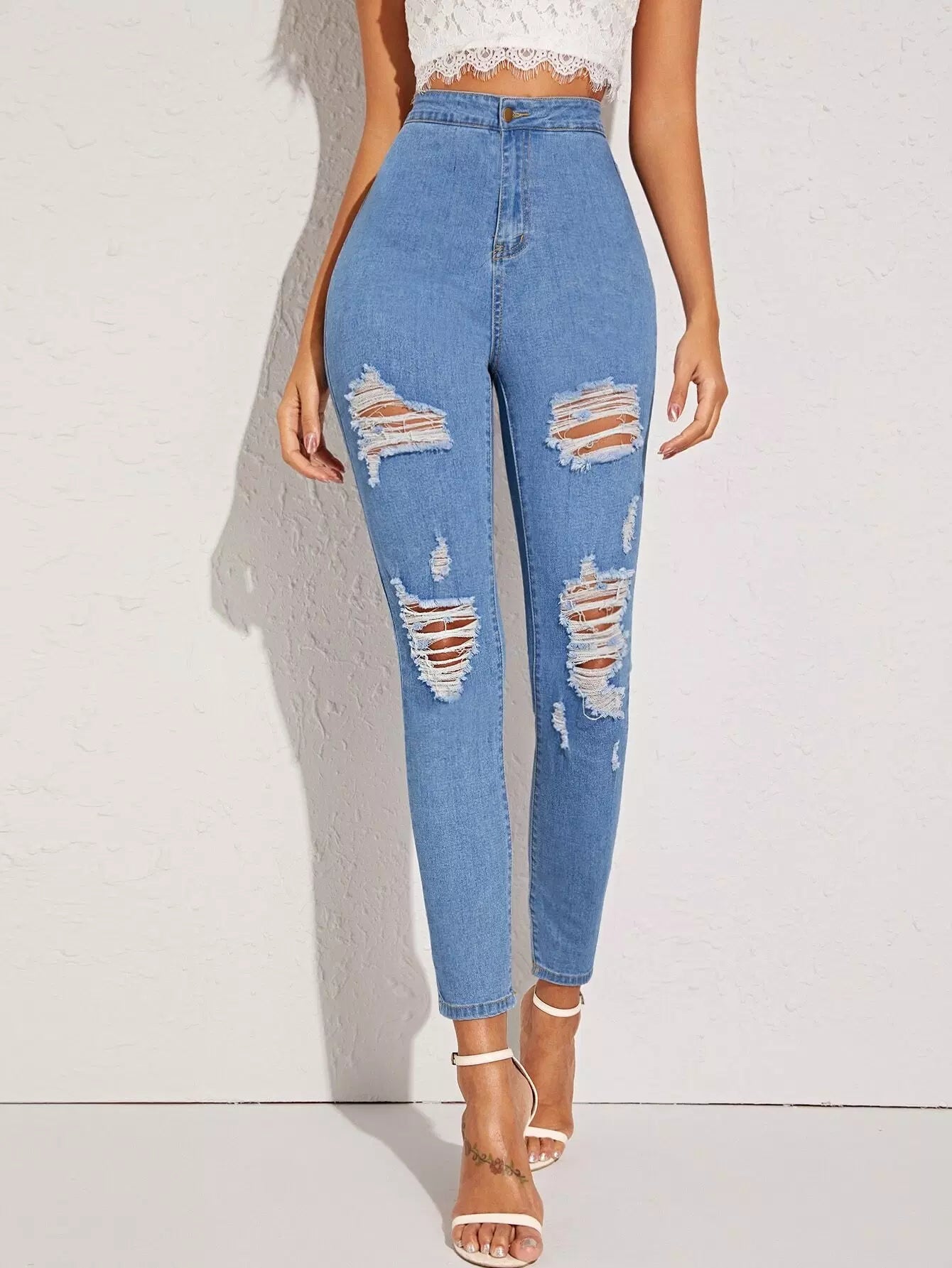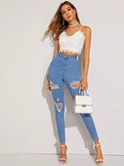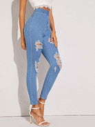 بنطلون جينز سكيني سكيني عالي الخصر عالي التمدد