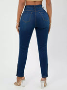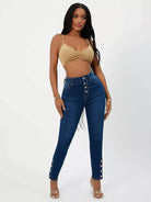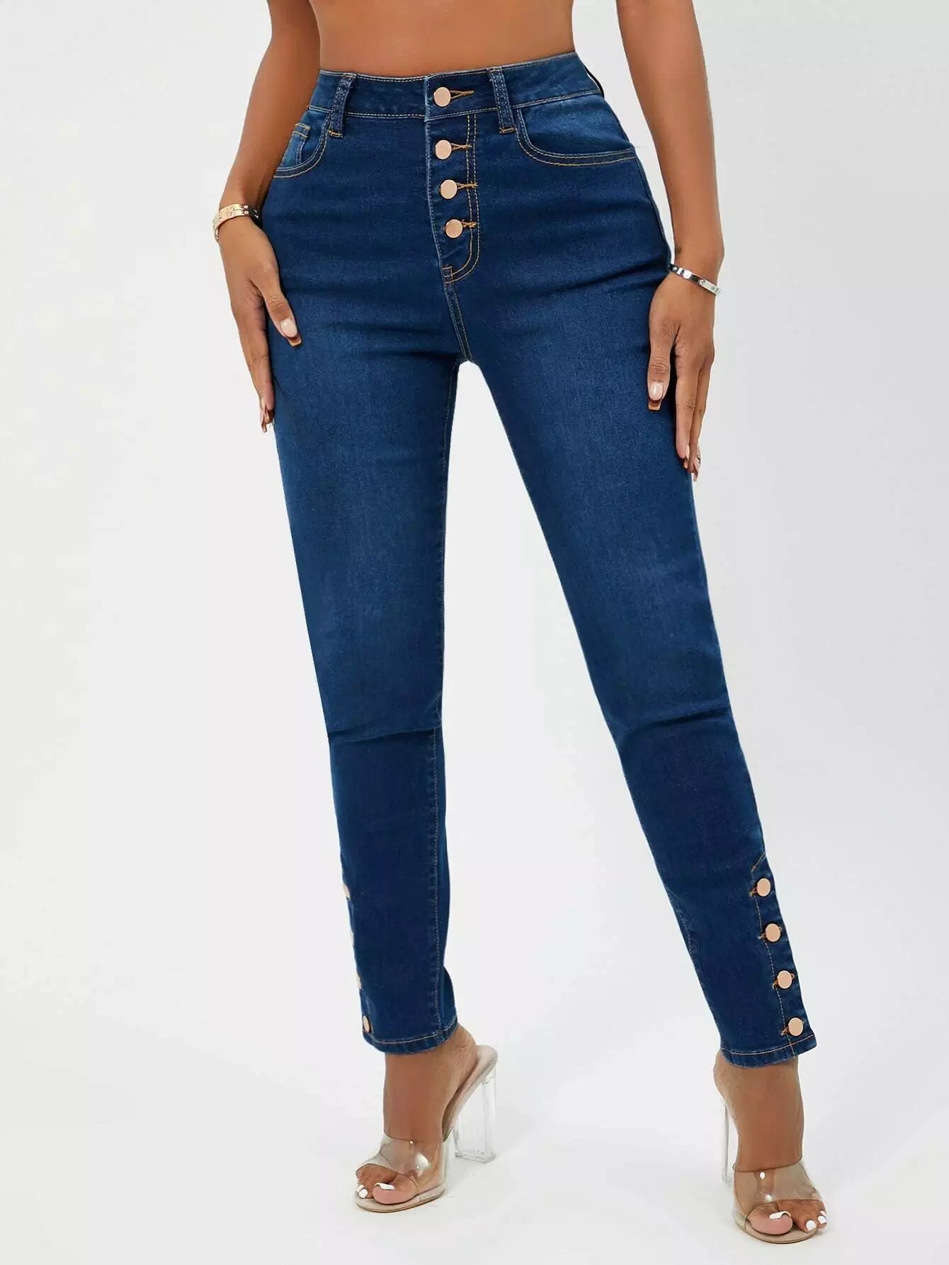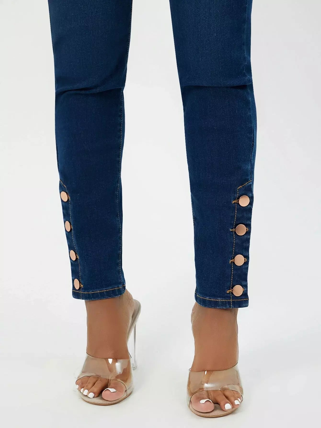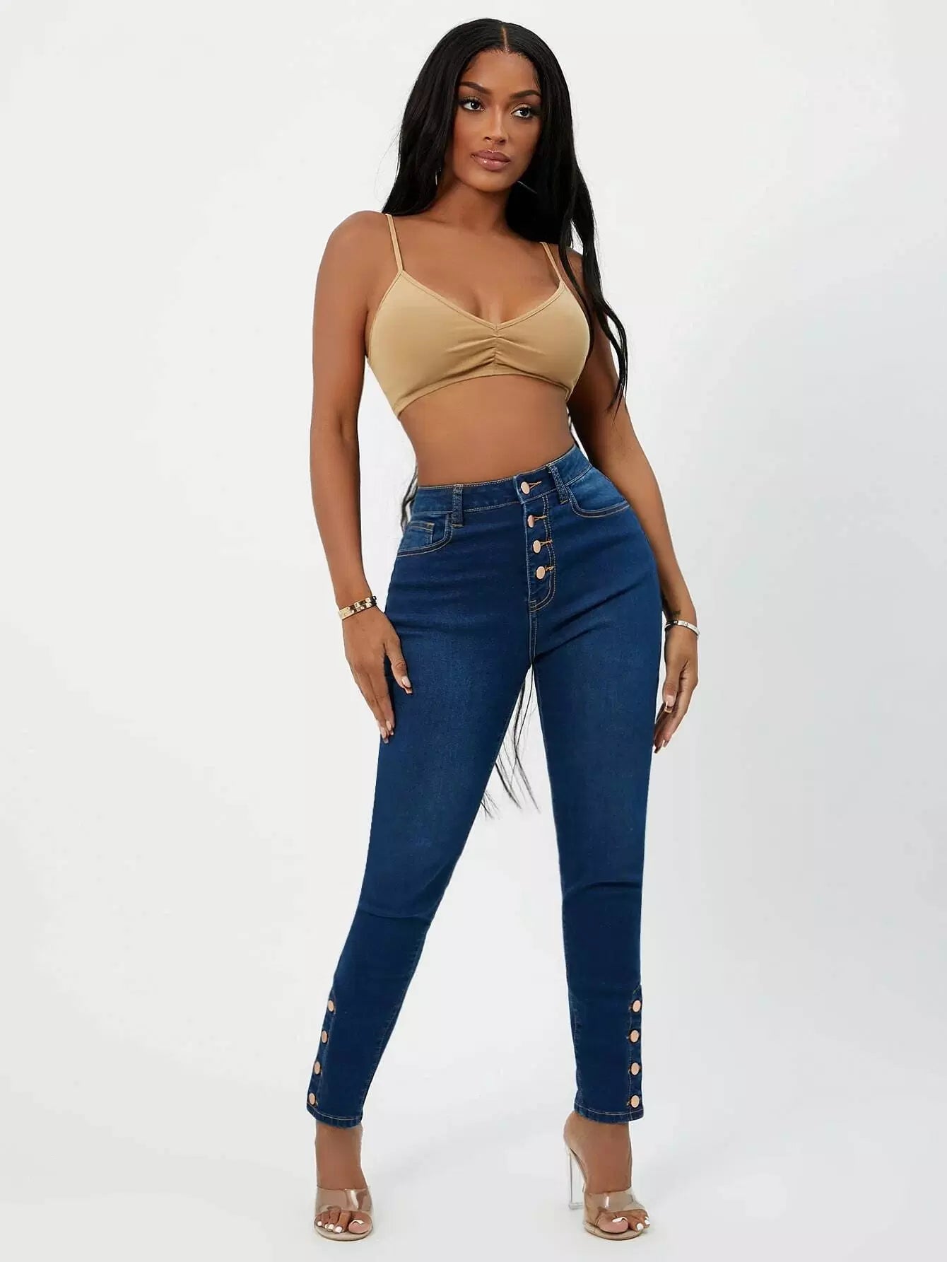 بنطال جينز ضيق بخصر مرتفع وحافة أزرار
