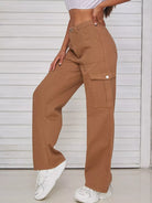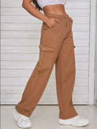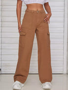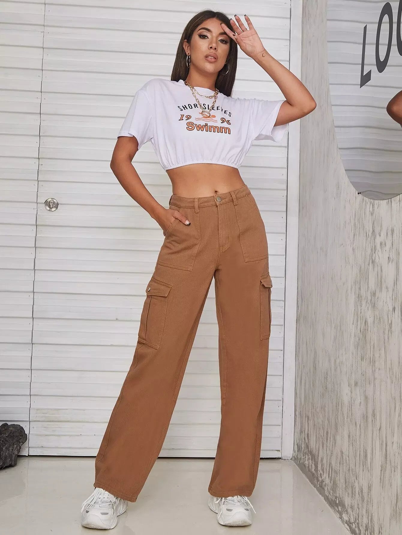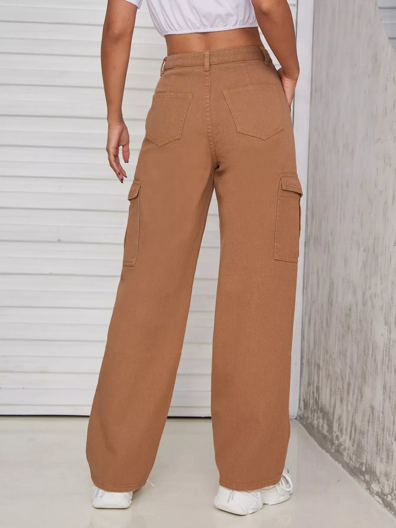 بنطلون جينز بخصر عالٍ وجيب واسع بغطاء خصر مرتفع