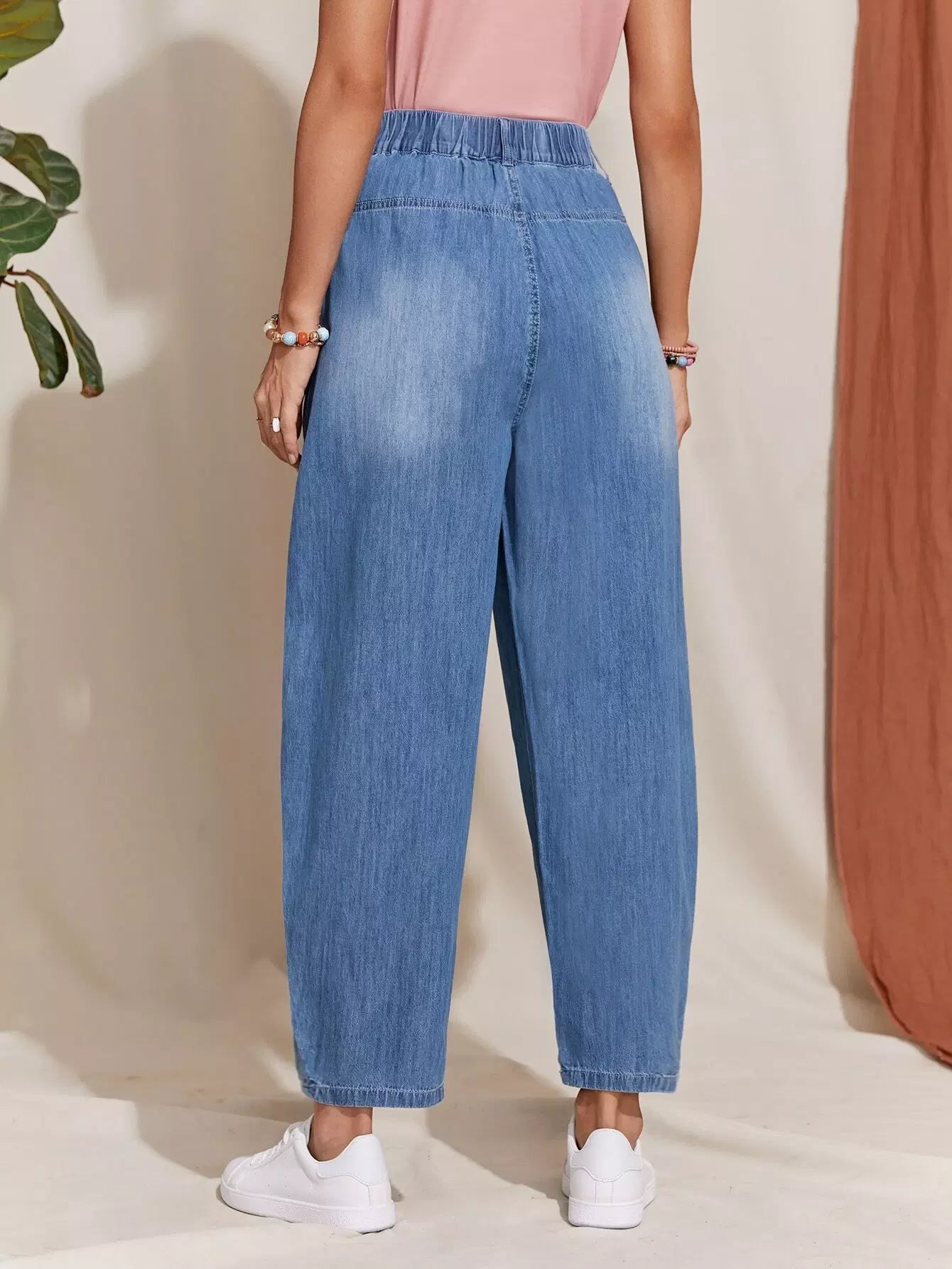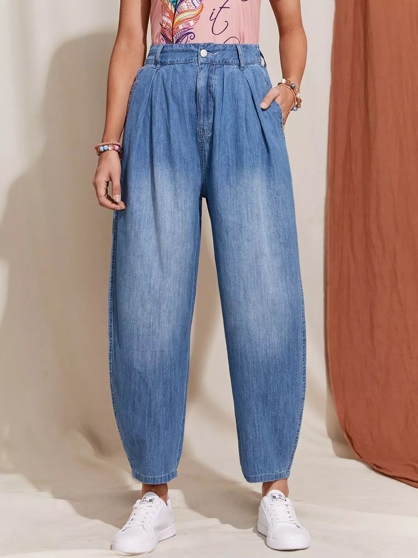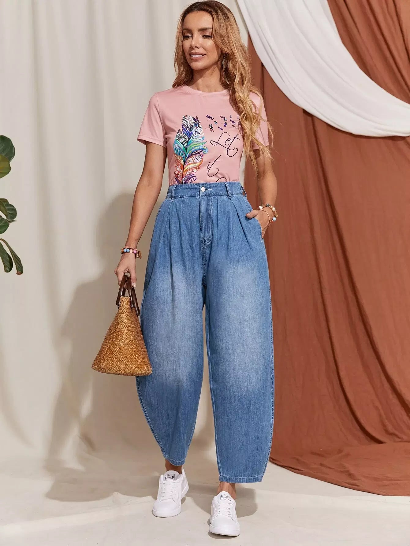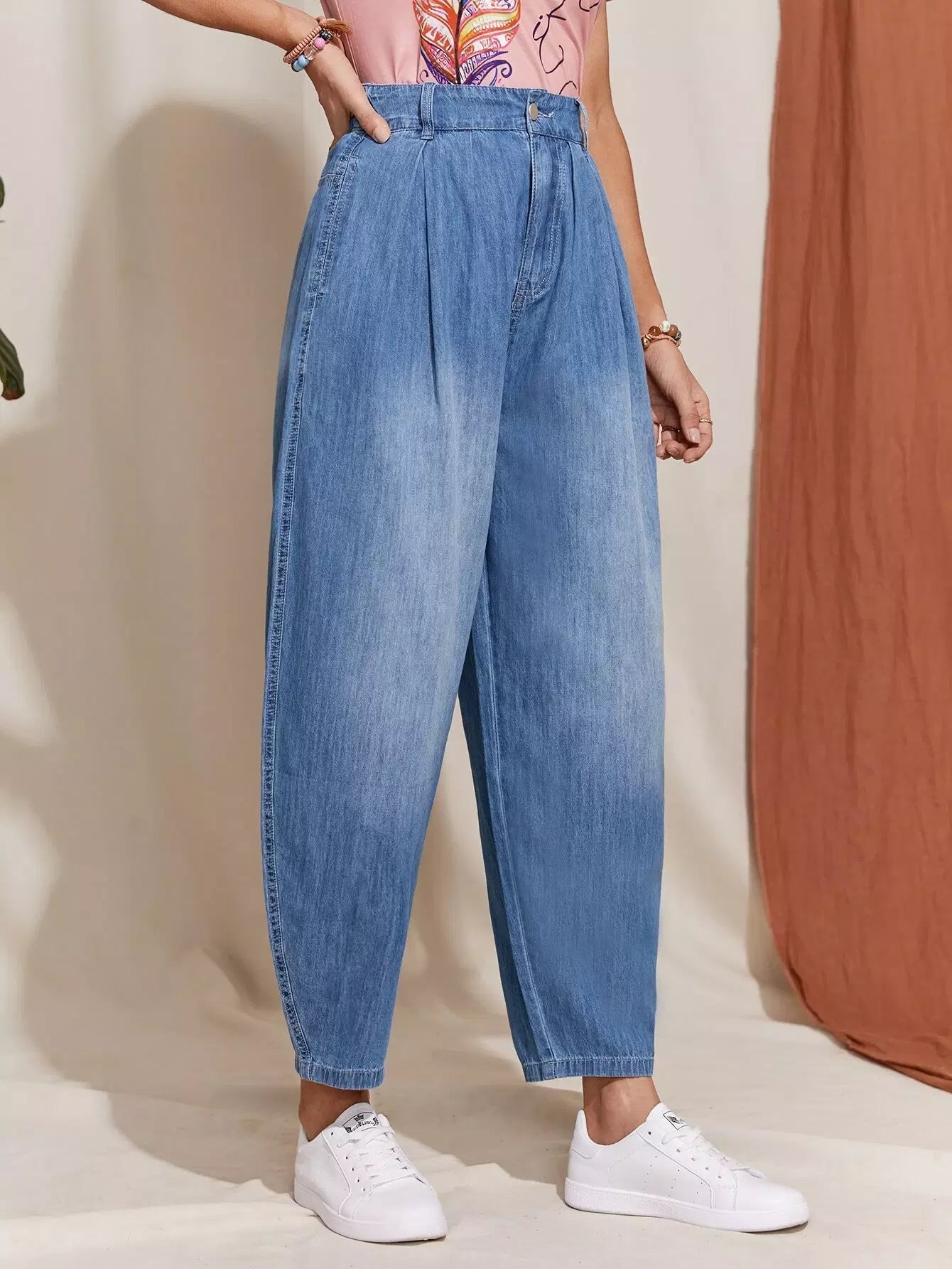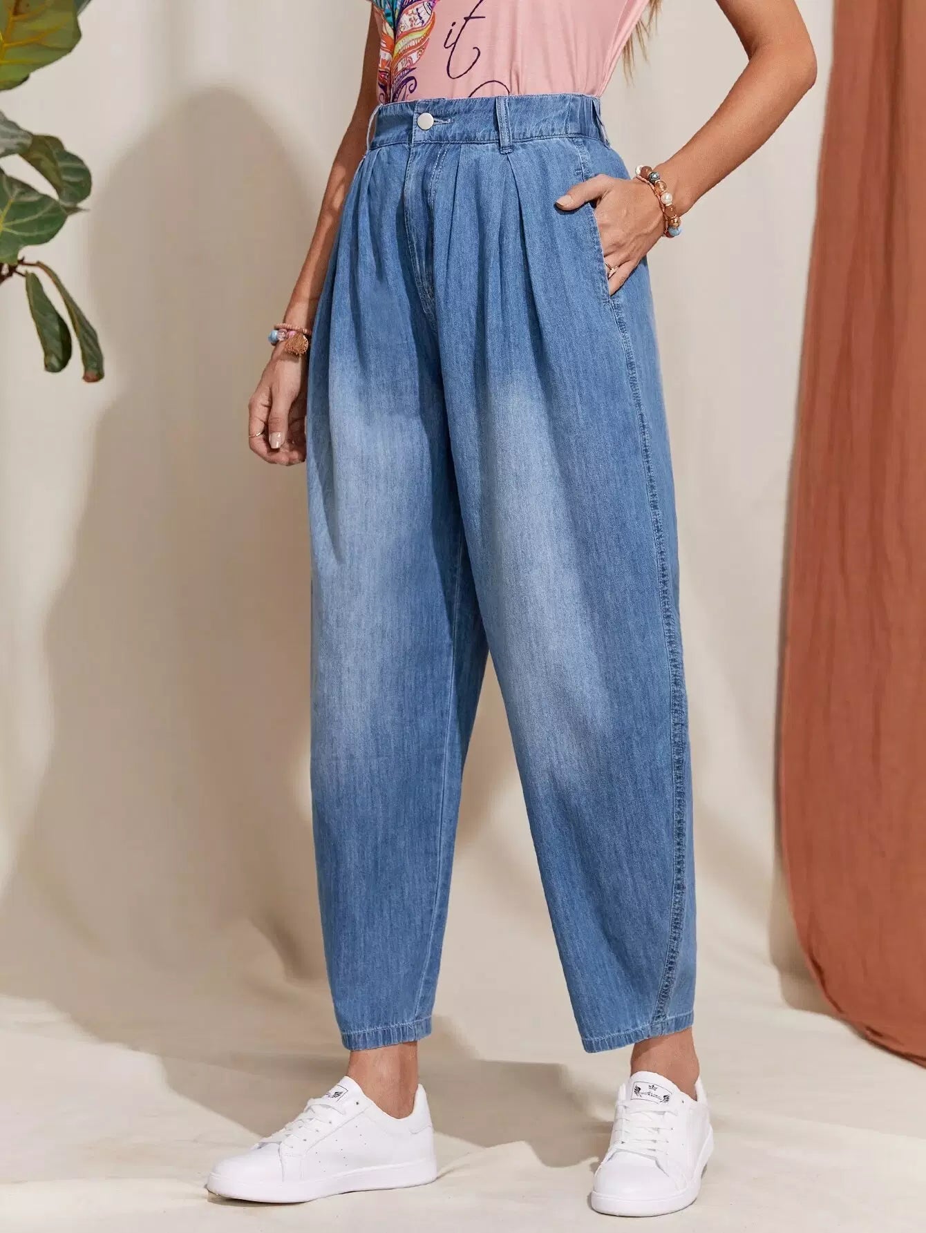 بنطلون جينز فضفاض عالي الخصر مطوي بطيات عالية الخصر