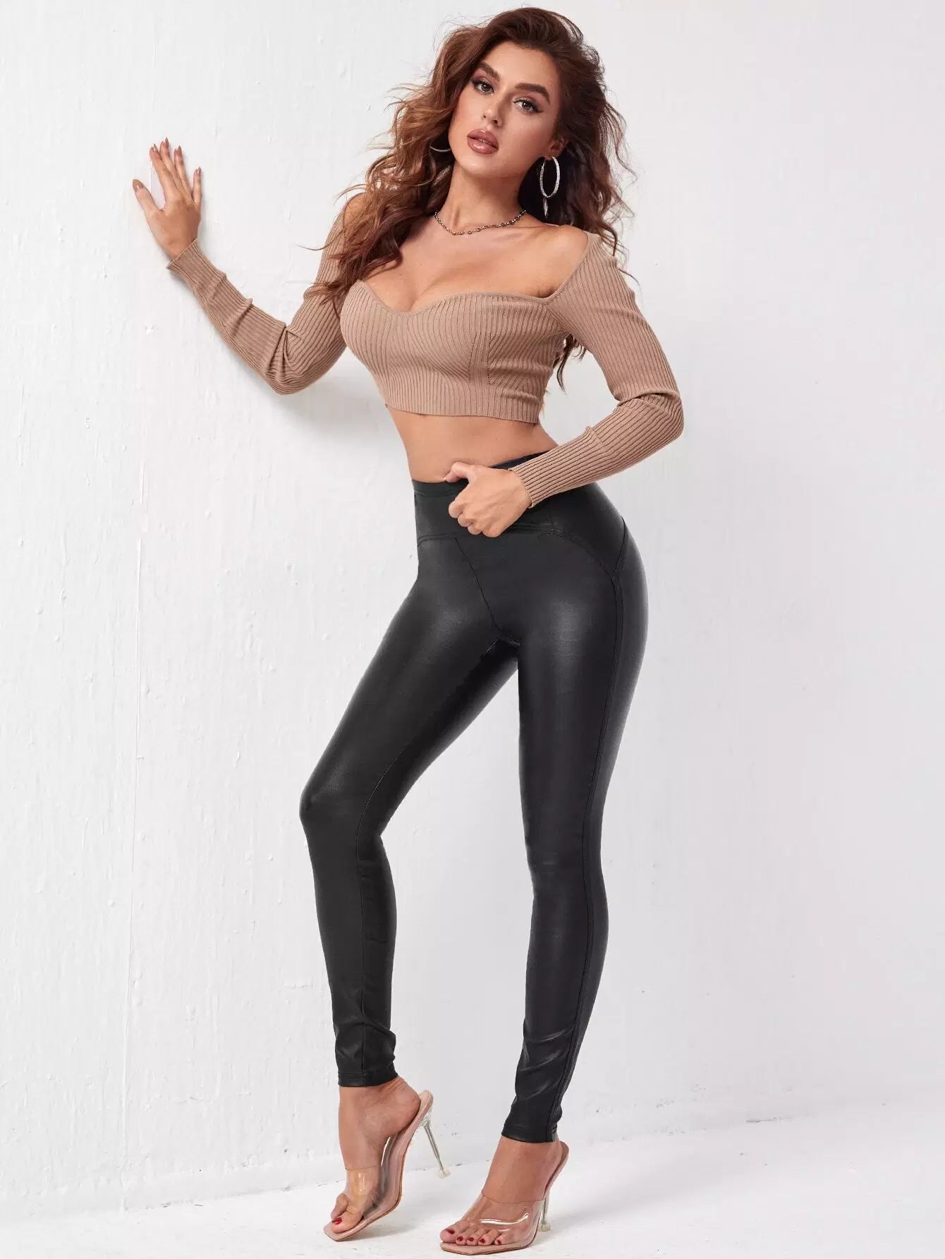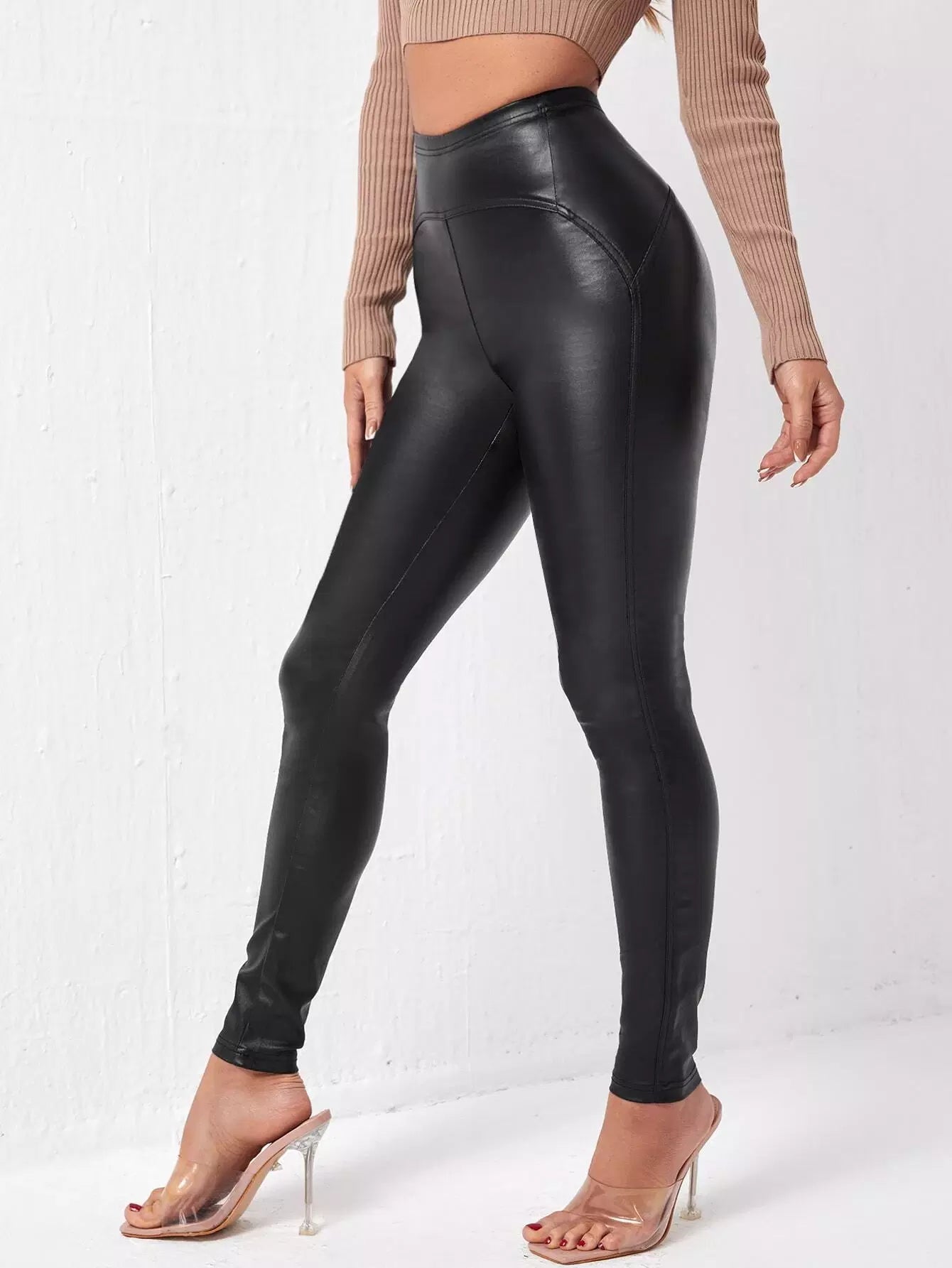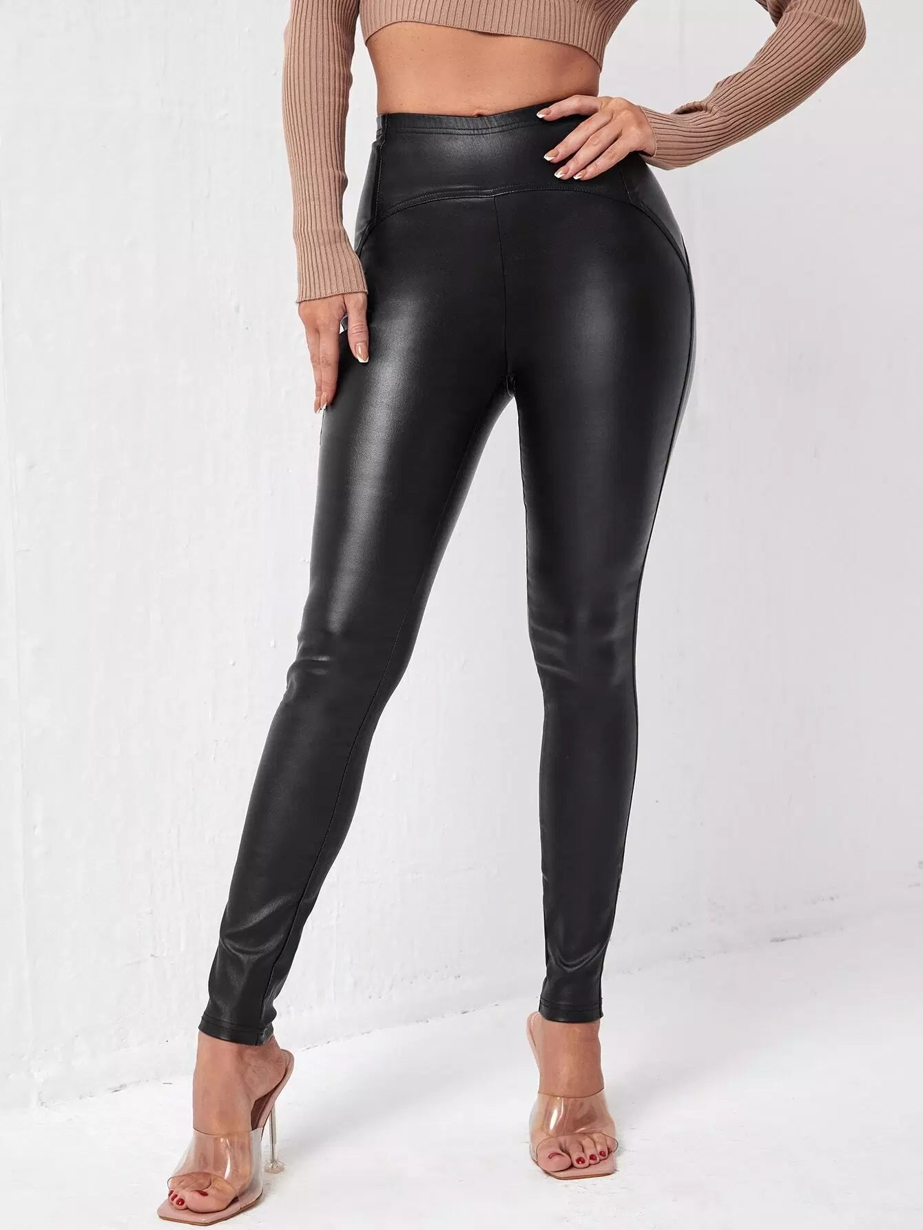 بنطلون جينز جينز سكيني سكيني بخصر عالٍ جلدي