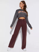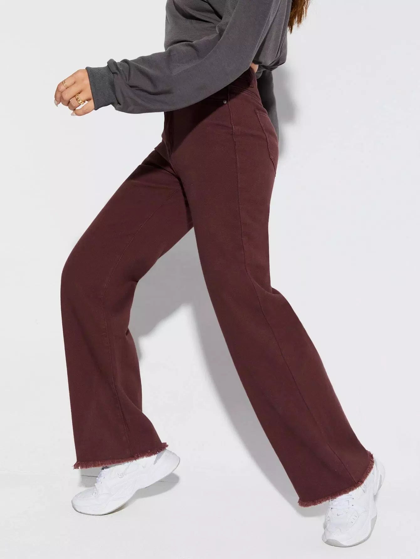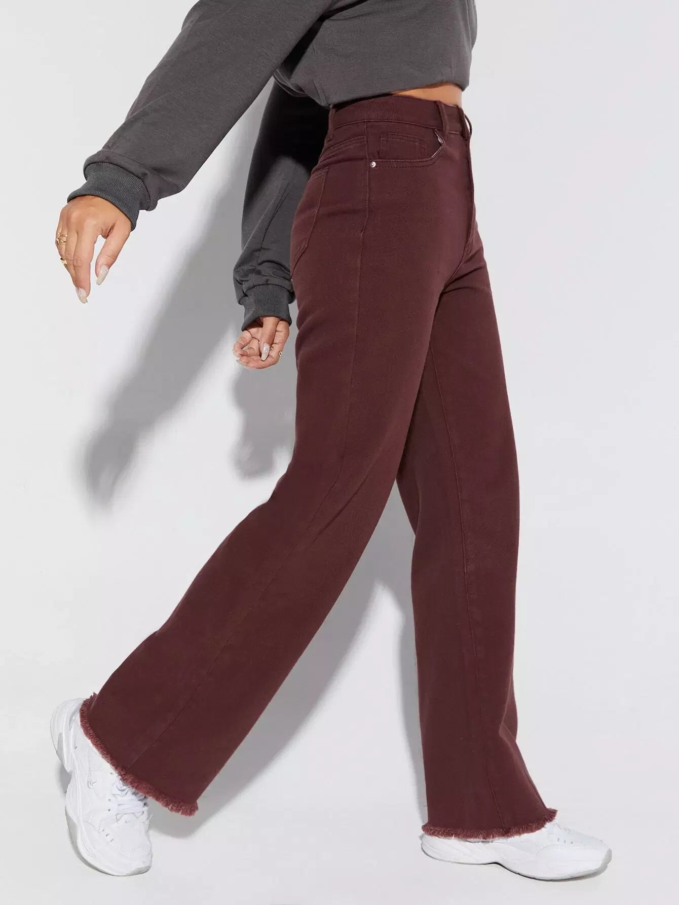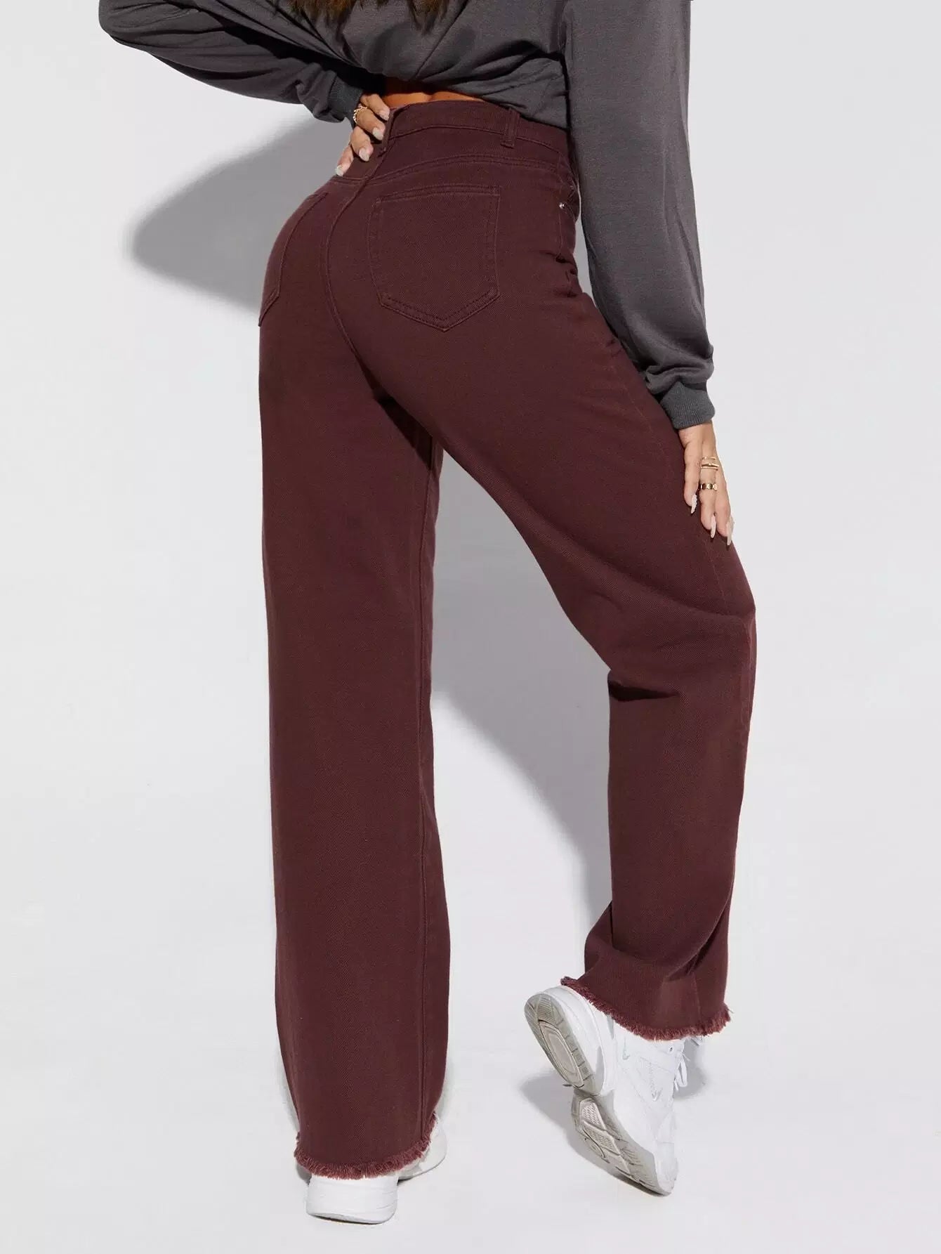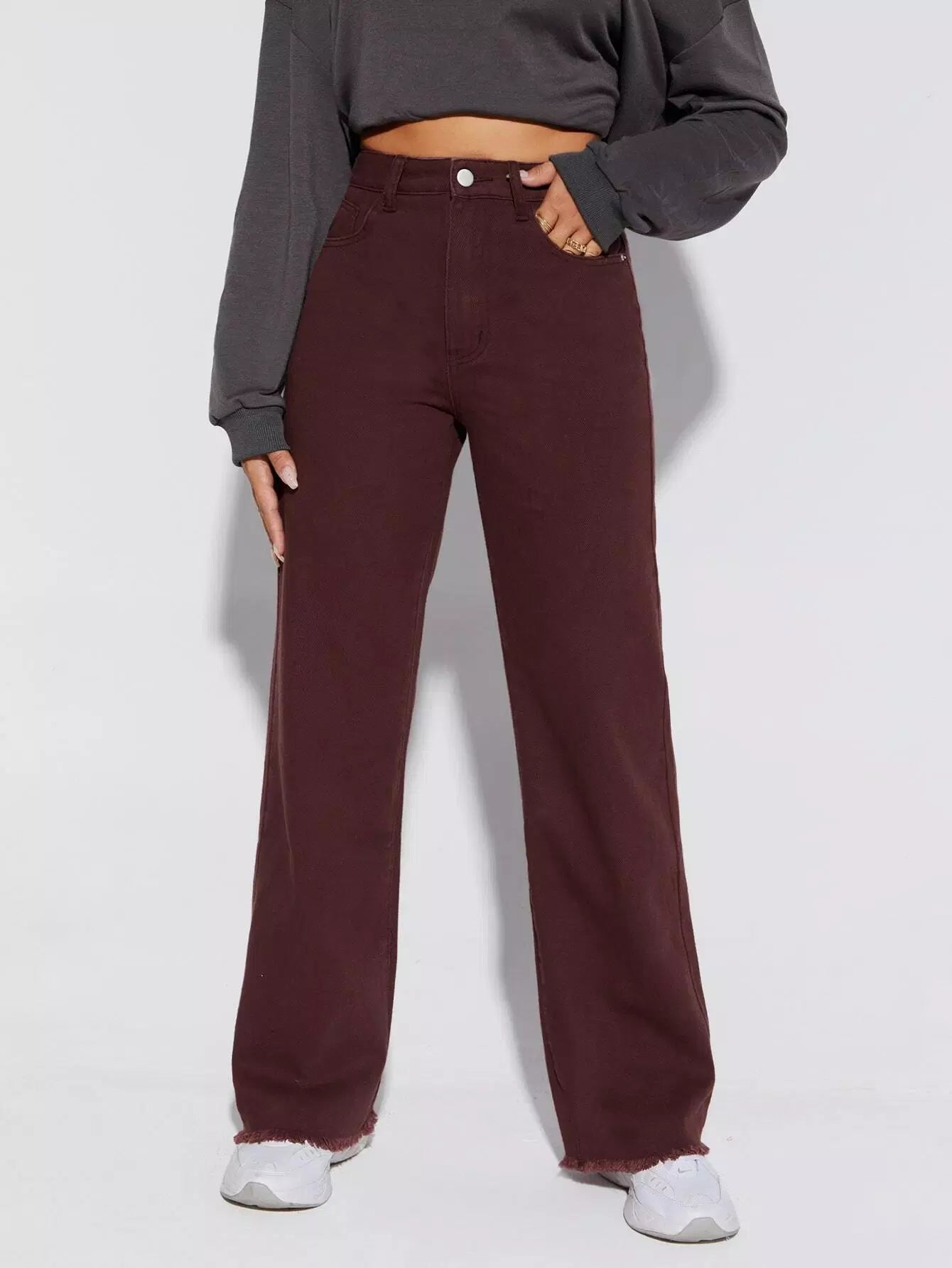بنطلون جينز بحواف مستقيمة عالية الخصر عالية الخصر
