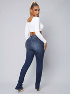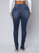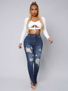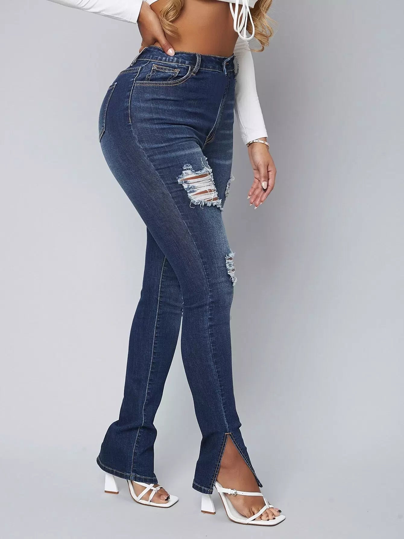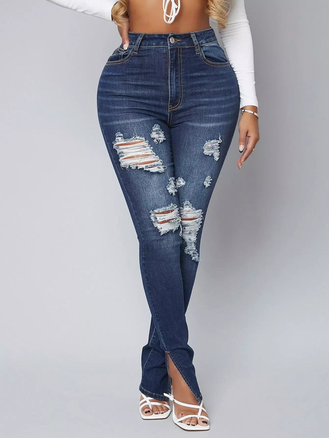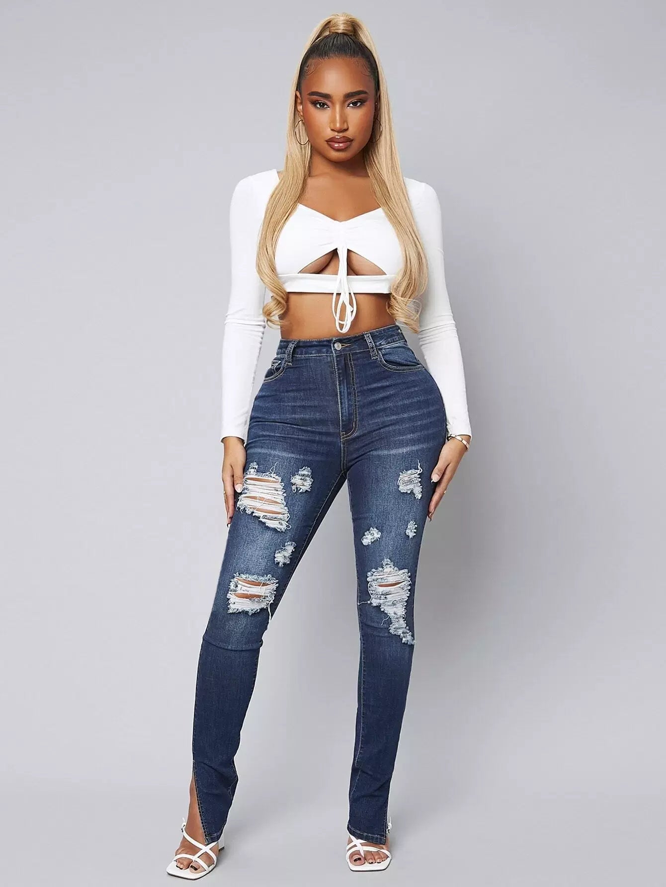 بنطال جينز ضيق ممزق ذو خصر مرتفع
