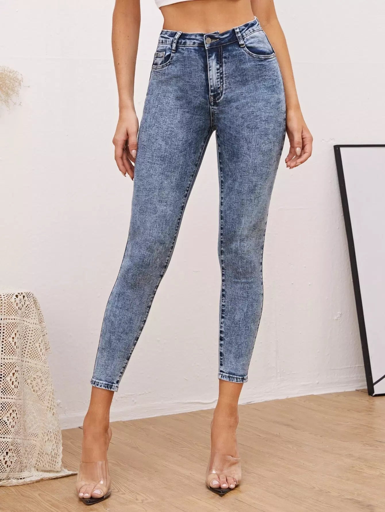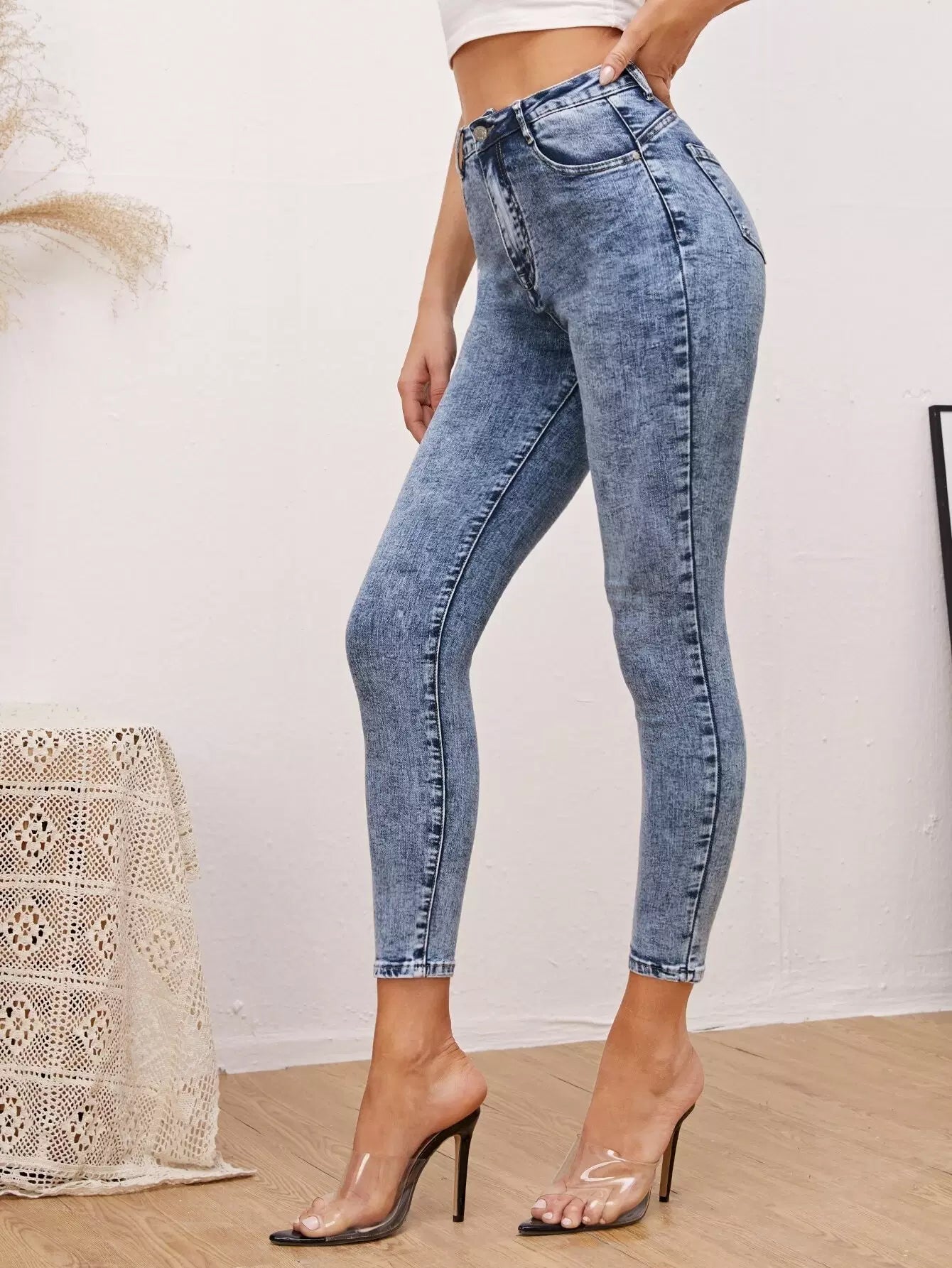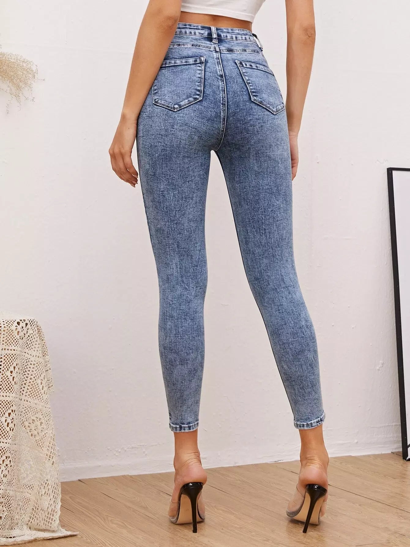 بنطال جينز جينز سكيني مائل بخصر عالٍ مائل