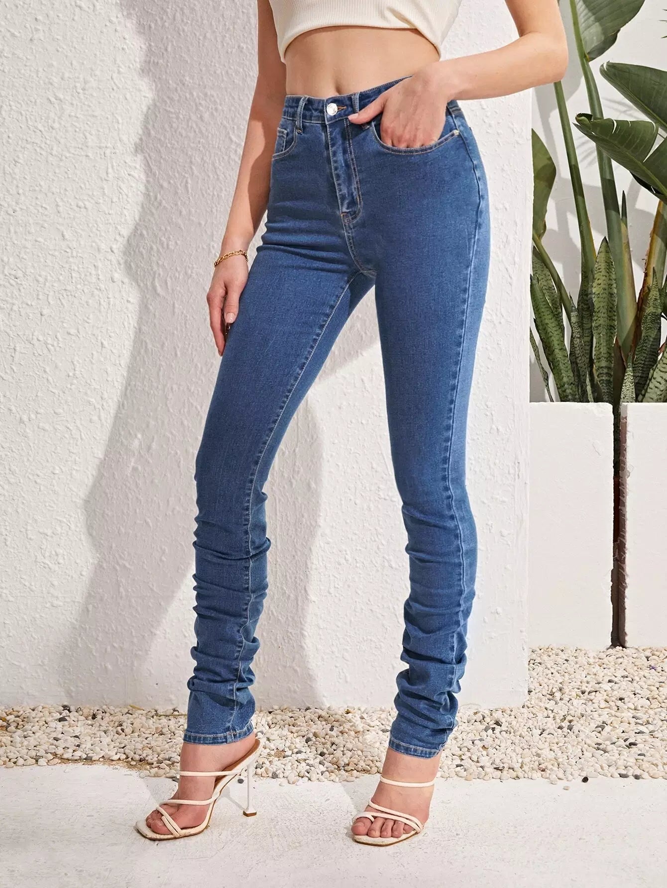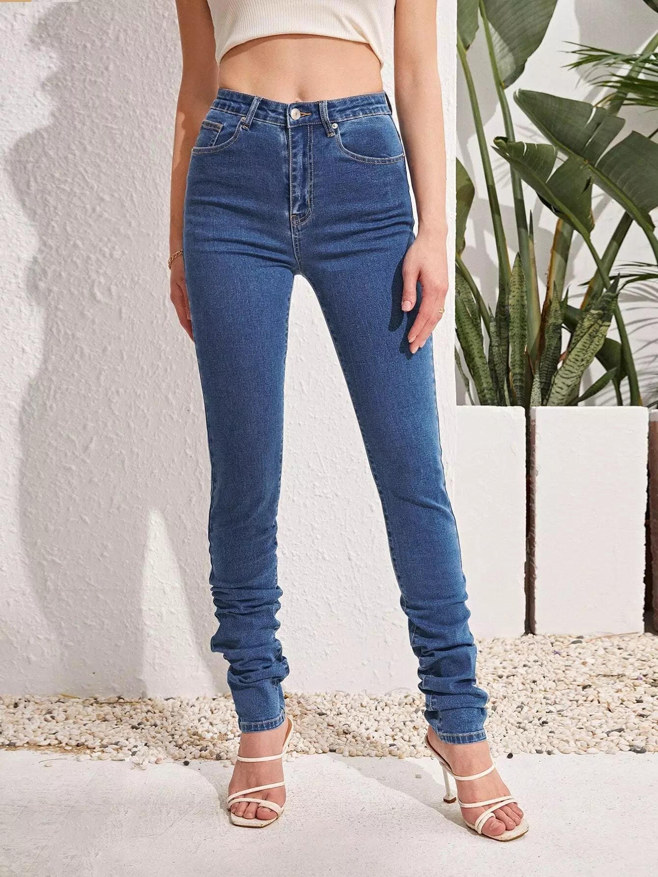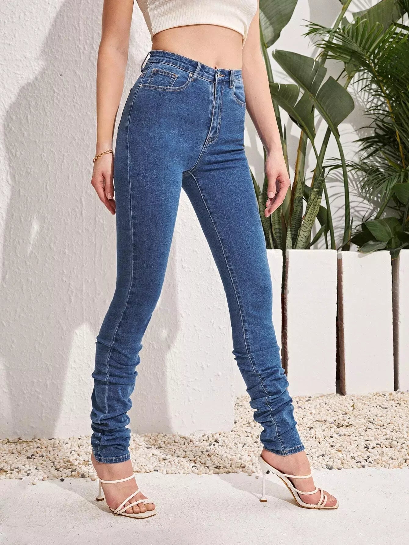 بنطال جينز جينز سكيني مائل بخصر عالٍ مائل