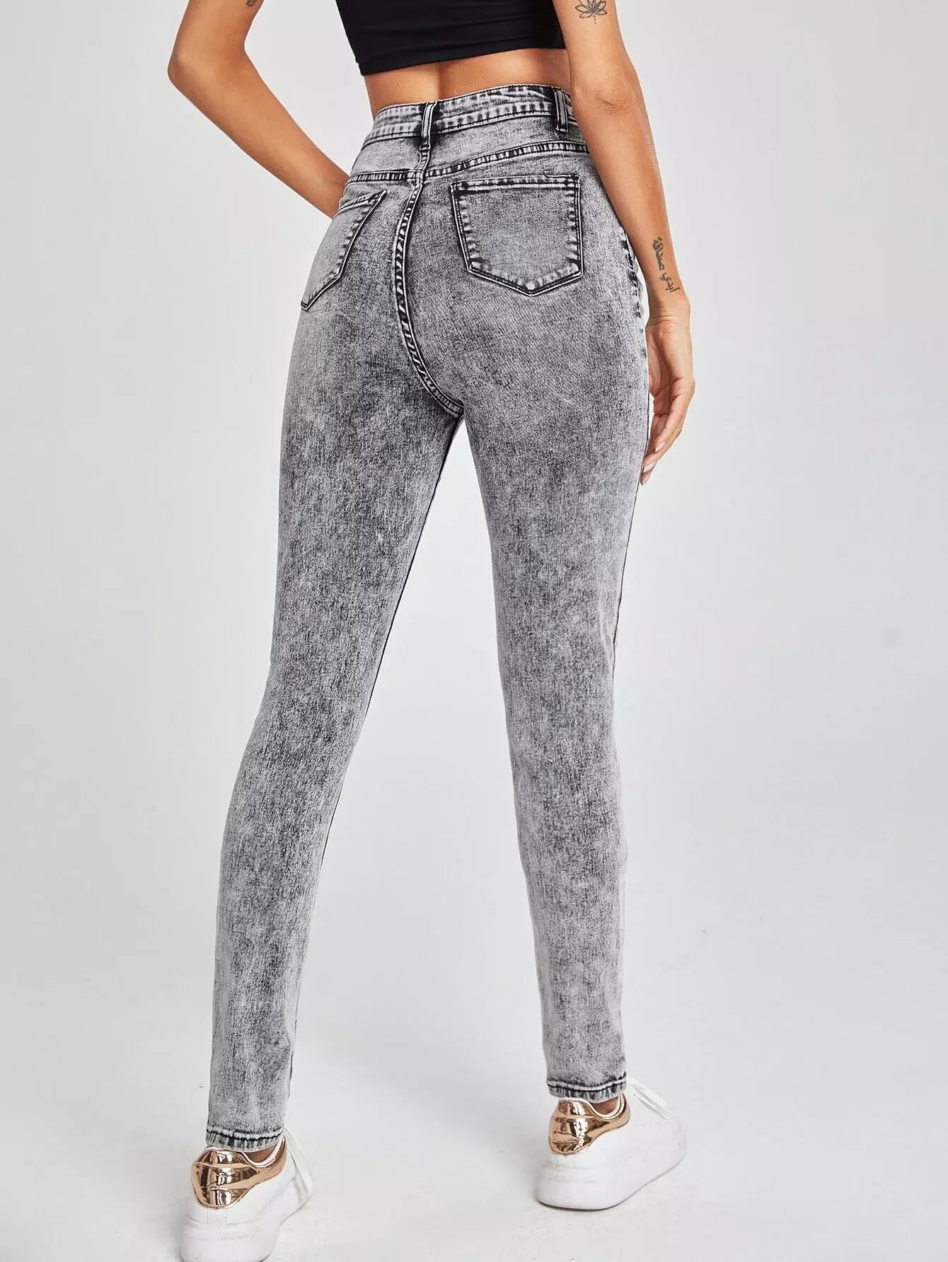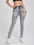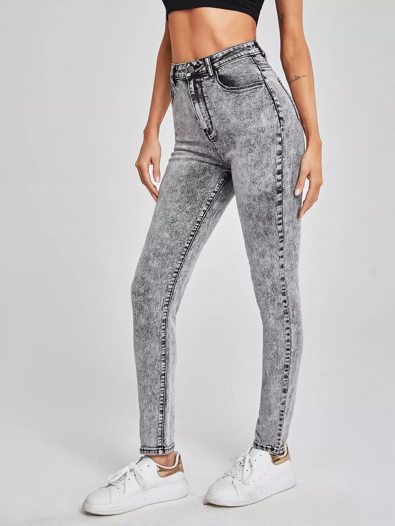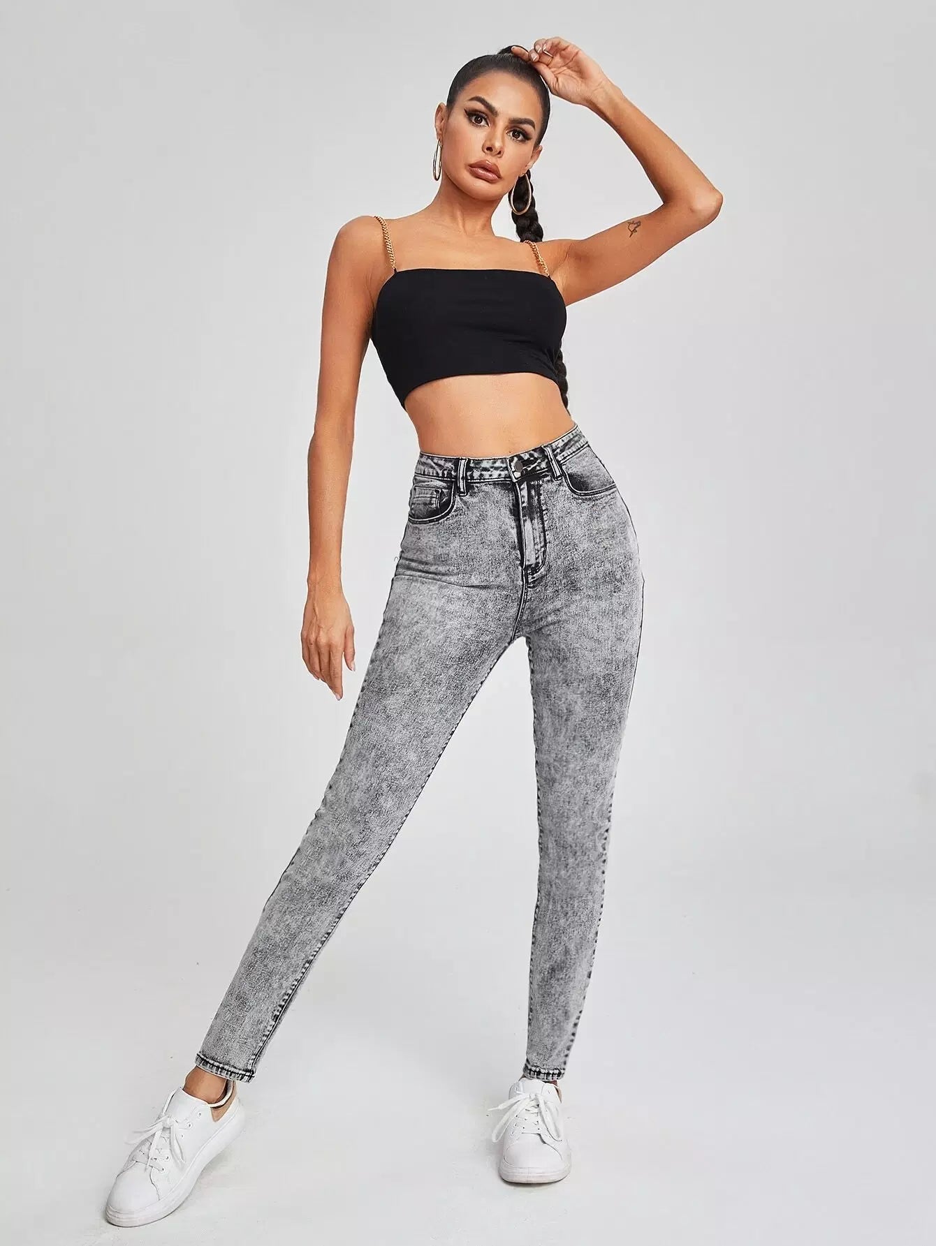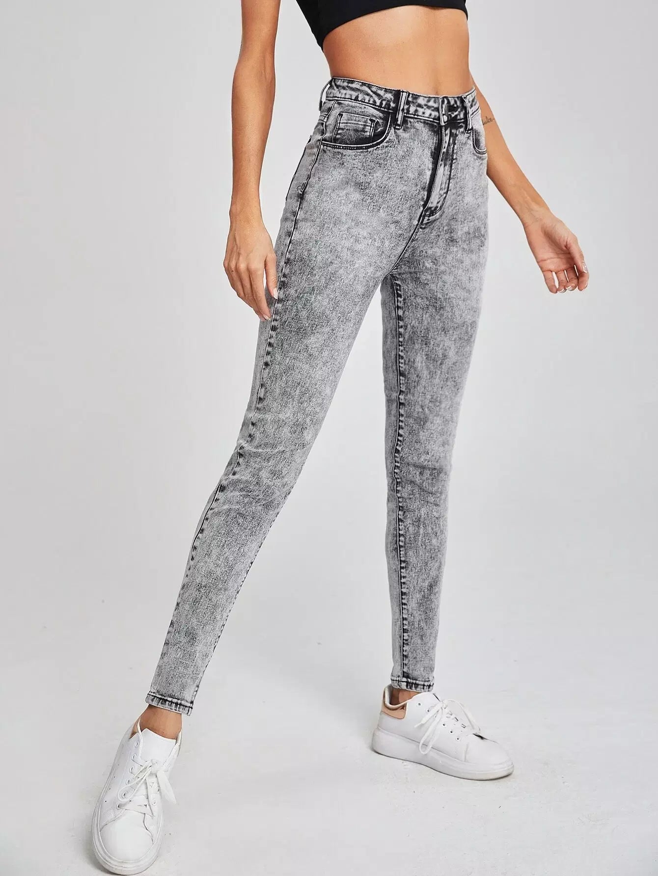 بنطال جينز جينز سكيني مائل بخصر عالٍ مائل