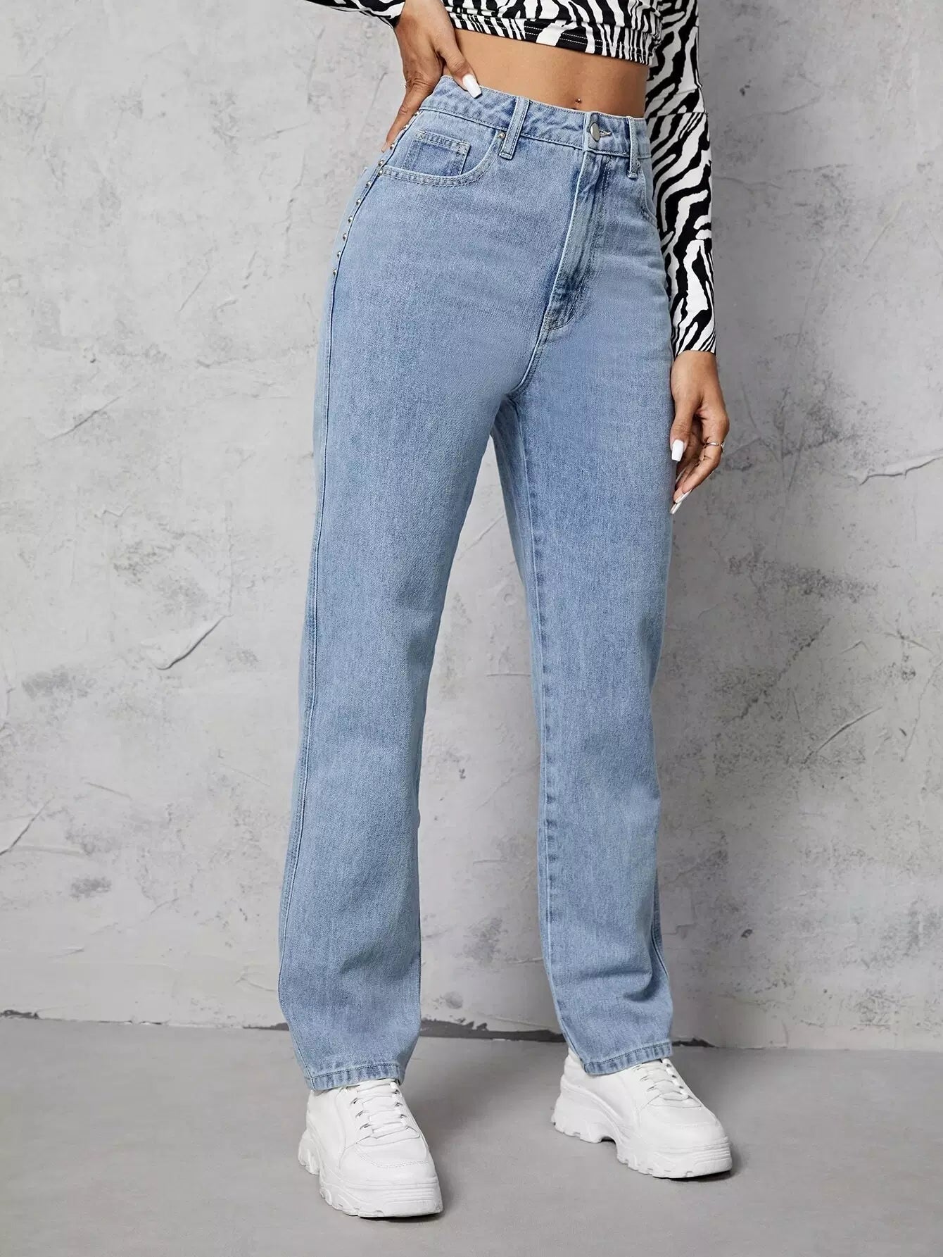 بنطلون جينز بتفاصيل مرصع عالي الخصر