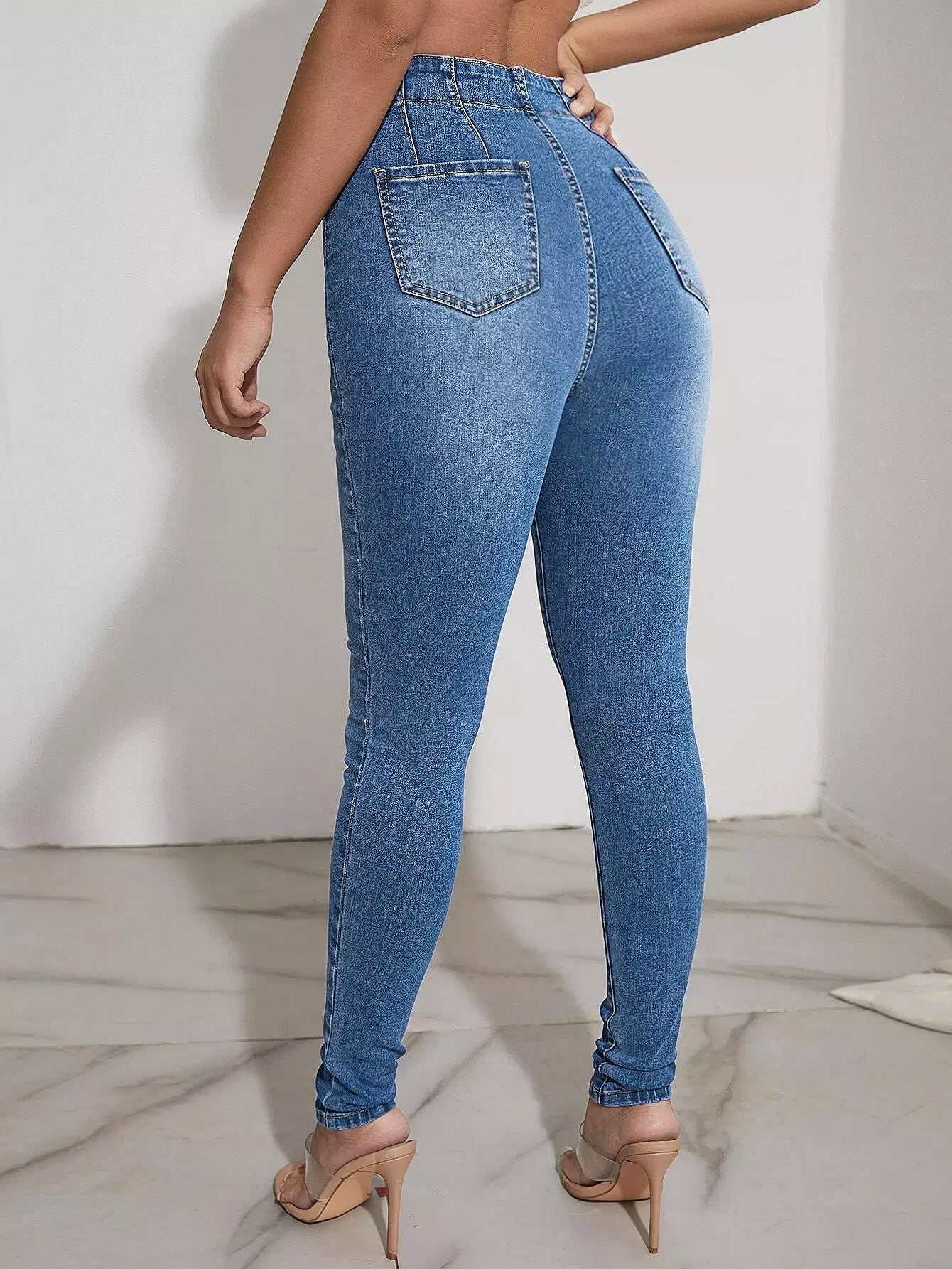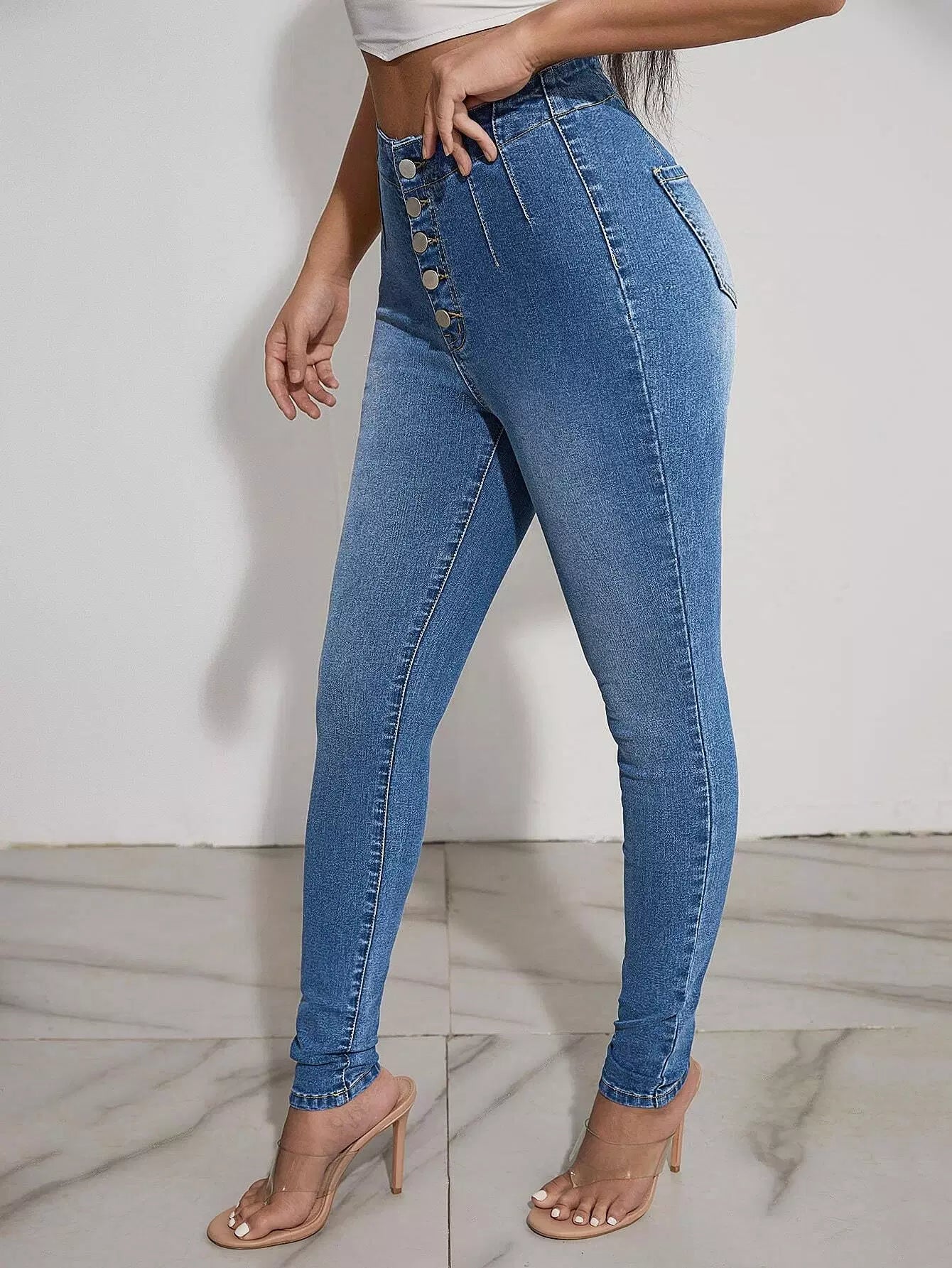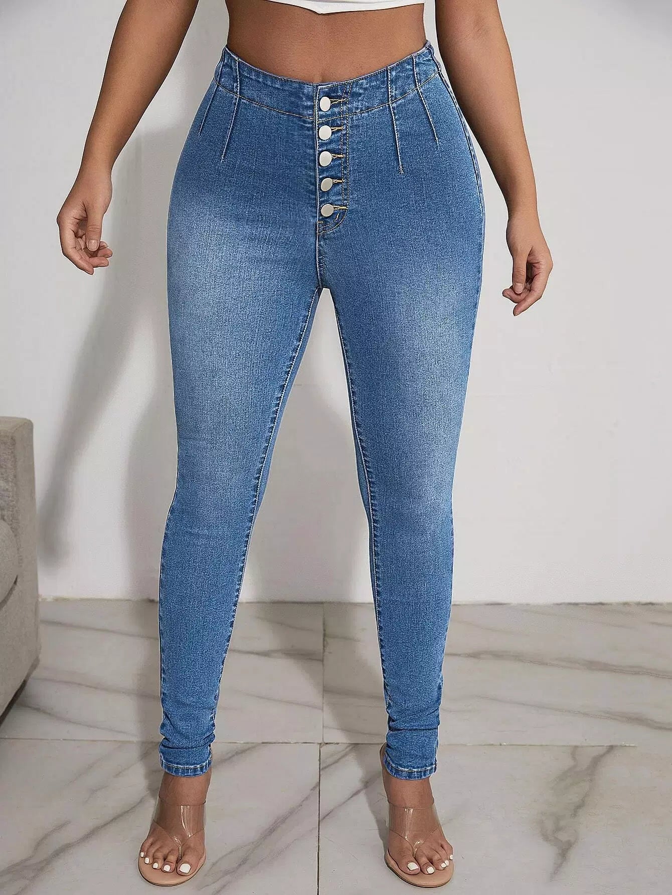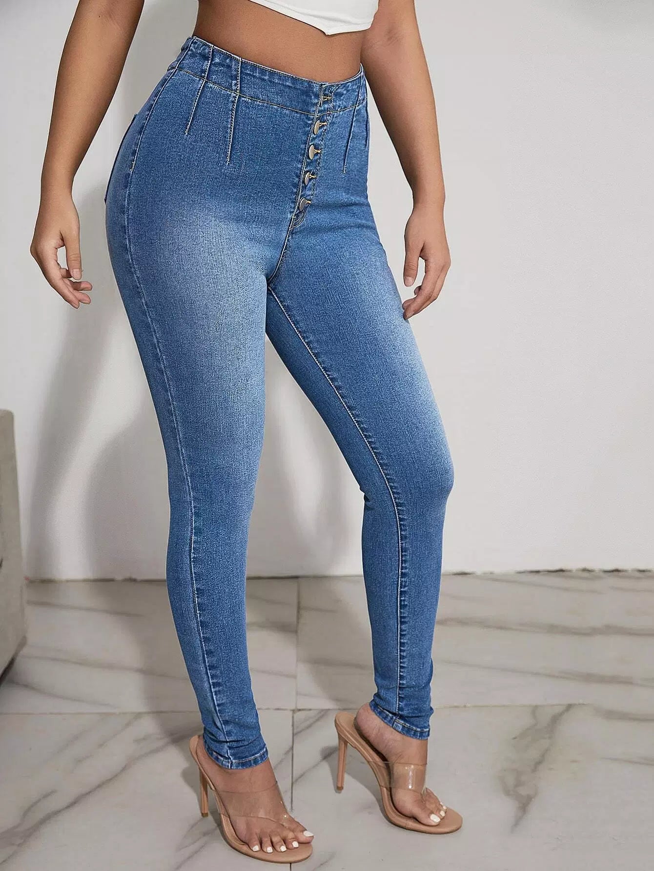 بنطال جينز بأزرار أمامية وخصر مرتفع