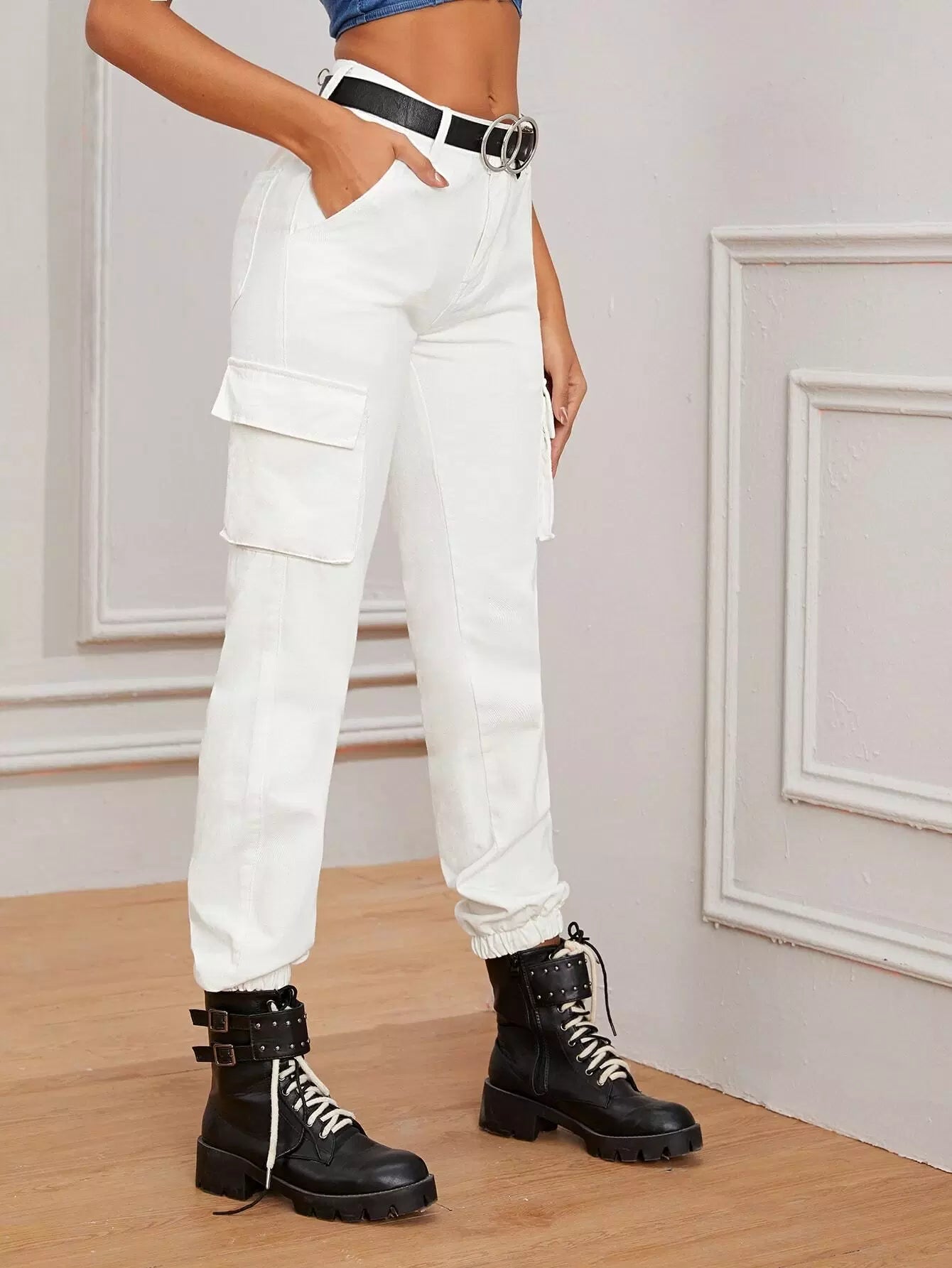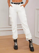بنطلون جينز كارغو عالي الخصر بدون حزام