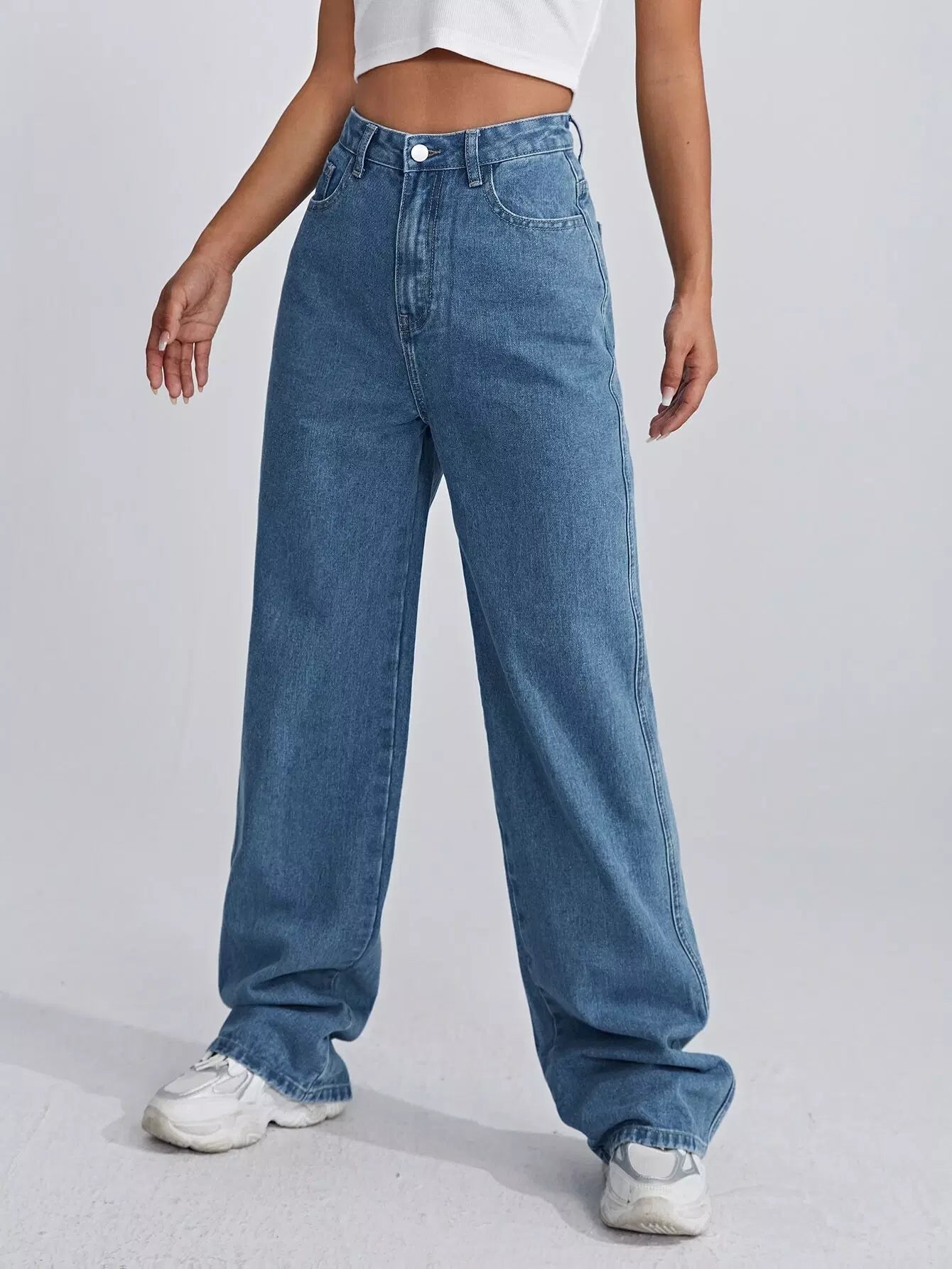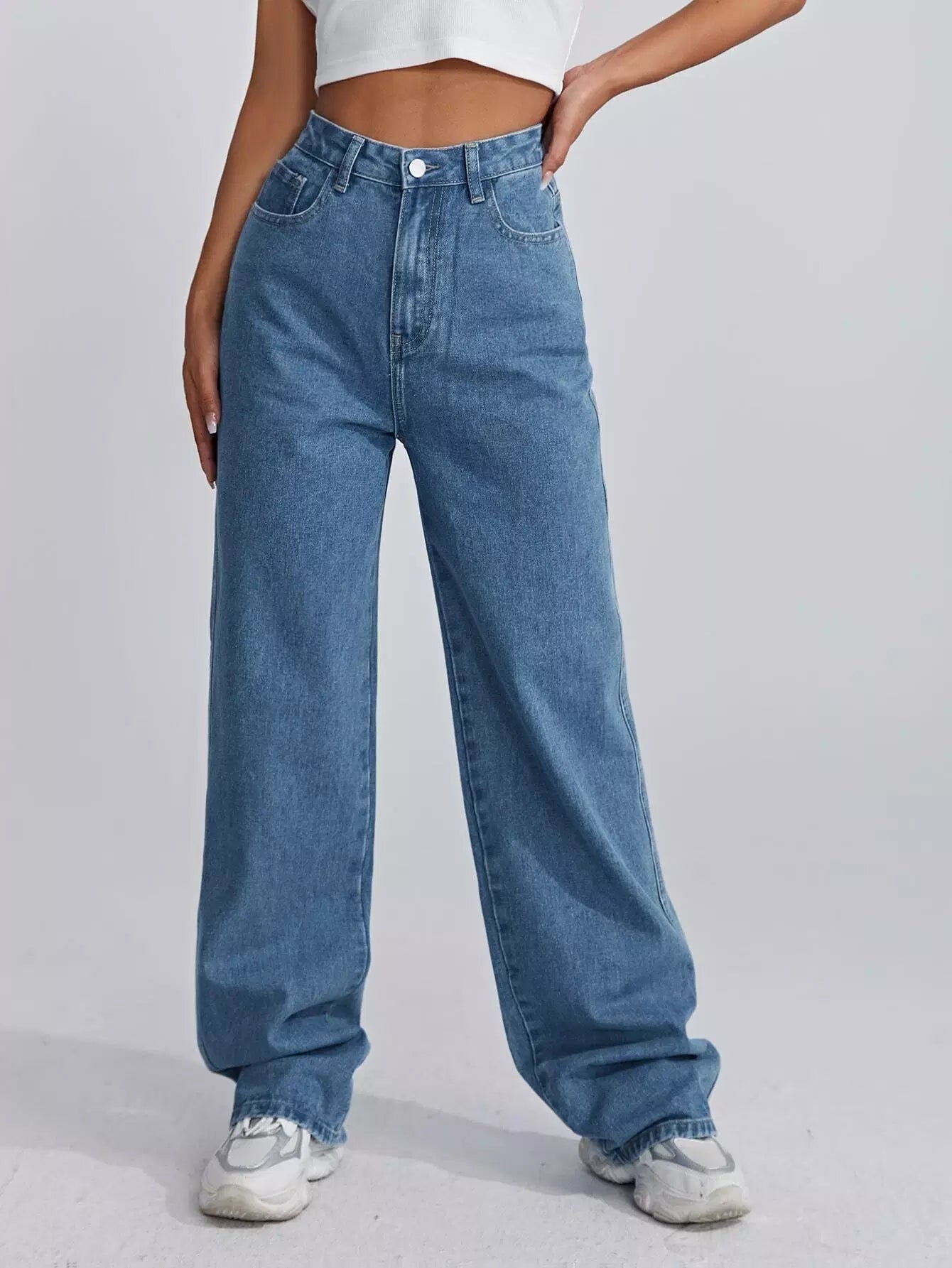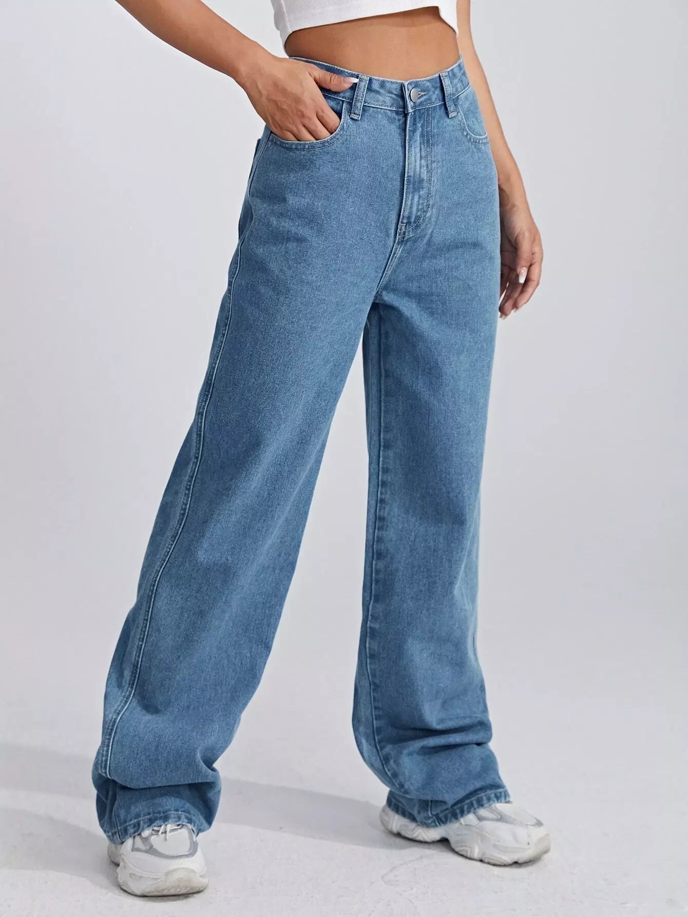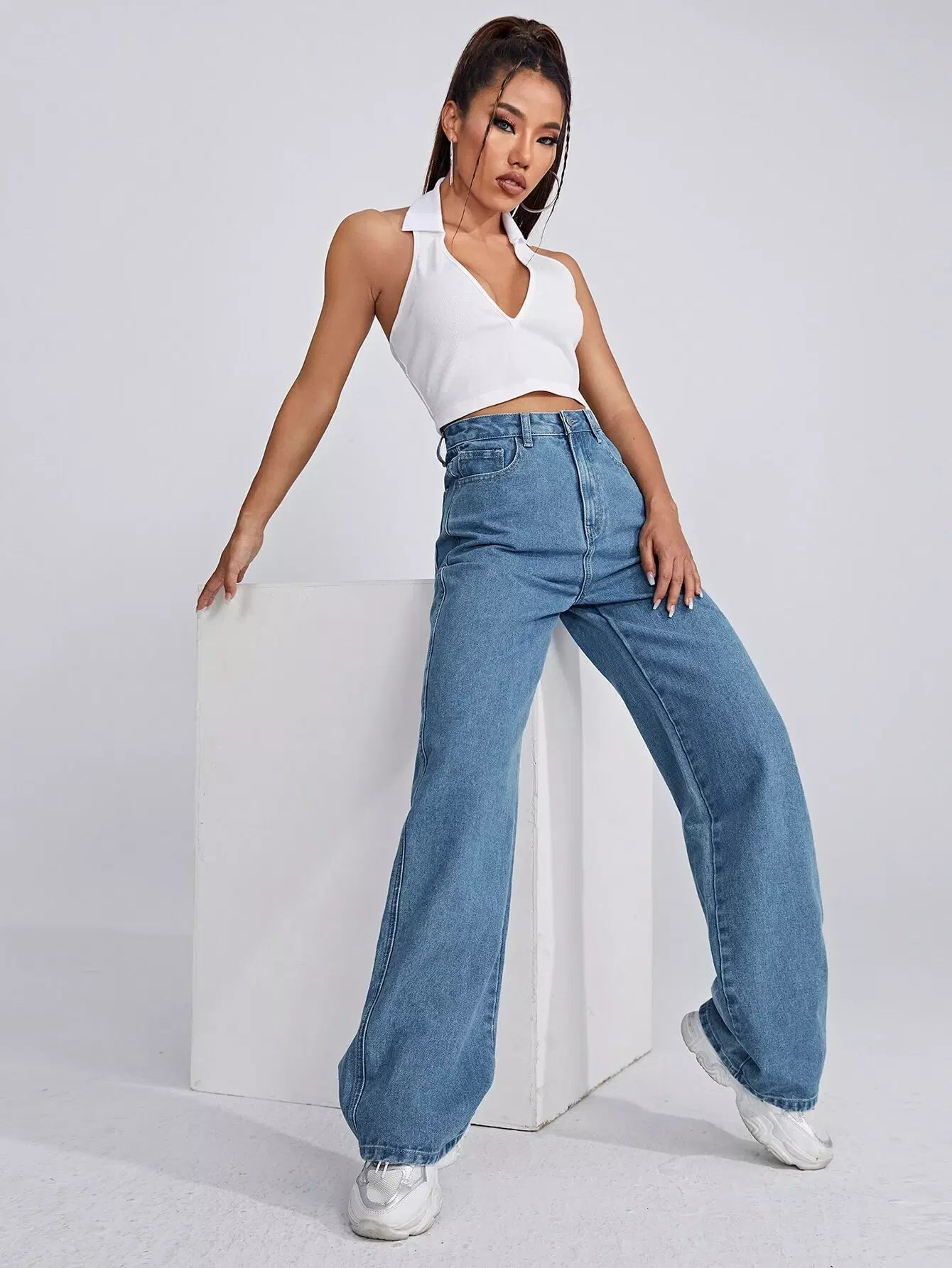 بنطلون جينز واسع الساقين عالي الخصر