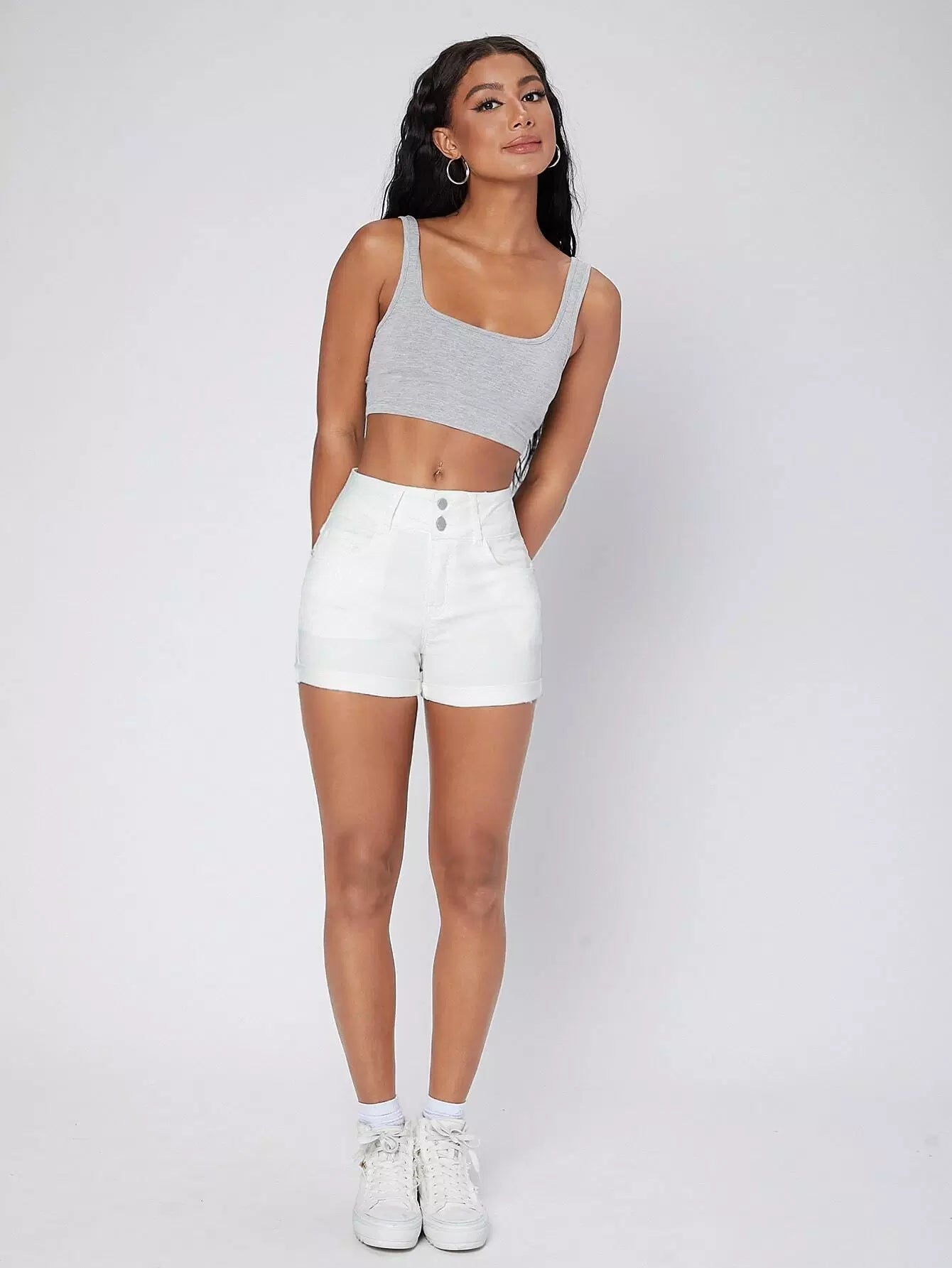 شورت دنيم ممزق ذو أكمام من الدنيم ذو تفاصيل ممزقة ومغسول بخصر خفيف