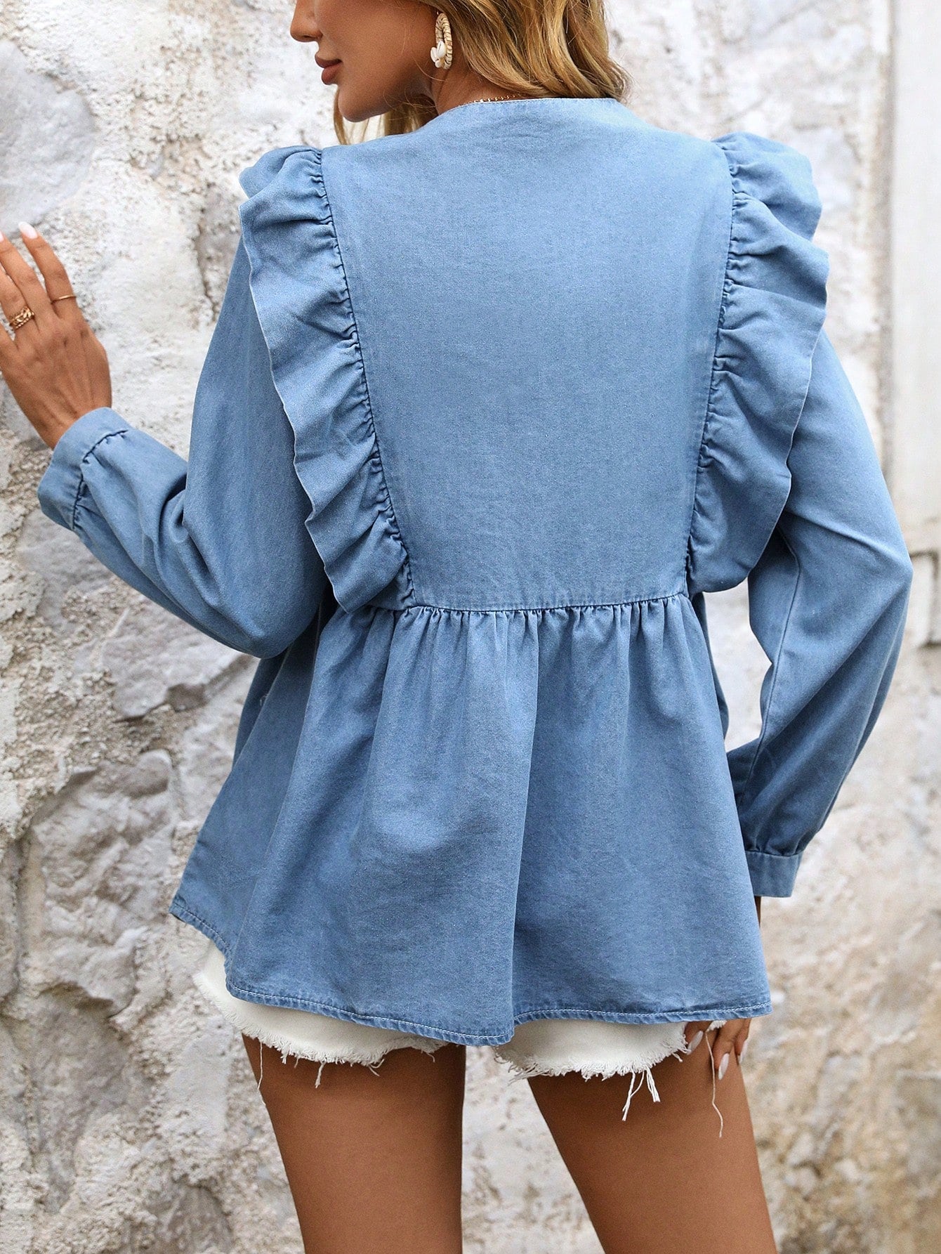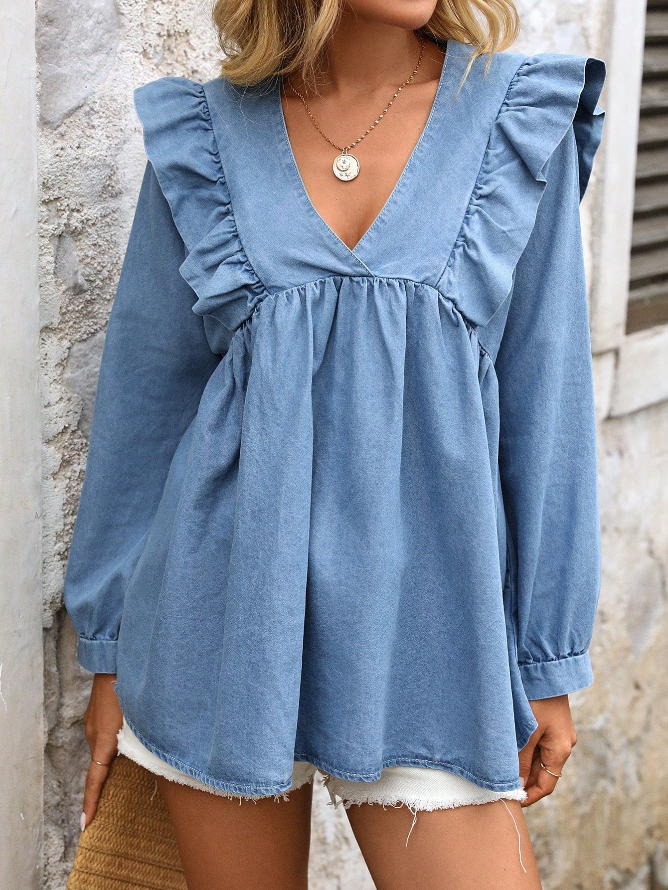 قميص LUNE النسائي من قماش الدنيم بتصميم دوللي، مناسب للأزياء اليومية غير الرسمية