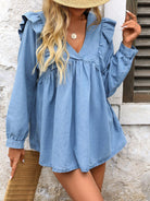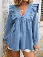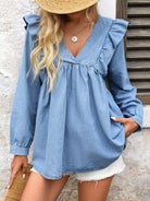 LUNE Women's Denim Dolly Style Shirt Top, Casual Everyday Fashion
