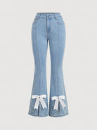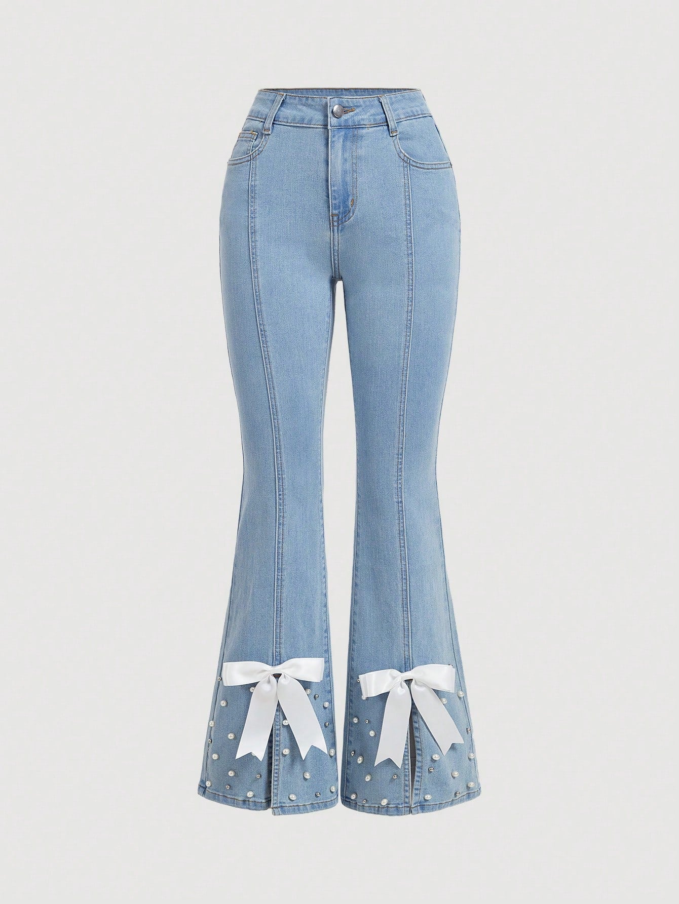 MOD Women Beaded Bow Decoration Split Flared Denim Jeans