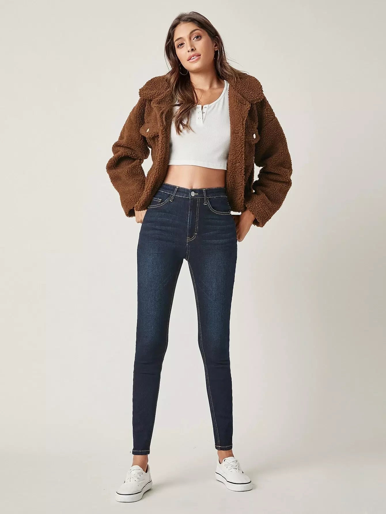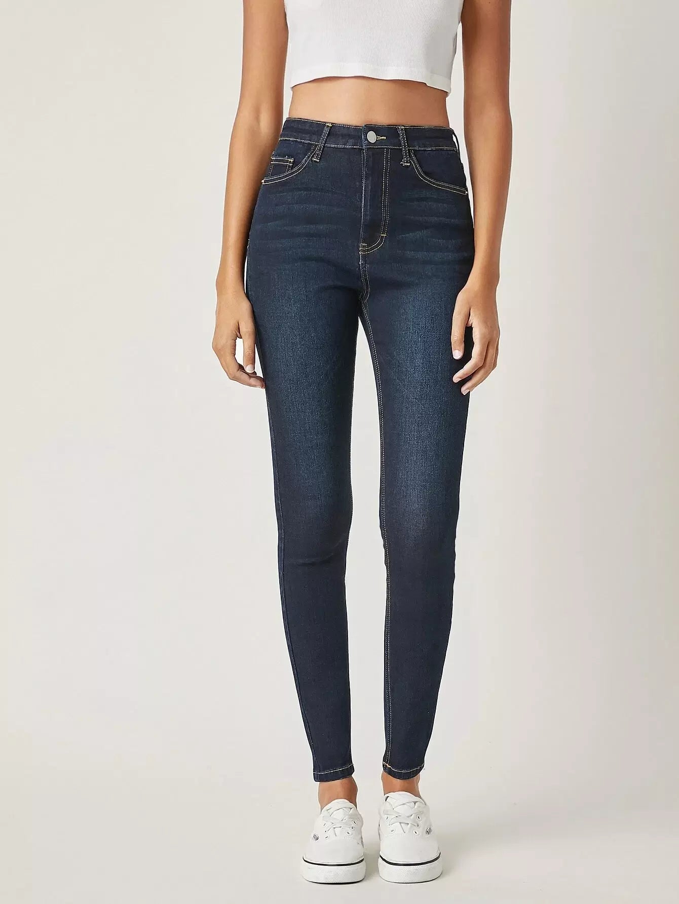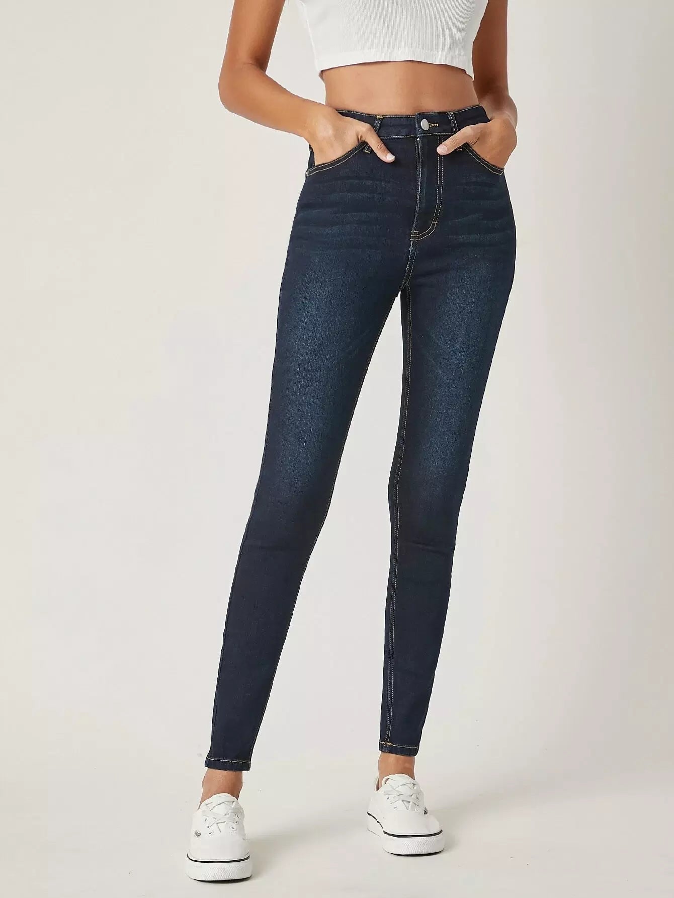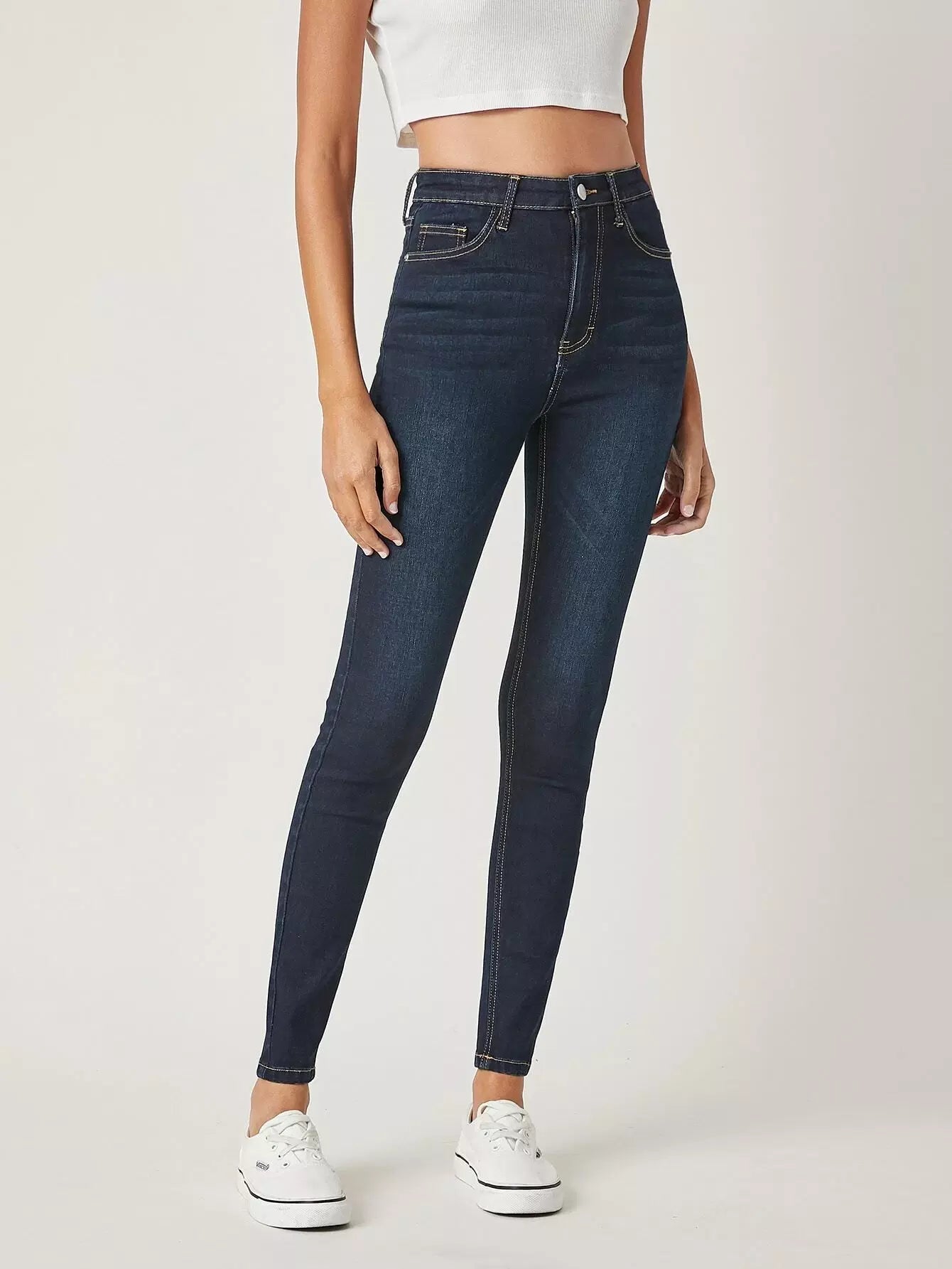 بنطلون جينز سكيني بخصر طبيعي ضيق