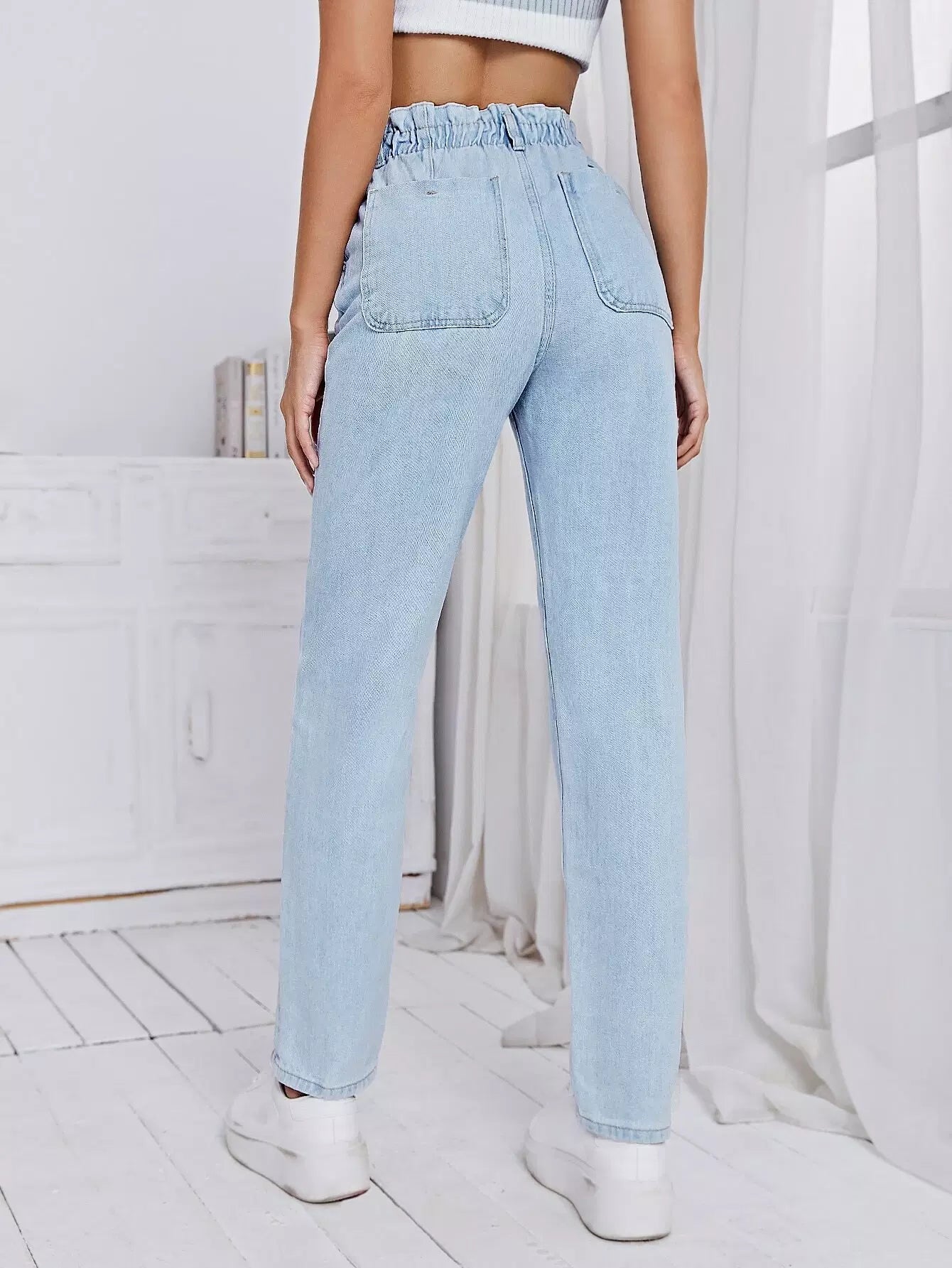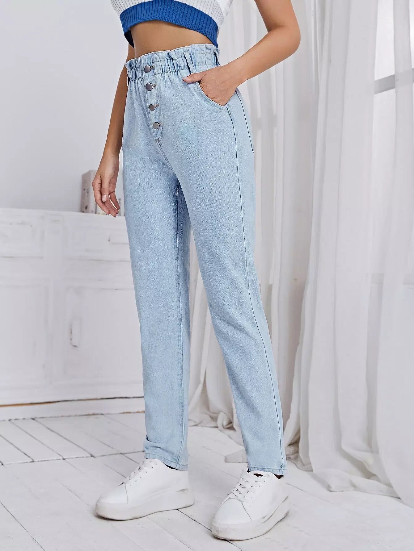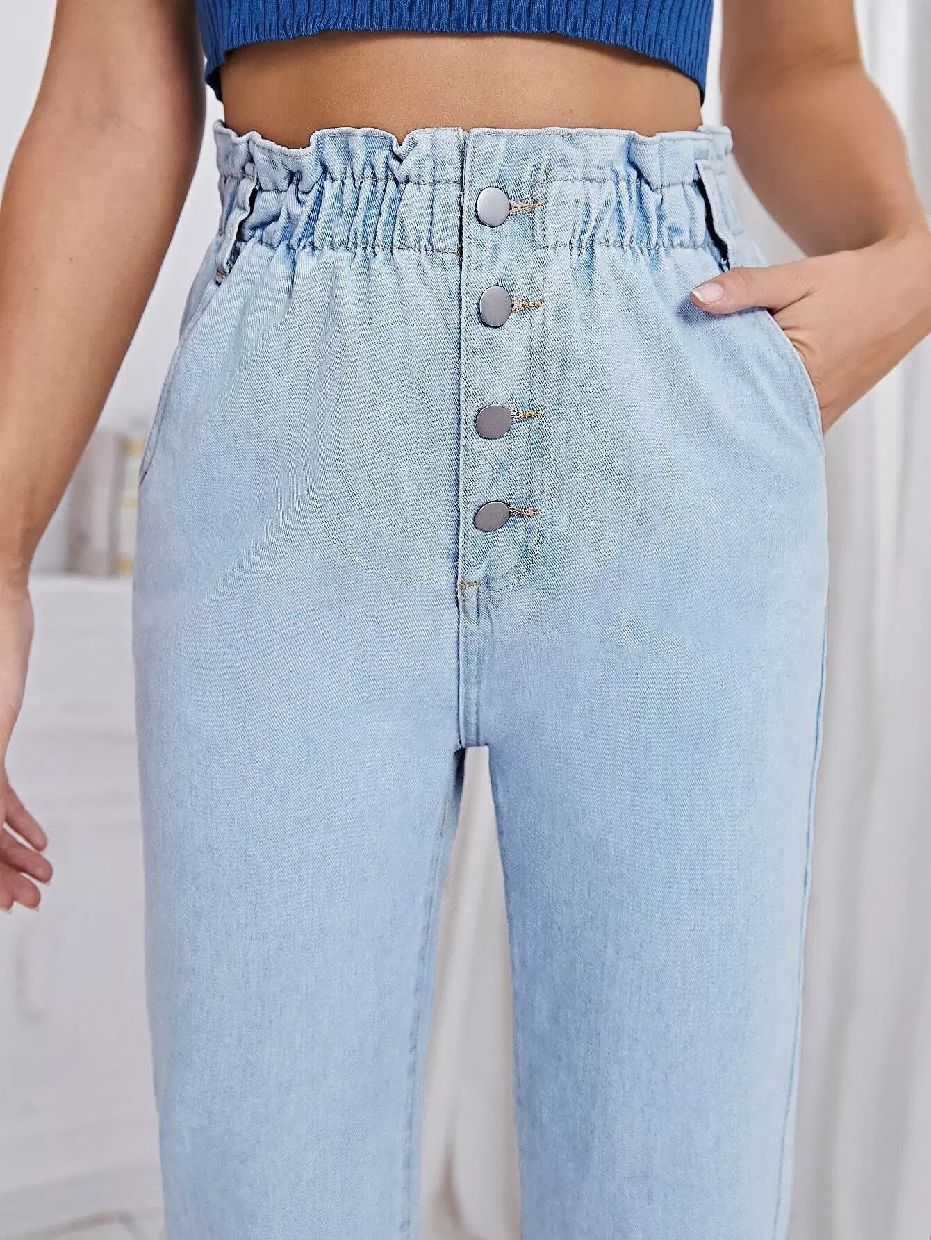 بنطلون جينز بأزرار على الخصر من الورق