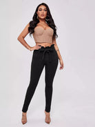 النساء - بنطال جينز سكيني بحزام على الخصر