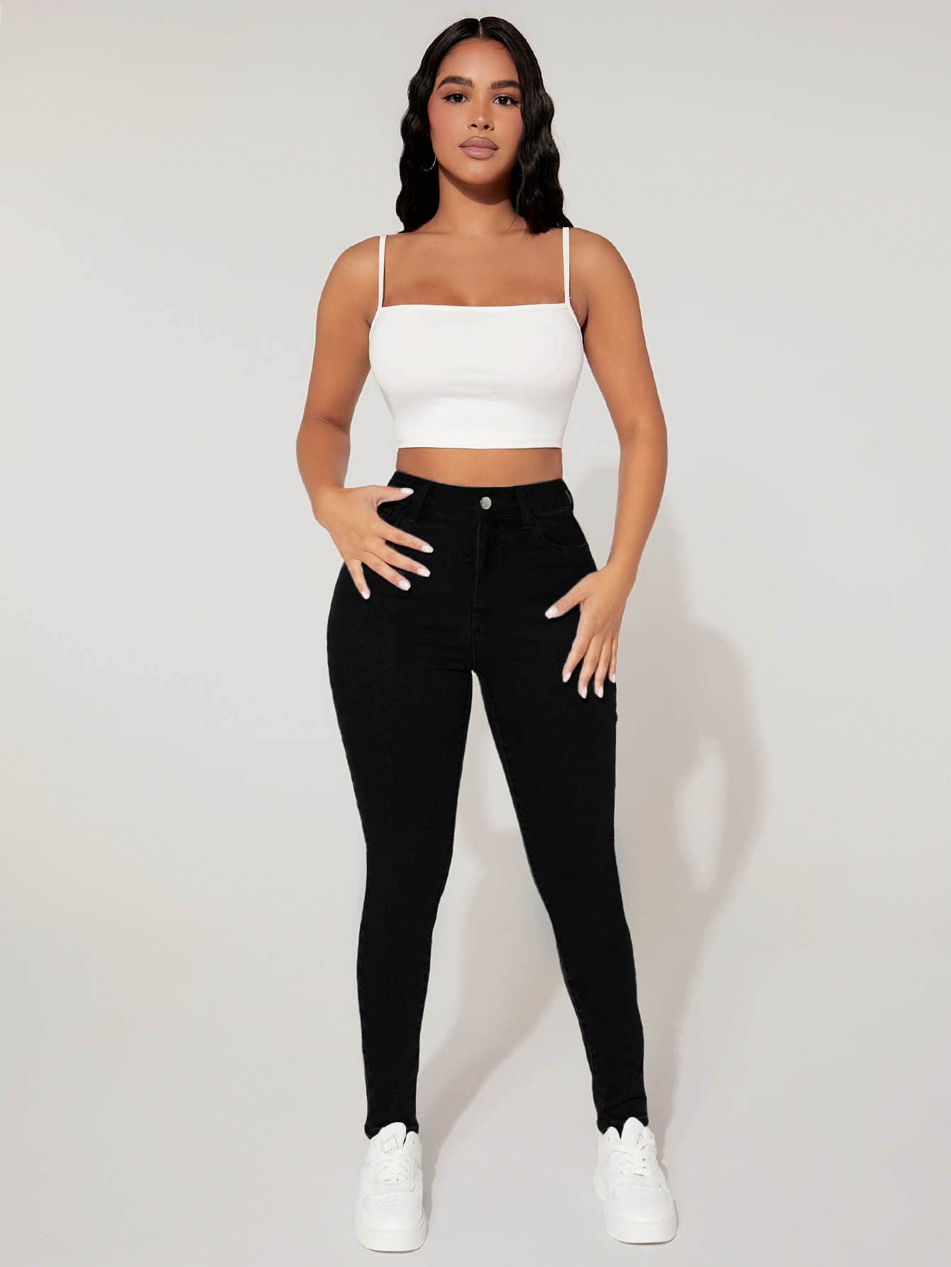 بنطلون جينز ضيق بخصر عالٍ مناسب لصاحبات القوام النحيف
