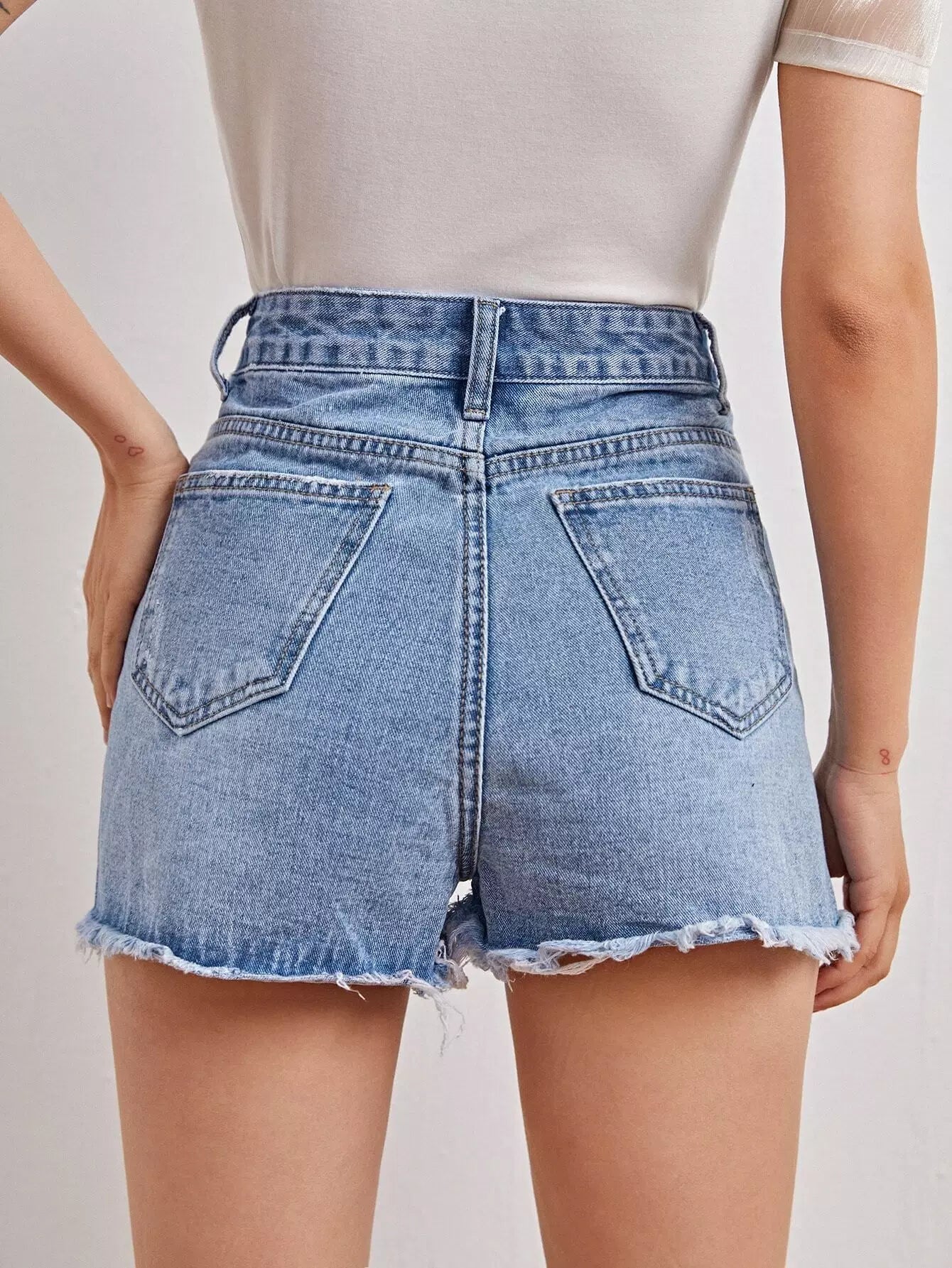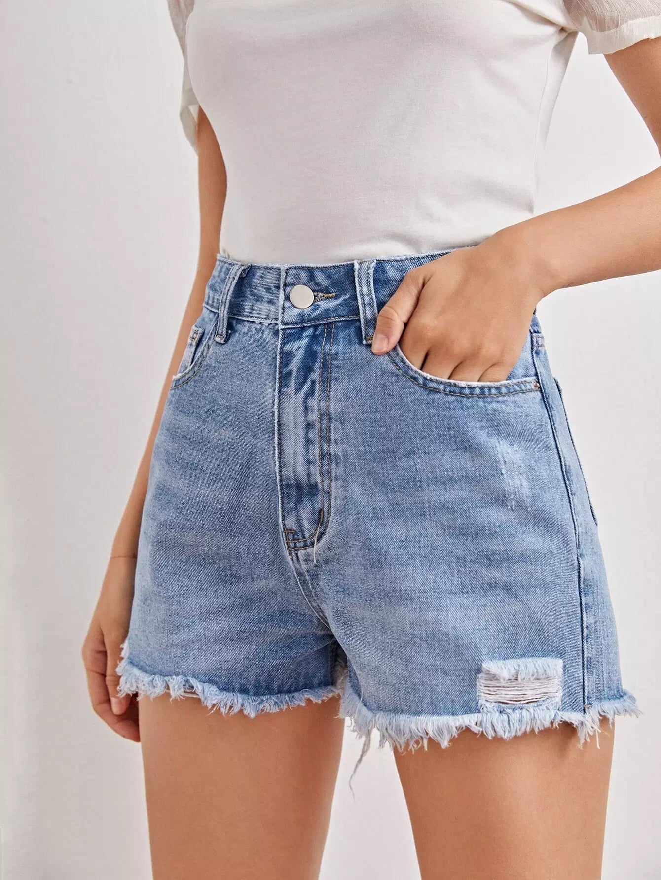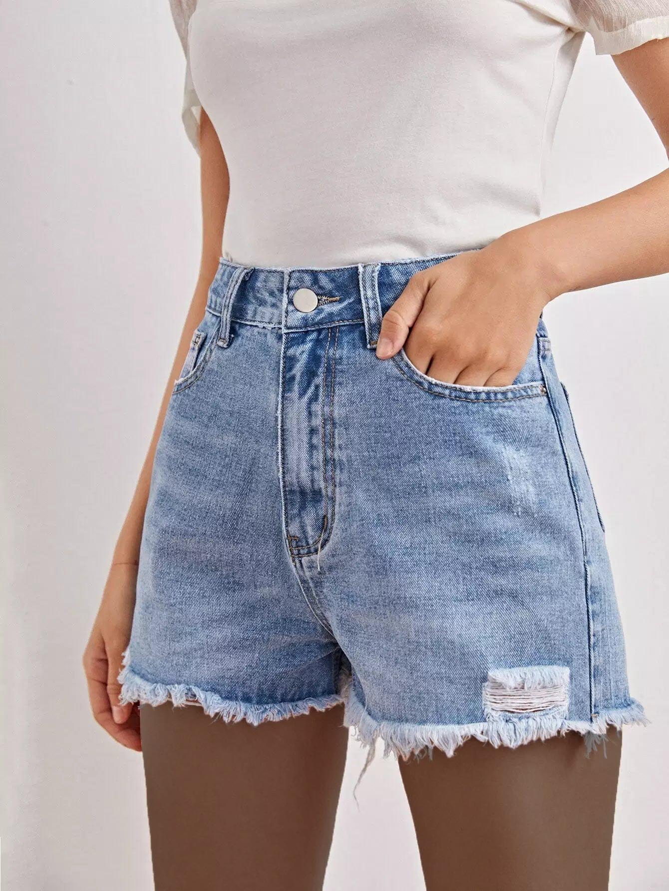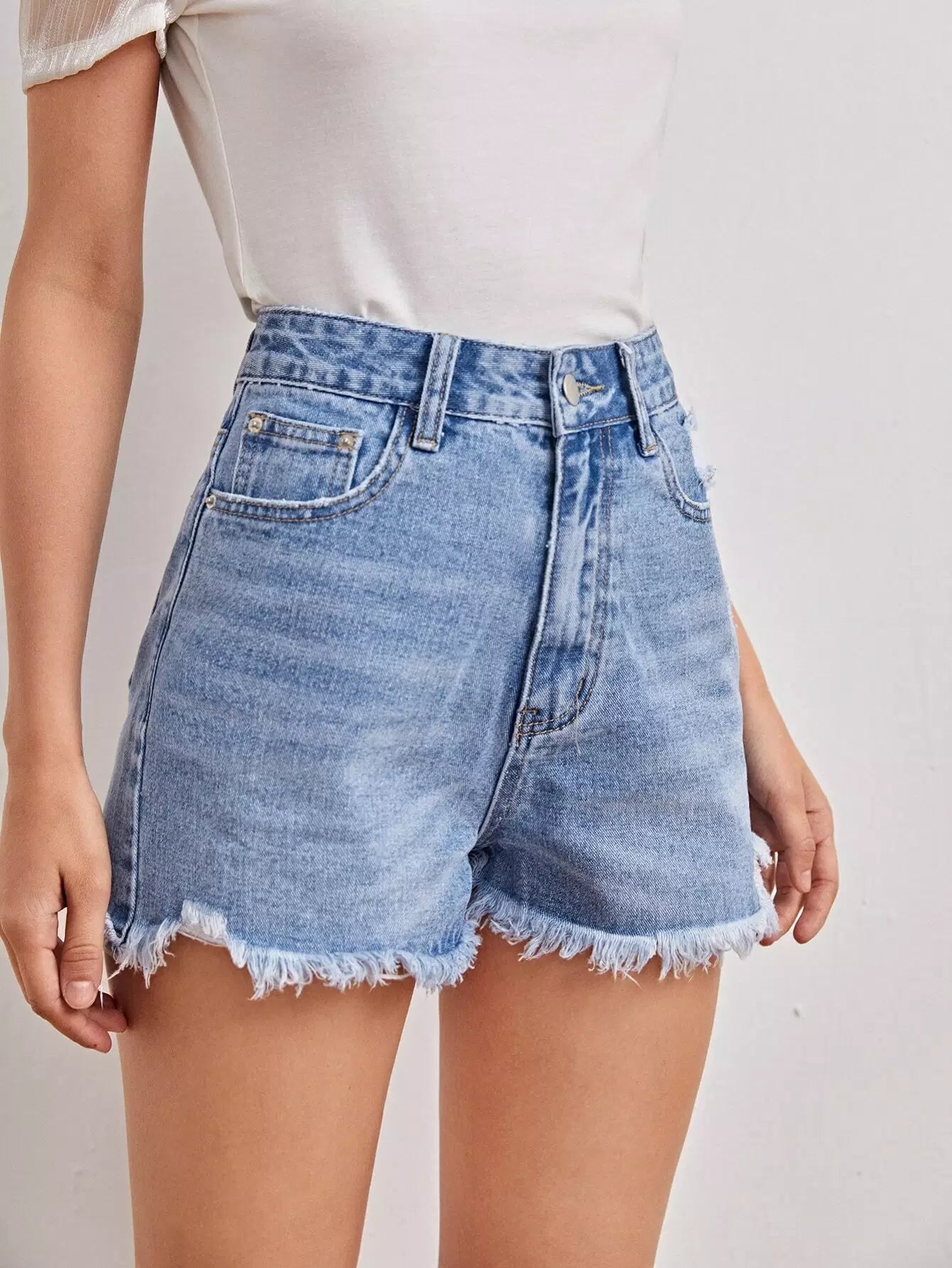 شورت جينز بحافة مائلة مائل بحاشية خام
