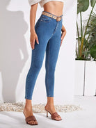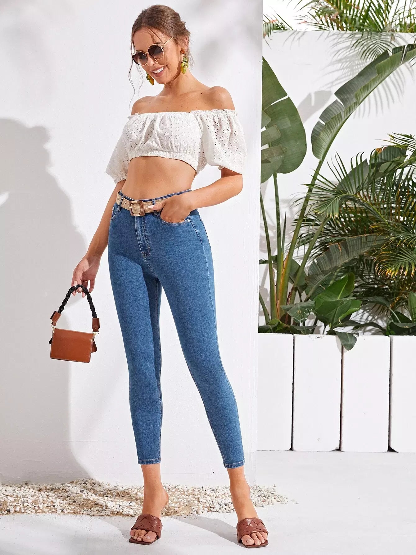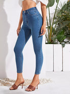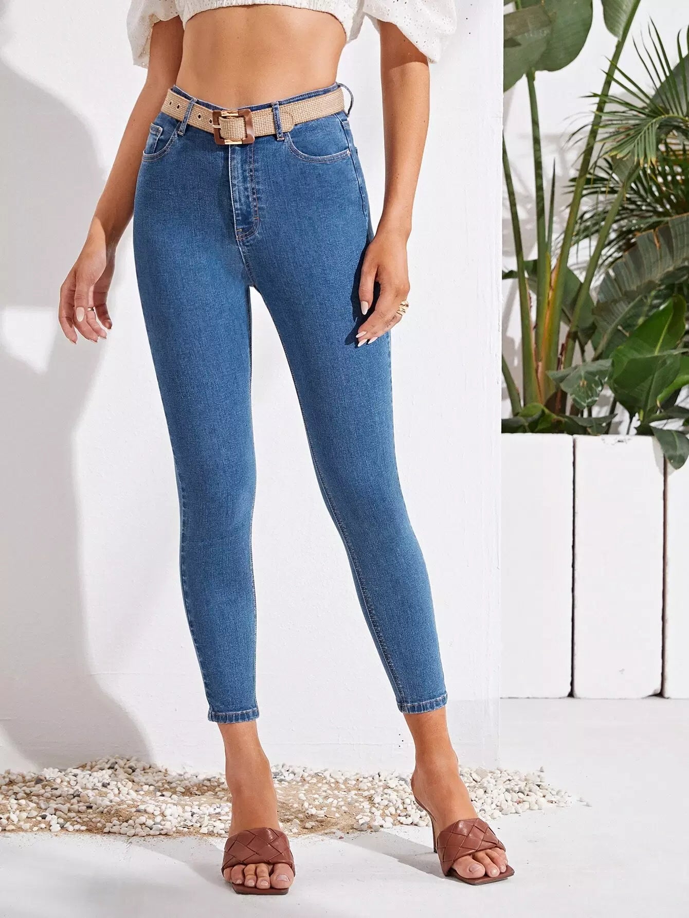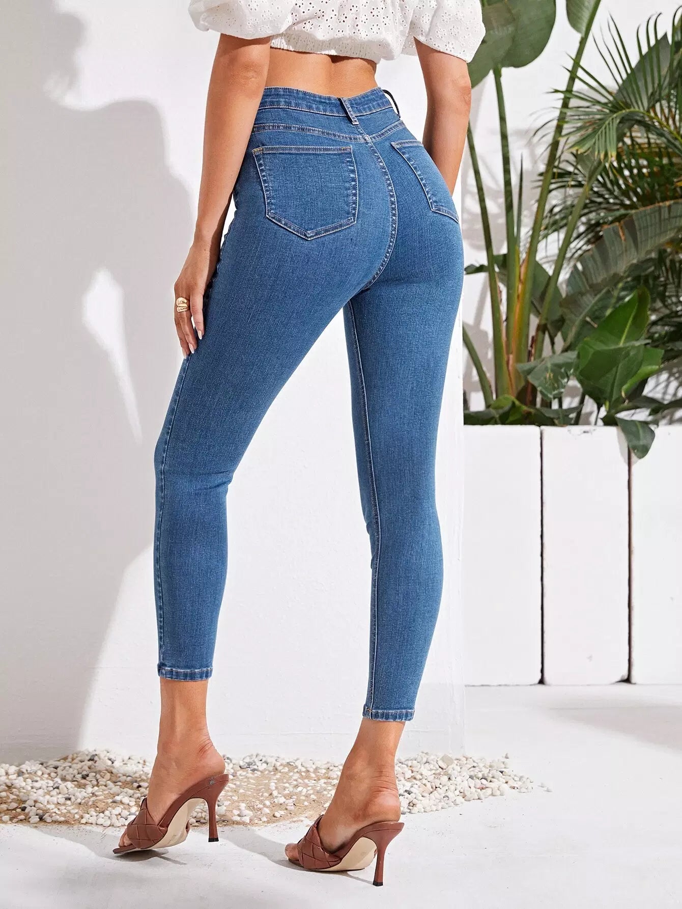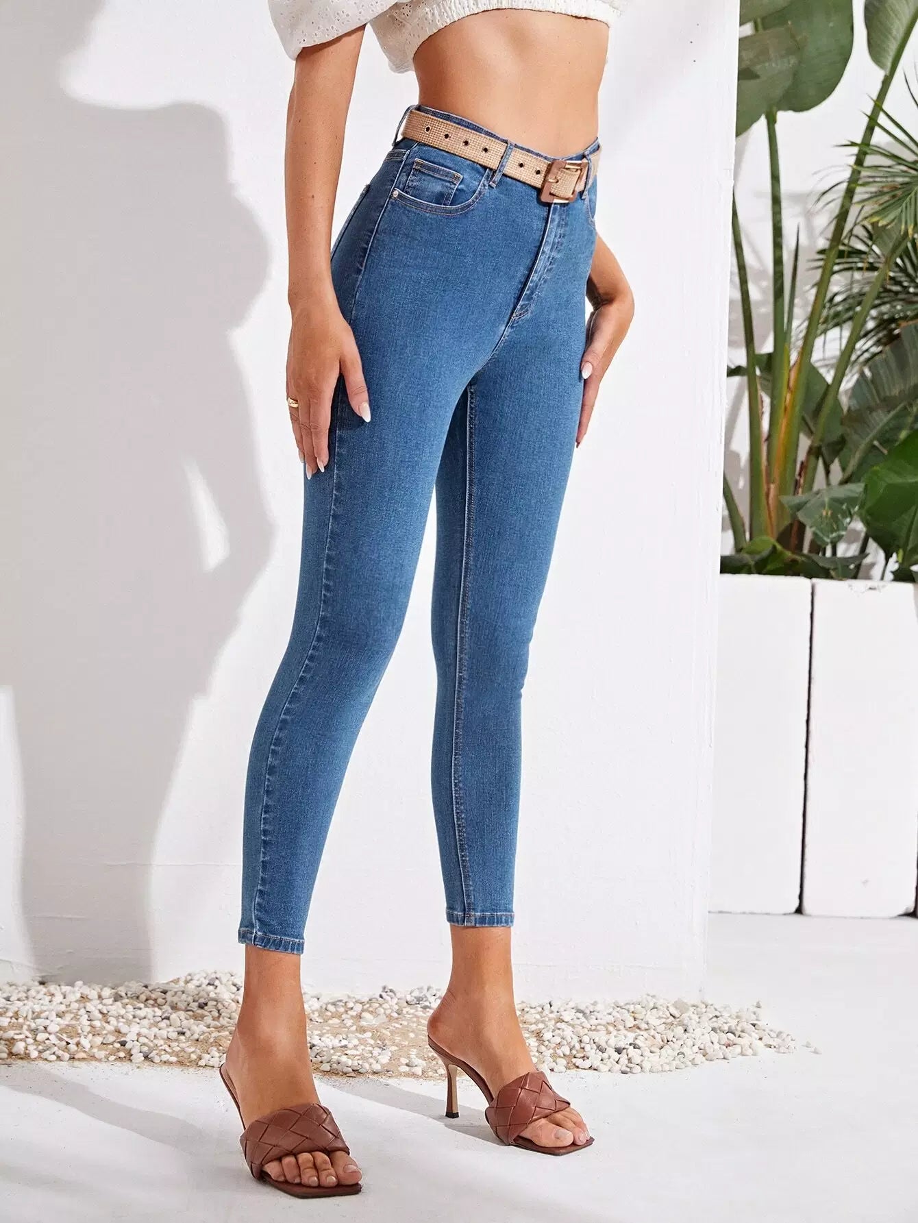 بنطلون جينز جينز جينز سكيني عادي عالي الخصر