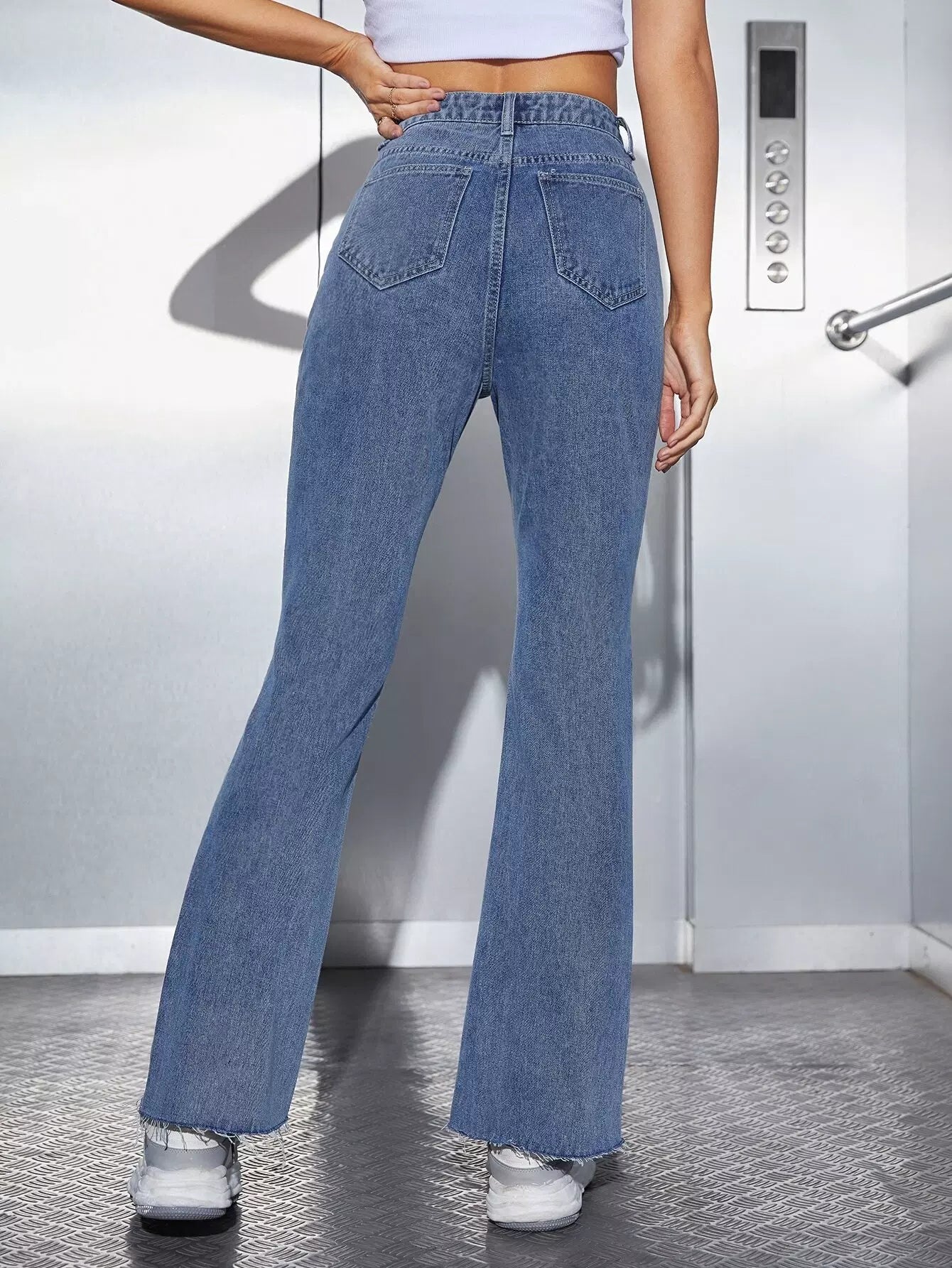 بنطلون جينز ممزق بقصّة خفيف الساقين ممزق