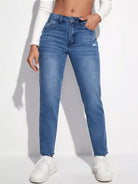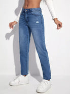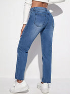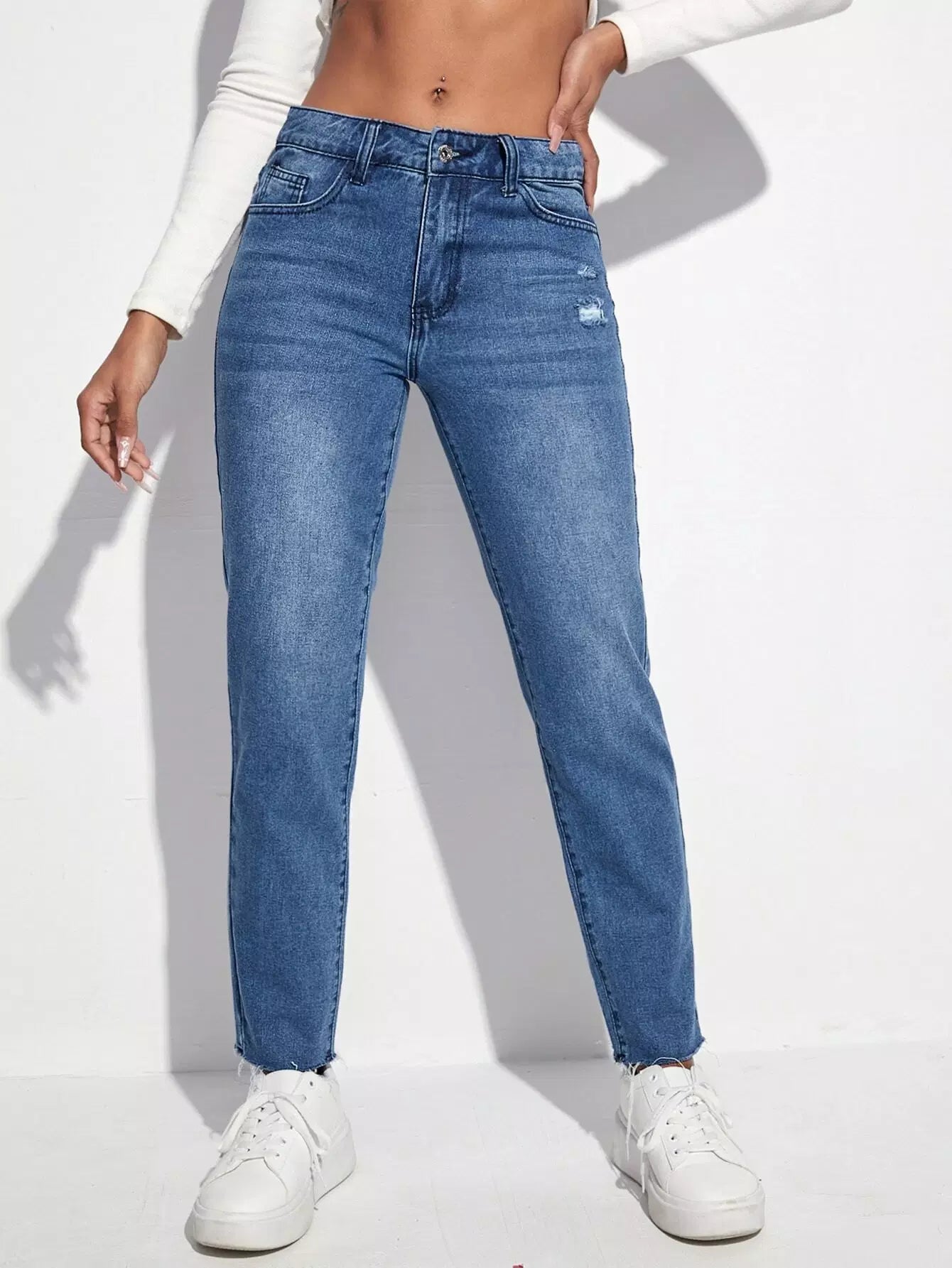 بنطلون جينز بقصّة Mom Fit ممزق وحاشية خام