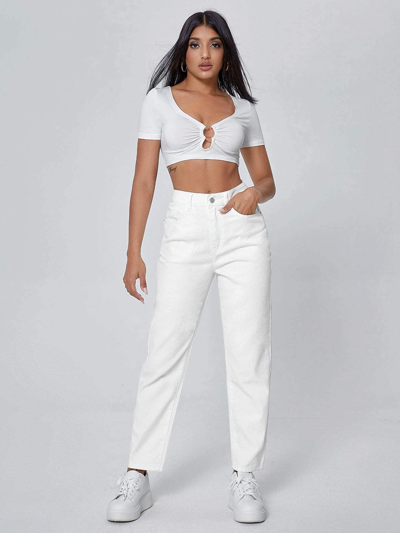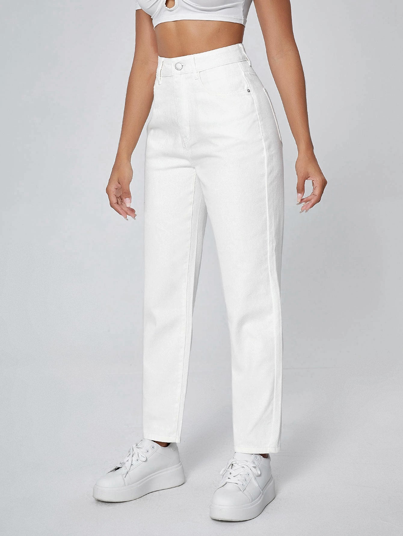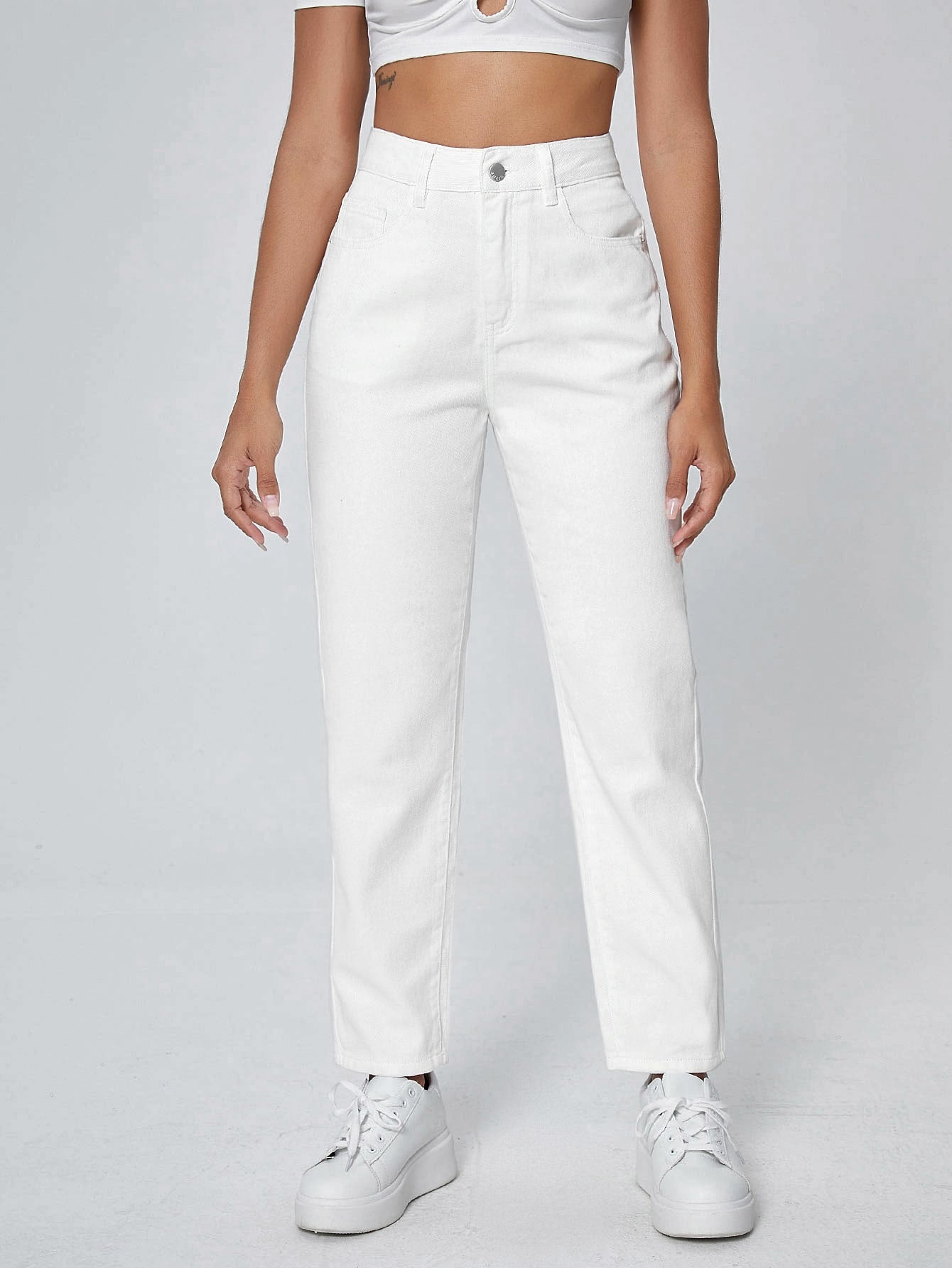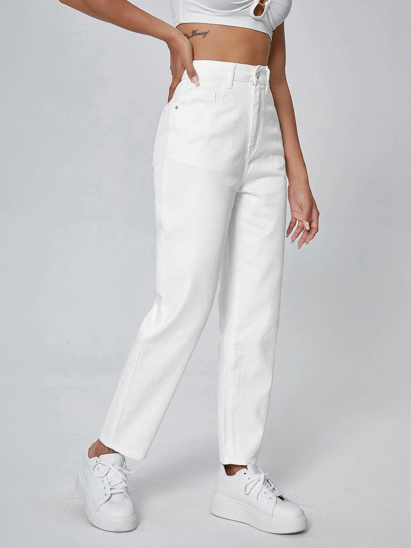 women SHEIN Essnce High Waist Straight Leg Jeans