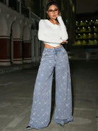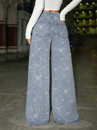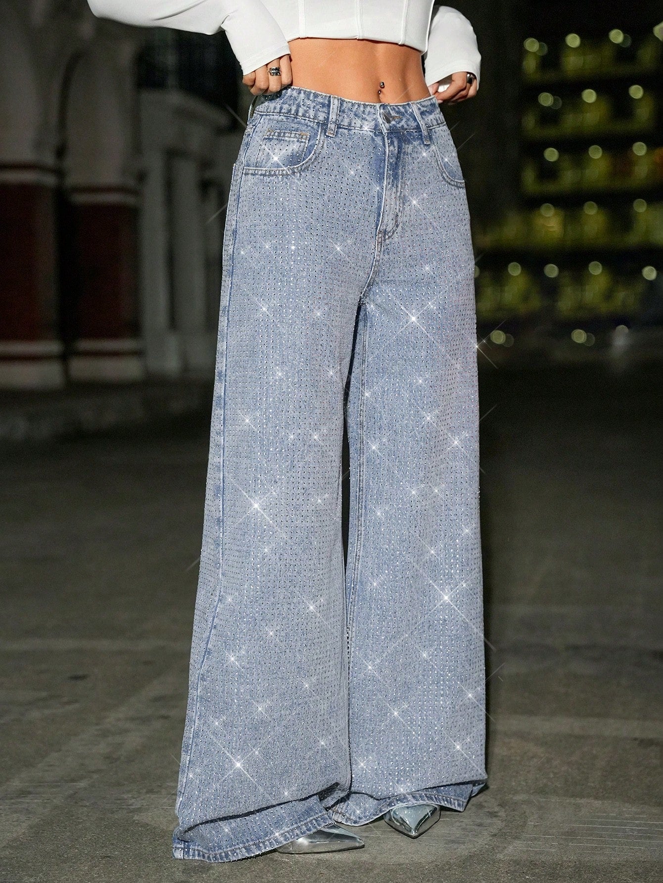 women SHEIN ICON Women's Front Button Pocket Minimalist Casual Low Waist Rhinestone Studded Y2K Valentine's Day Glitter Sparkly Sequin Baggy Women Jeans Concert Women