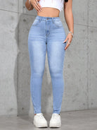 women SHEIN PETITE Women's Pocketed Skinny Casual Versatile Jeans