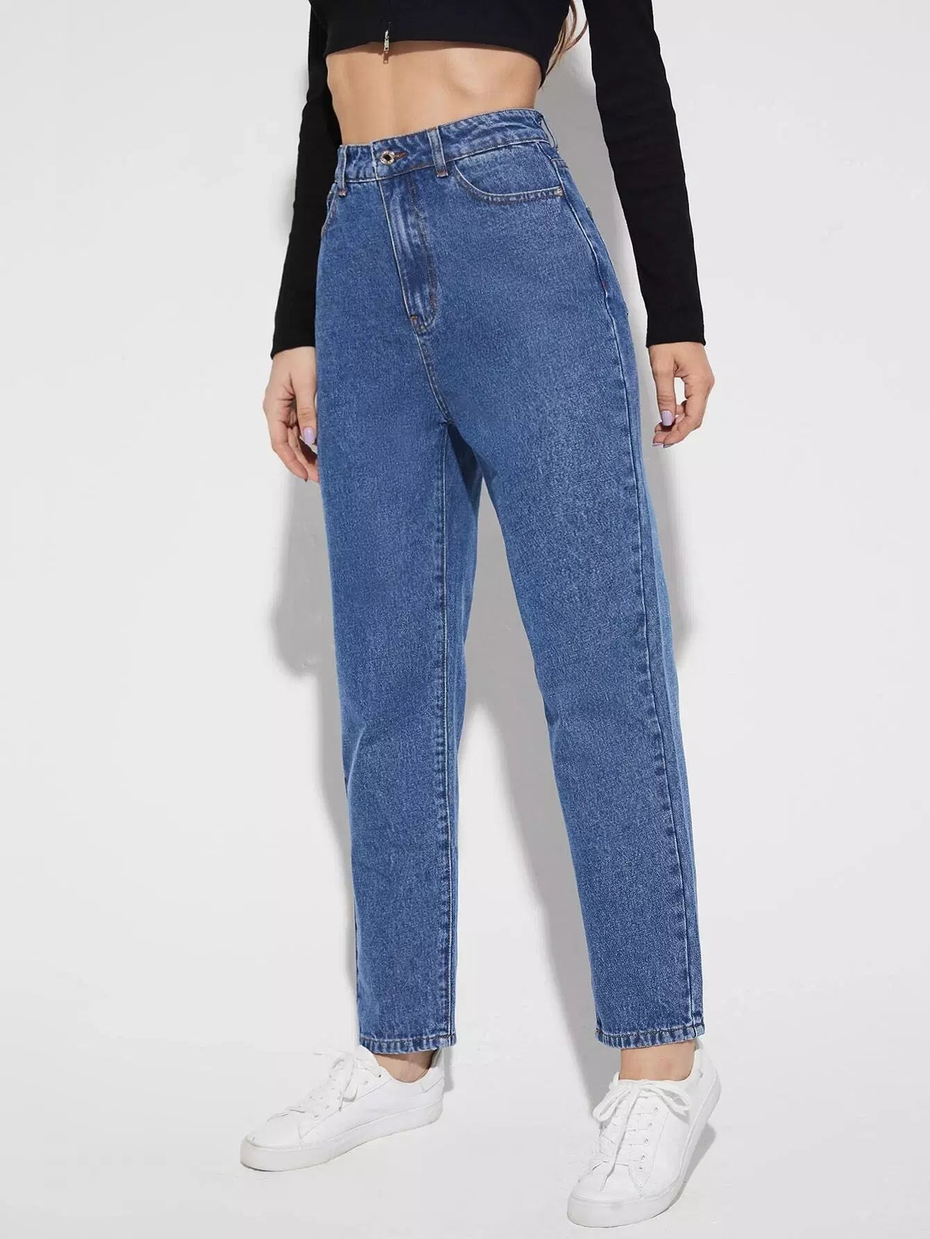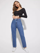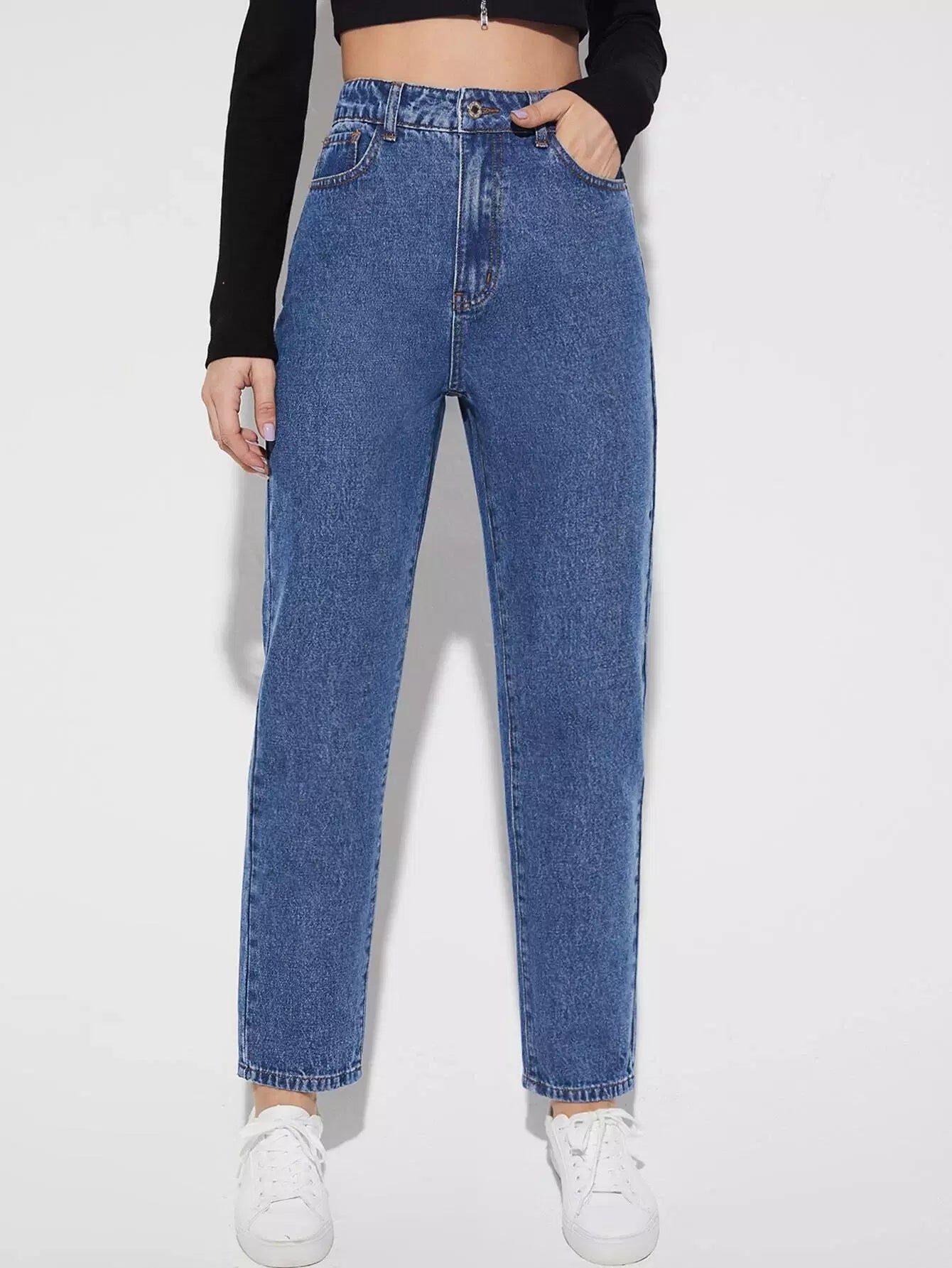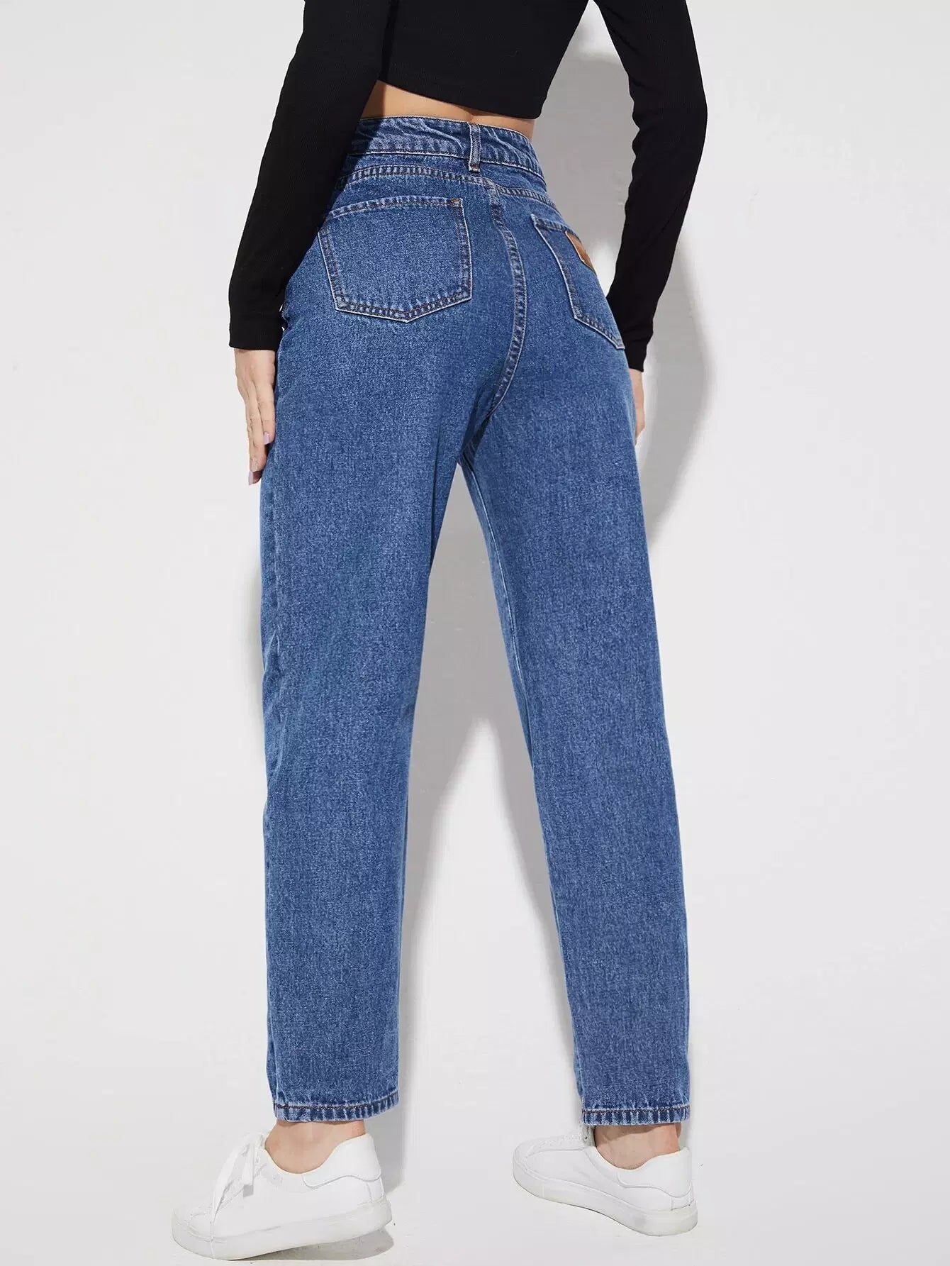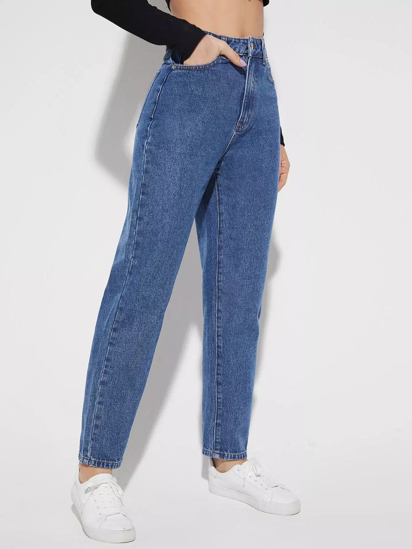 للنساء - بنطال جينز أمي عالي الخصر بجيوب مائلة