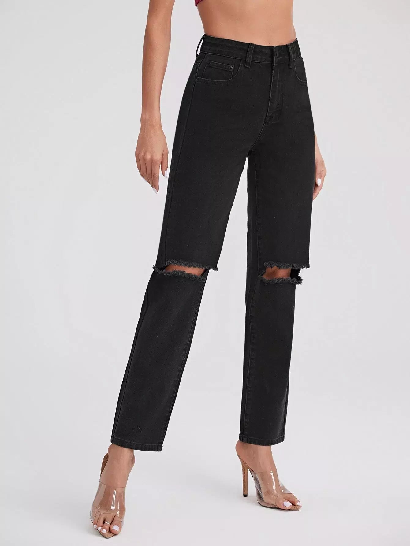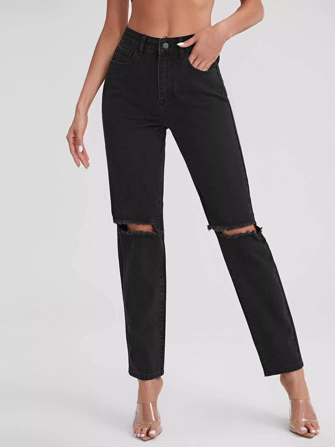 بنطال جينز ممزق بجيوب مائلة