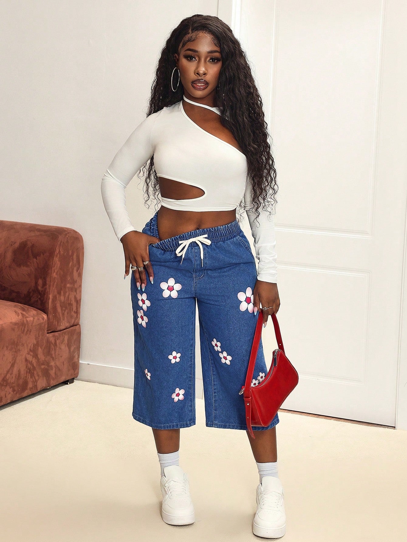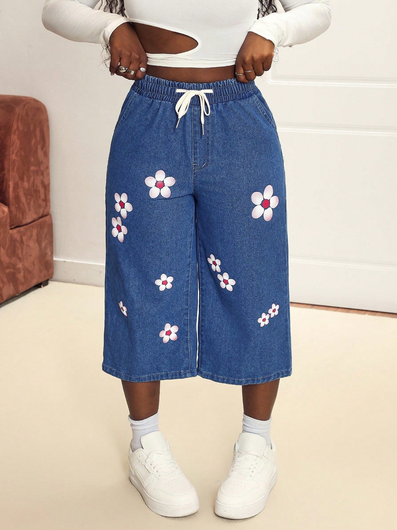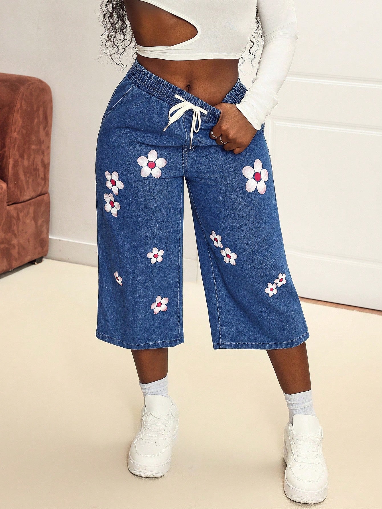 Slayr Women's Cute Printed Loose Straight-Leg Capri Jeans, Casual Pants