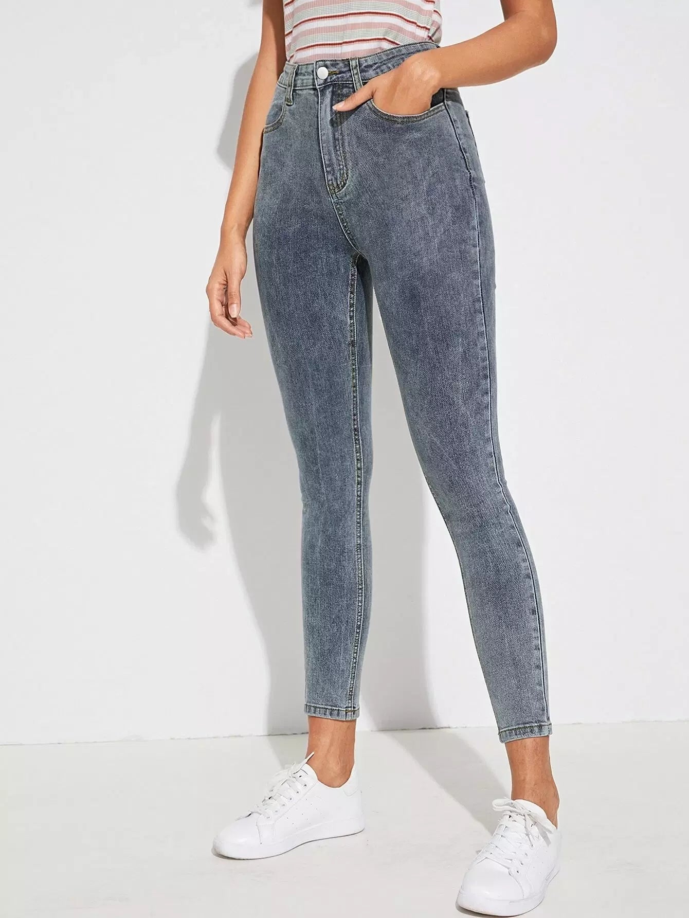 بنطلون جينز جينز سكيني قصير قصير مغسول بالثلج