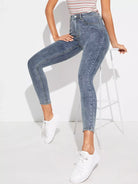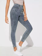 النساء - بنطال جينز سكيني قصير مغسول بالثلج