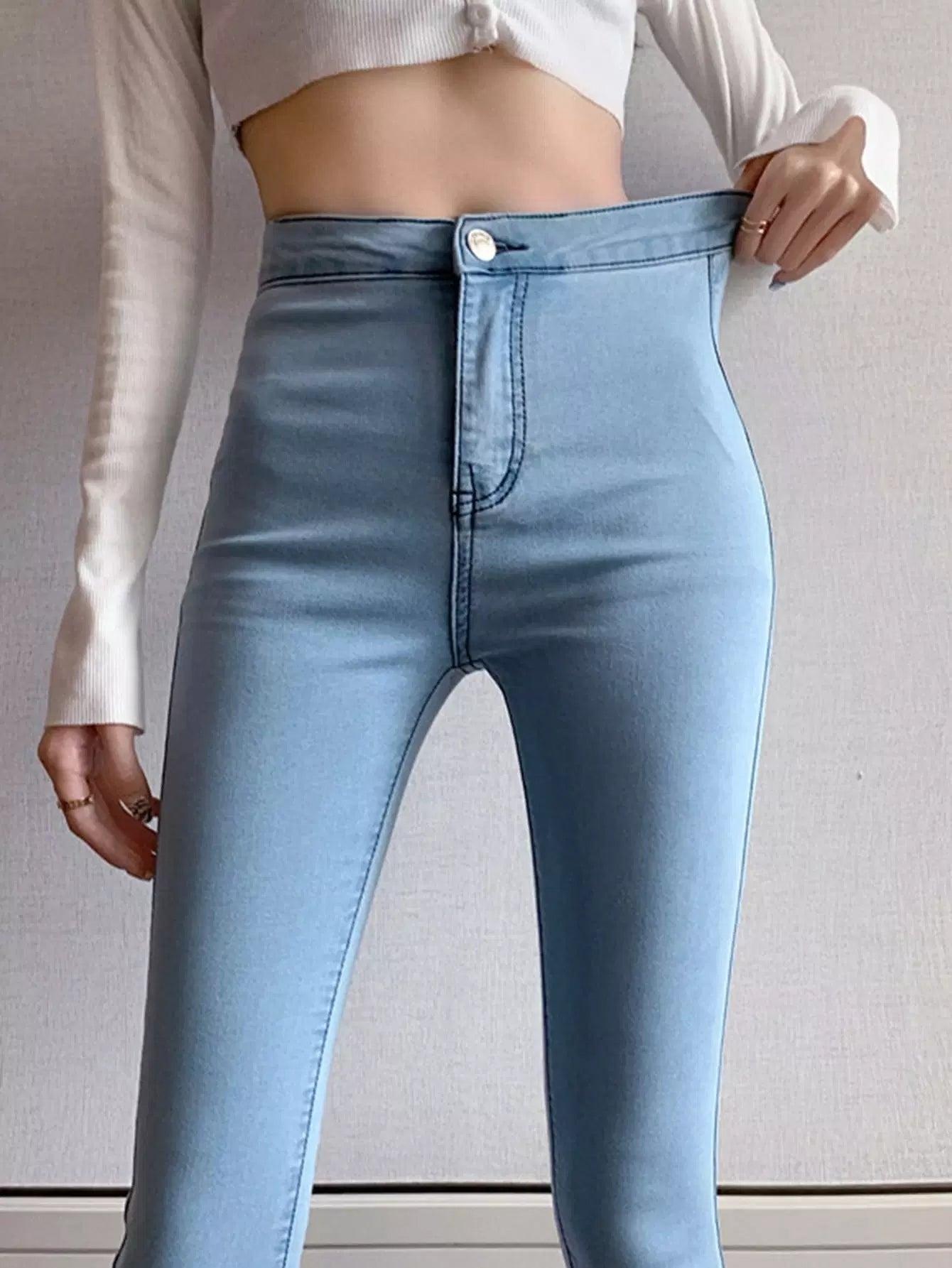 بنطلون جينز سادة سكيني ضيق قصير