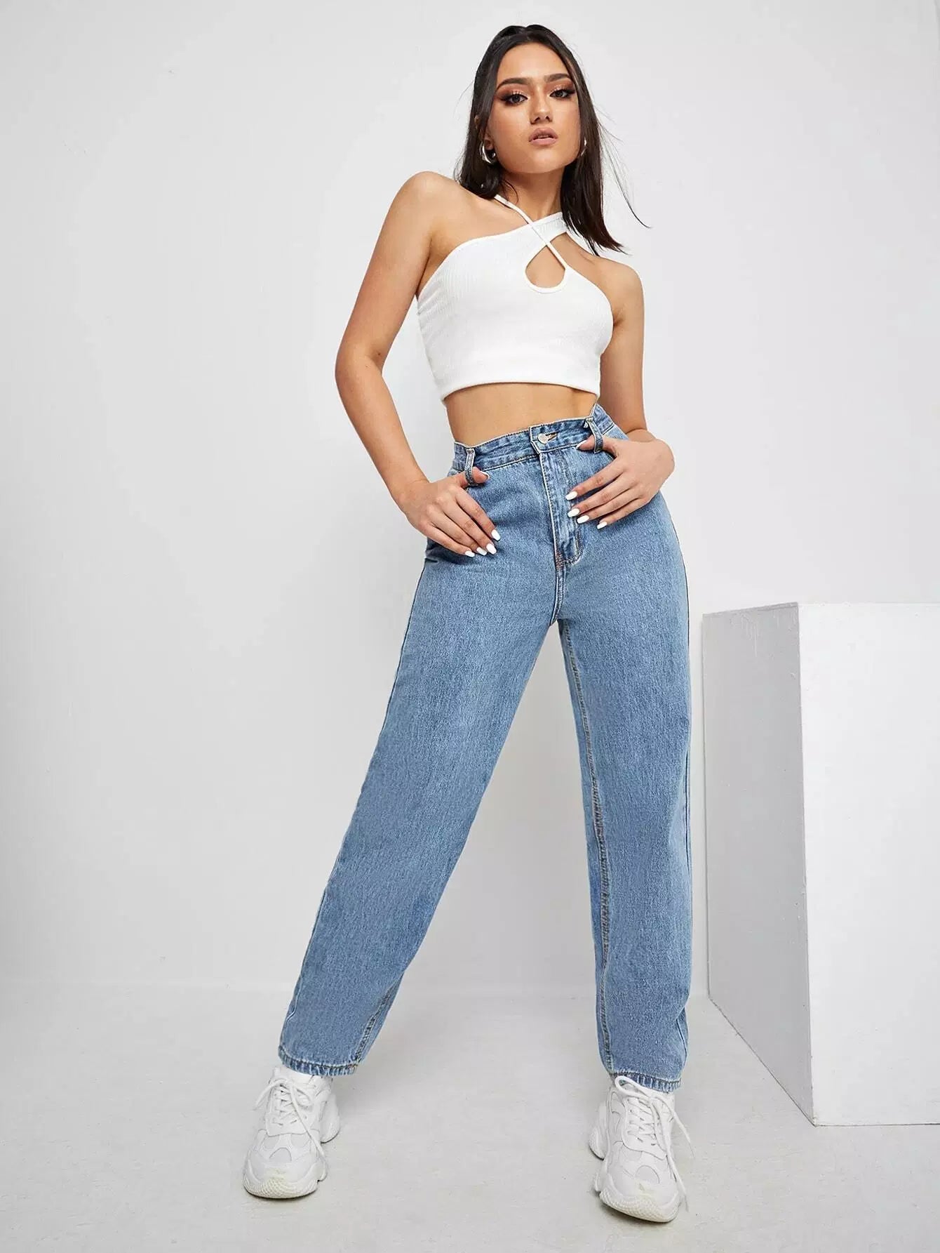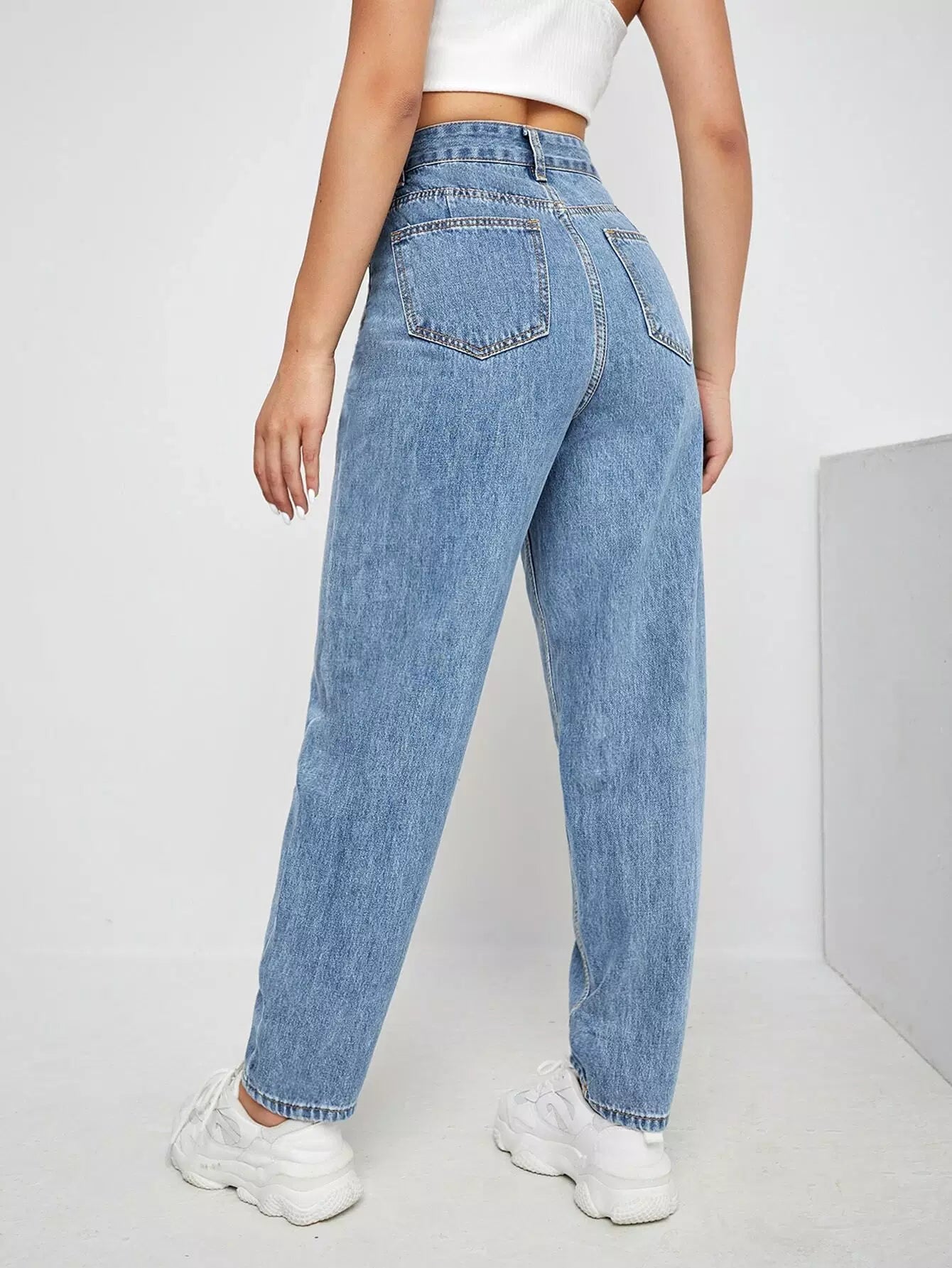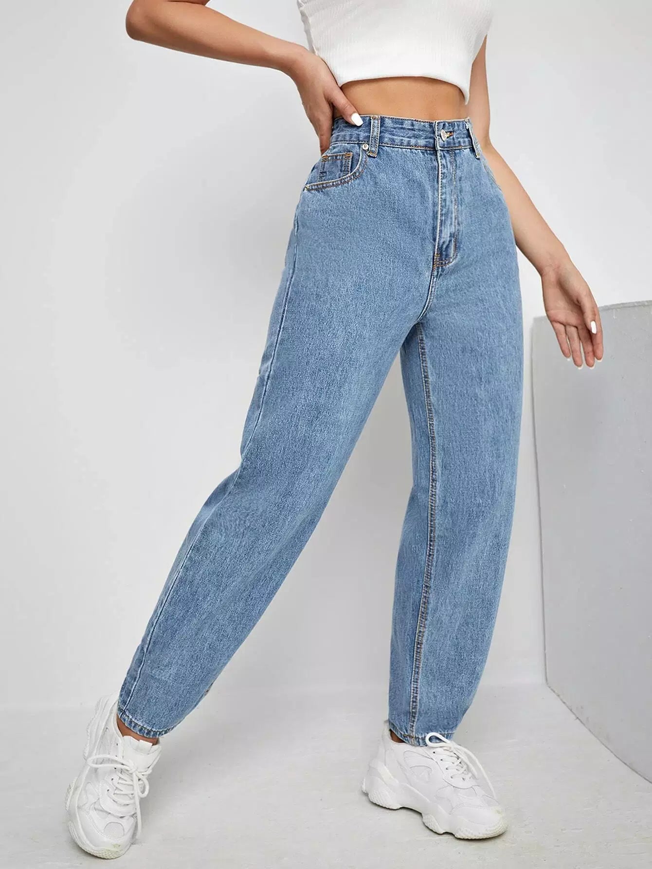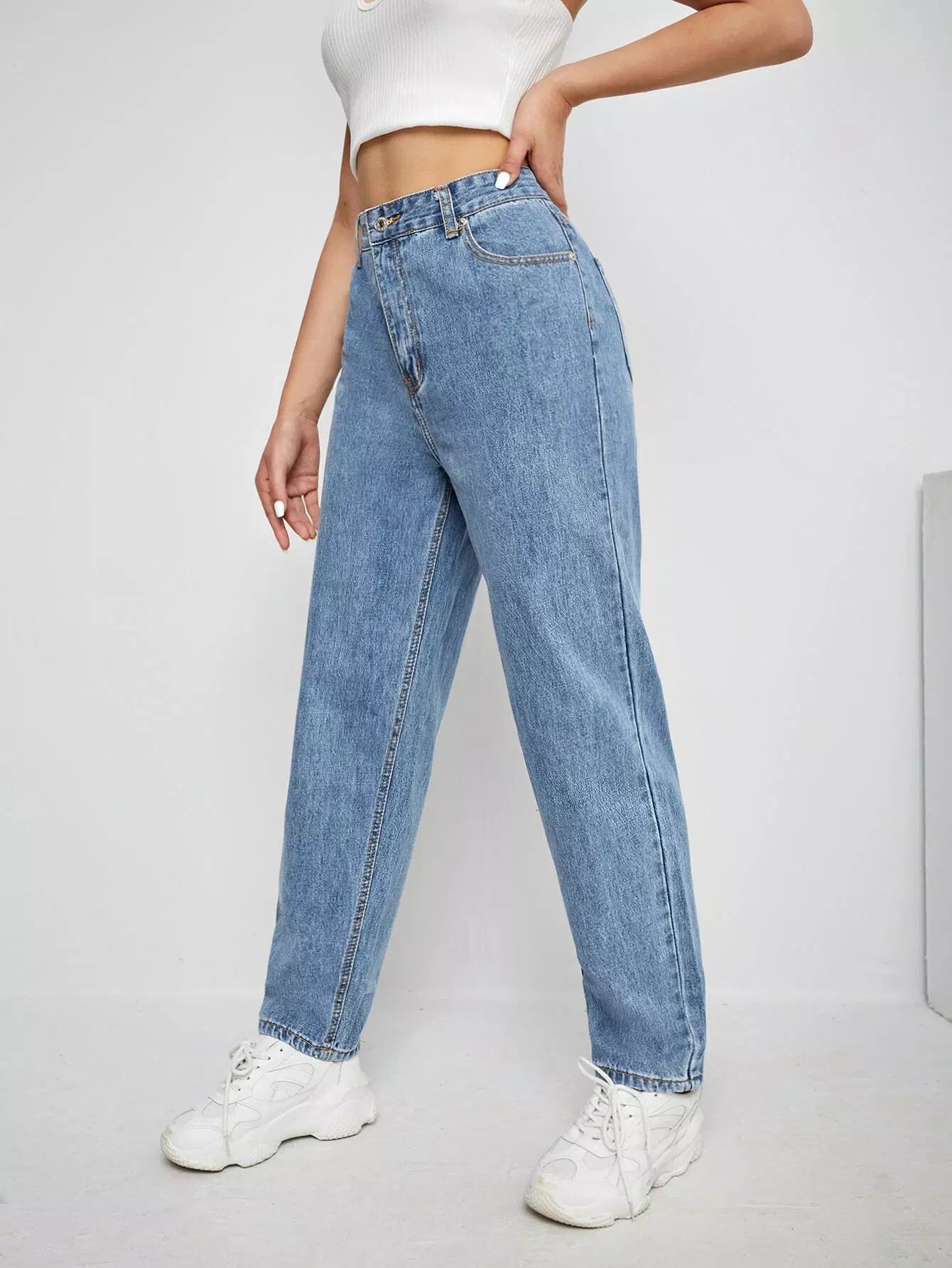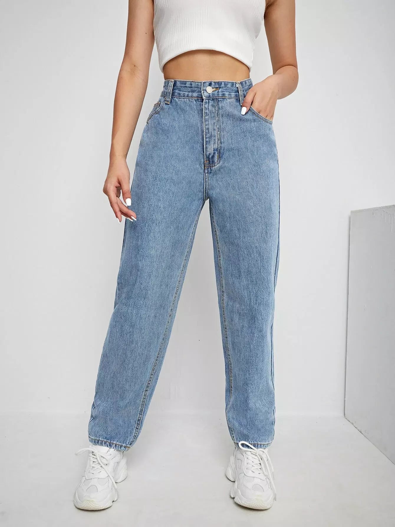 بنطلون جينز سادة بساق مستقيمة مغسول