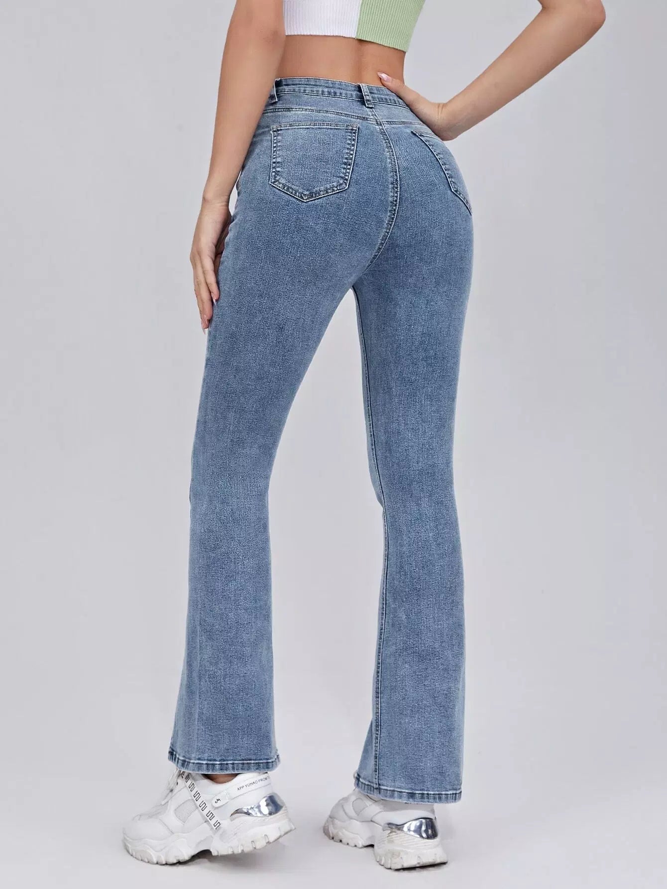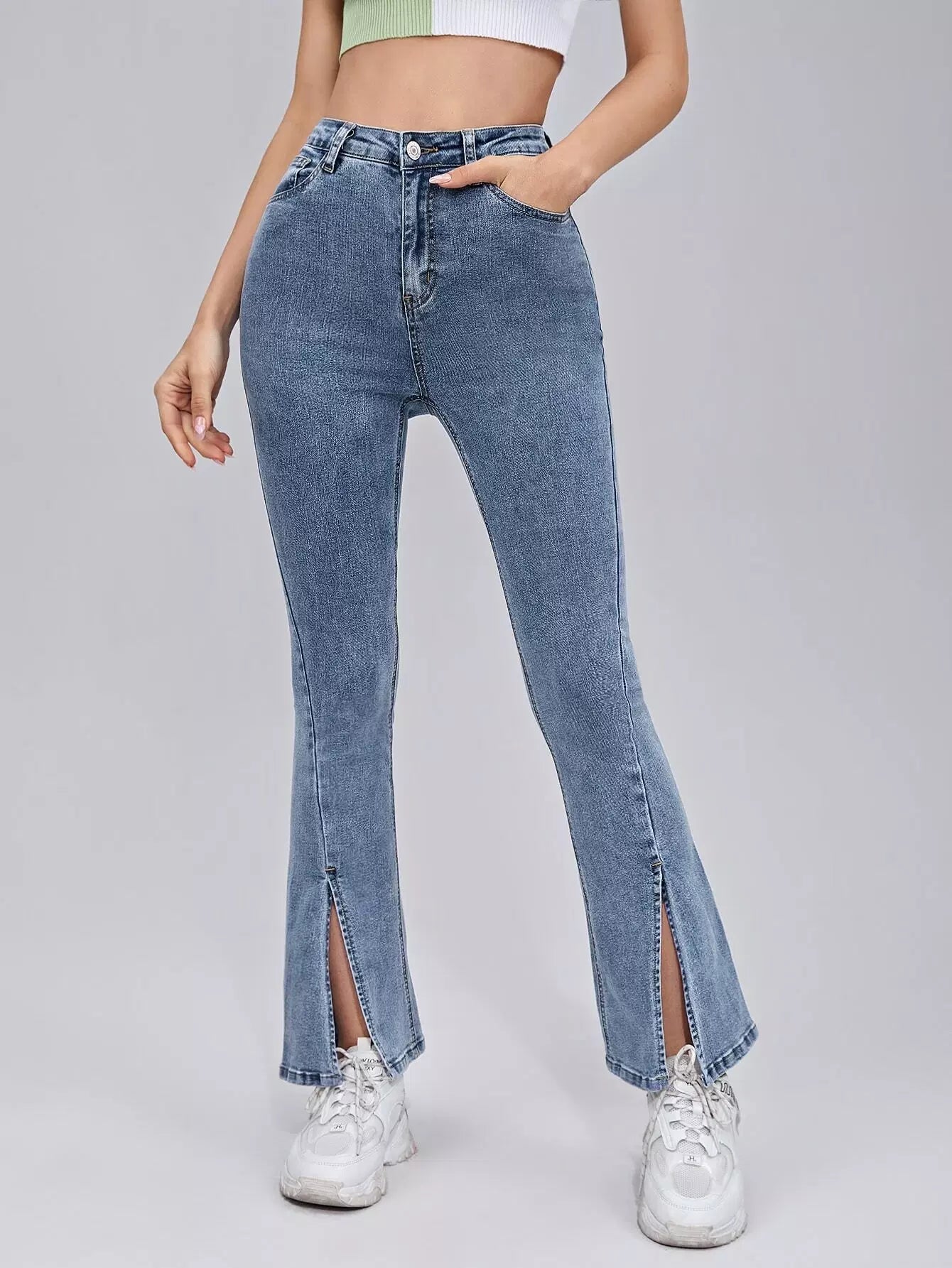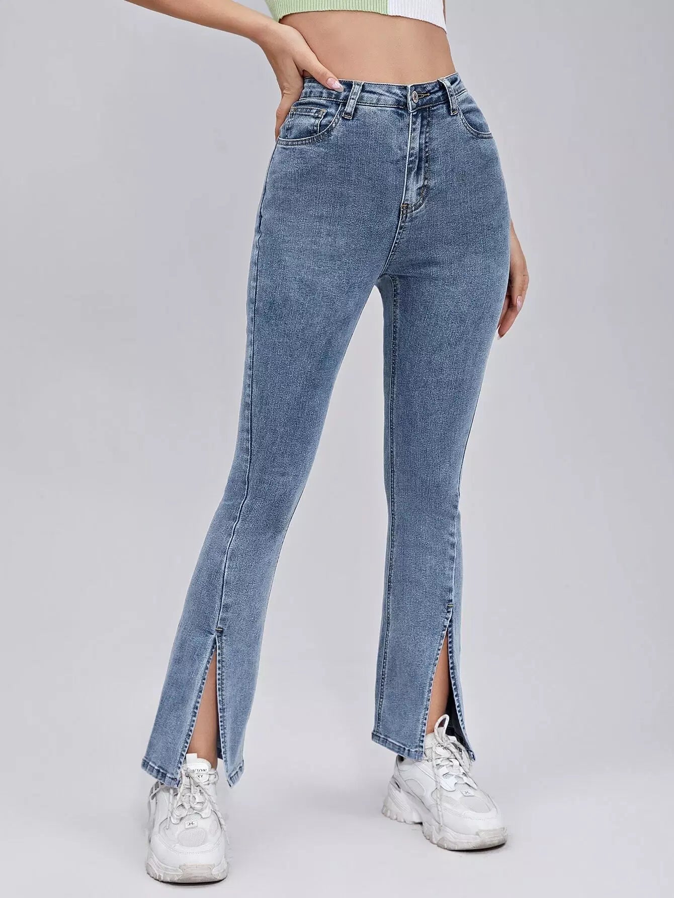 بنطلون جينز بحواف مشقوقة الساقين واسعة الساقين